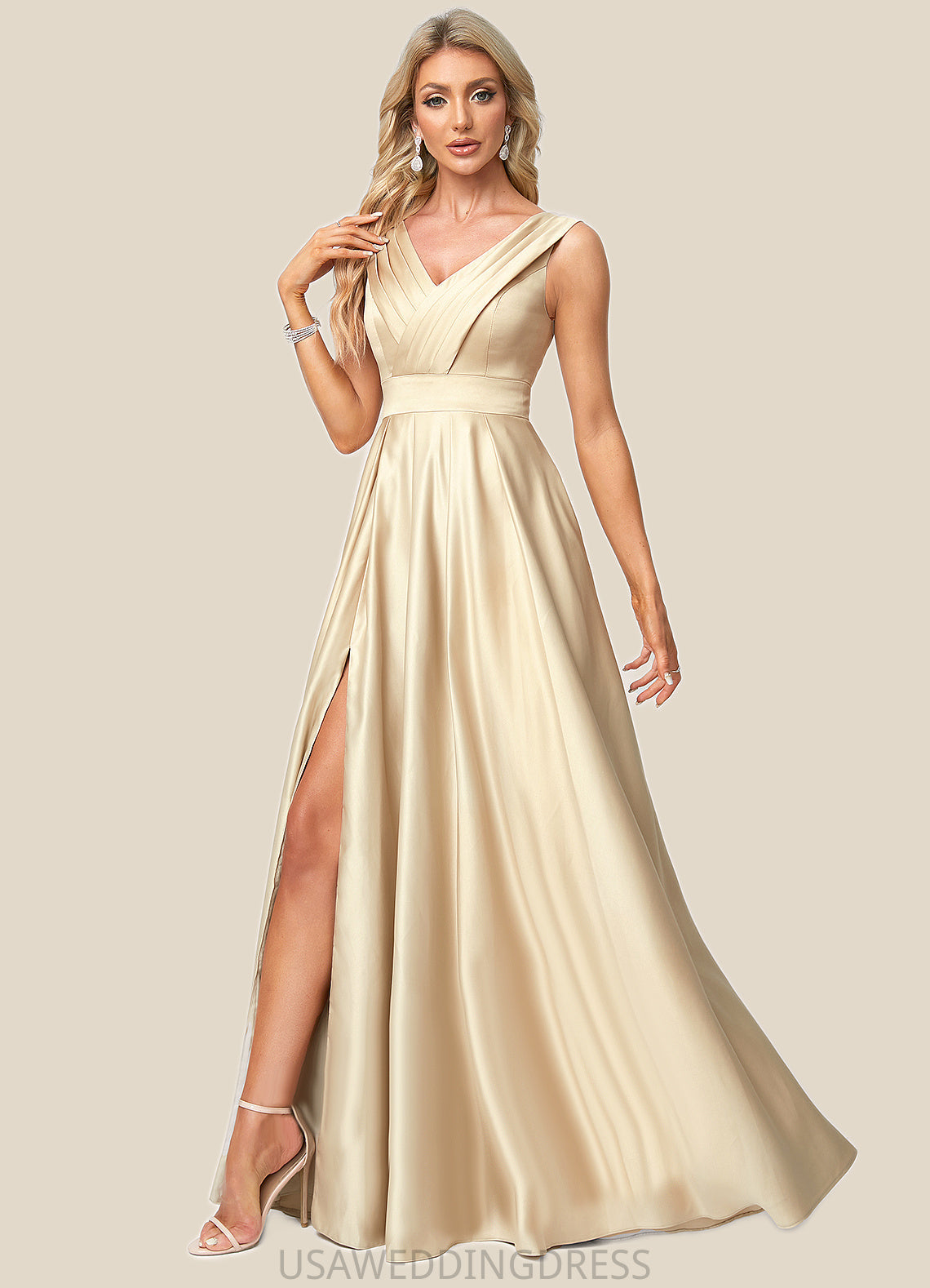 Harmony A-line V-Neck Floor-Length Satin Bridesmaid Dress DSP0022612