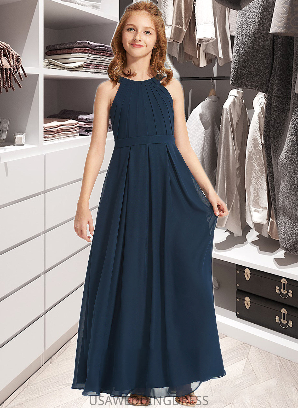 Haylee A-Line Scoop Neck Floor-Length Chiffon Junior Bridesmaid Dress With Ruffle DSP0013397