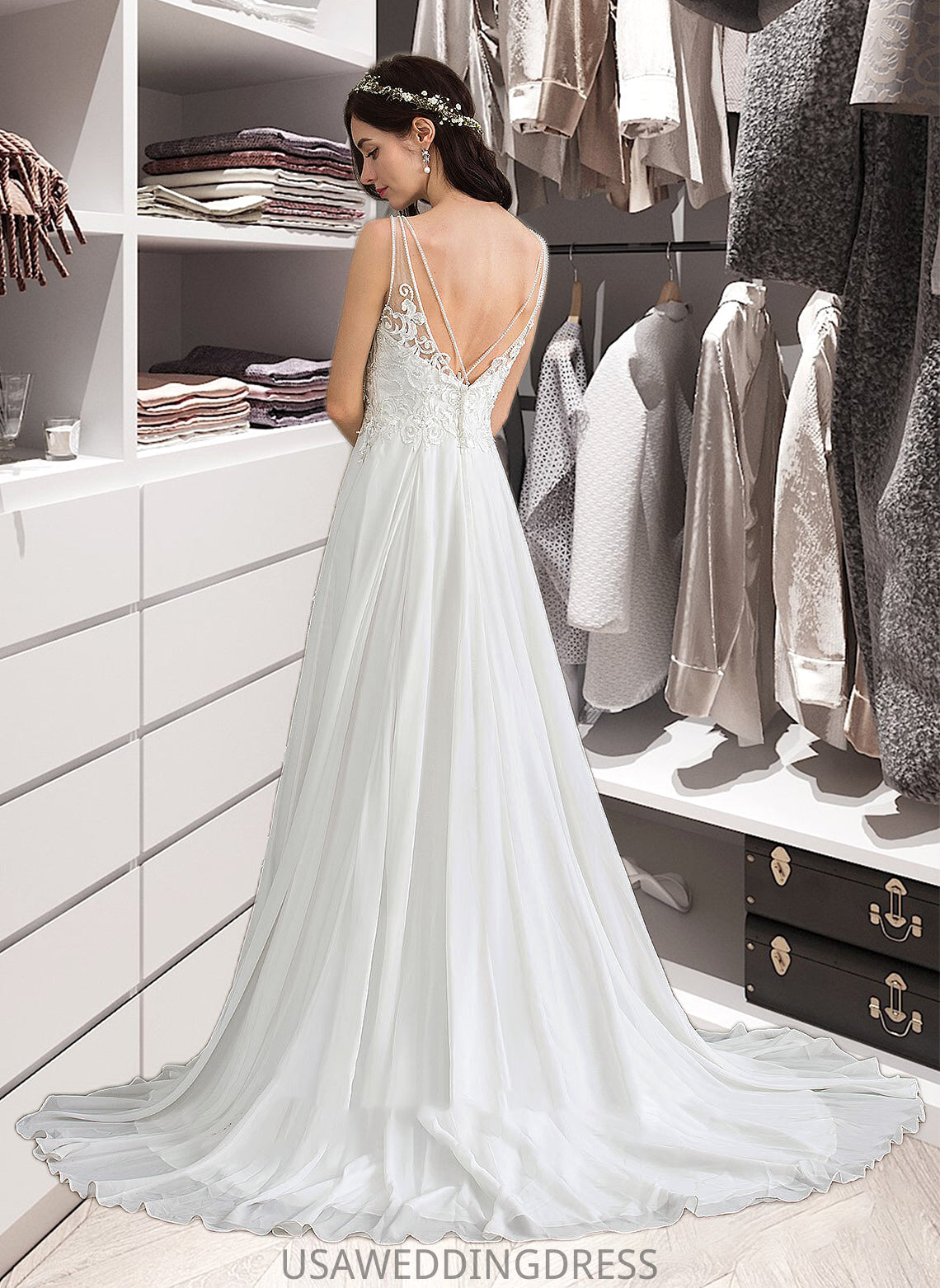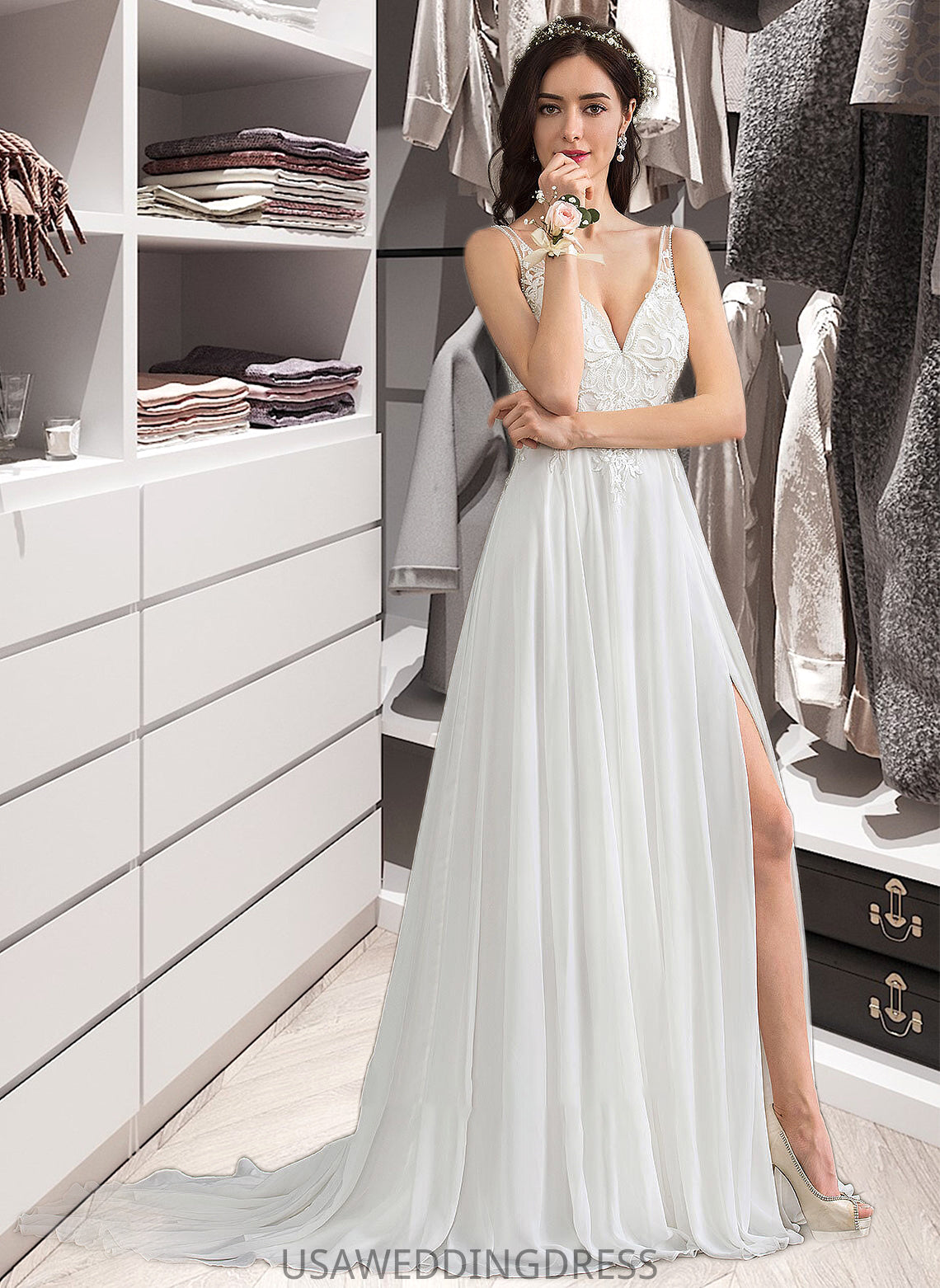 Hayley A-Line V-neck Sweep Train Chiffon Wedding Dress With Beading Sequins Split Front DSP0013806