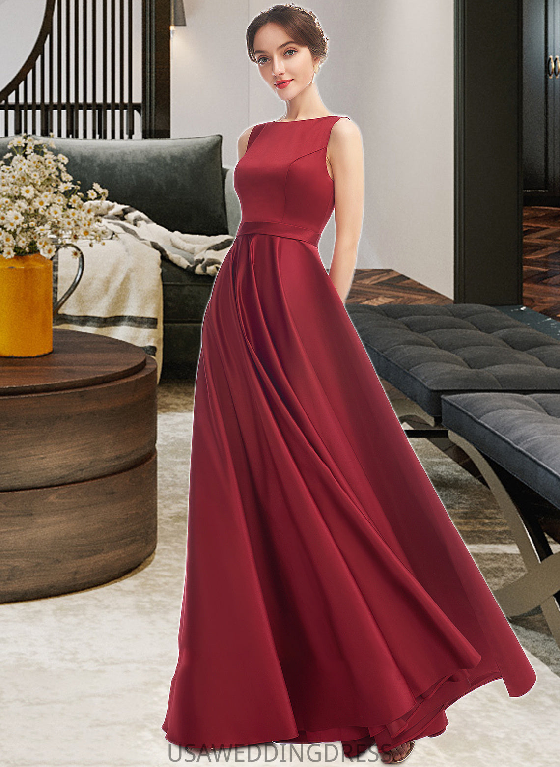 Helen A-Line Scoop Neck Floor-Length Bridesmaid Dress DSP0013198