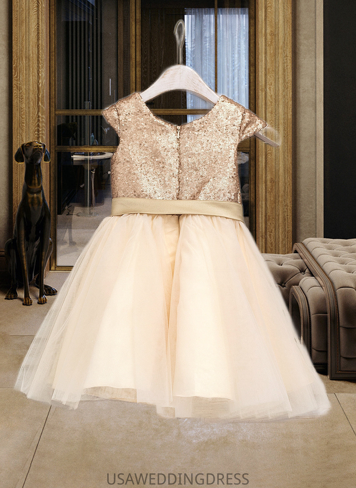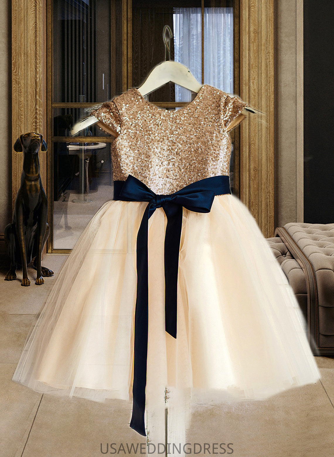 Helga A-Line Scoop Neck Knee-Length Tulle Junior Bridesmaid Dress With Sash DSP0013617