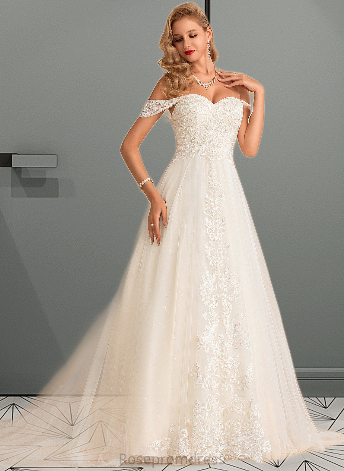 Helga Ball-Gown/Princess Chapel Train Tulle Lace Wedding Dress With Sequins SRSP0013726