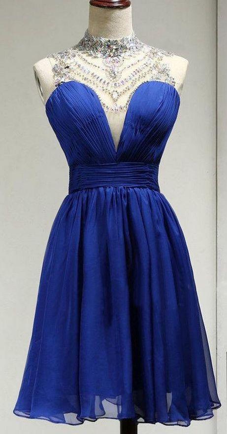 High Neck Short A Line Homecoming Dresses Lillianna Royal Blue Gowns CD9573
