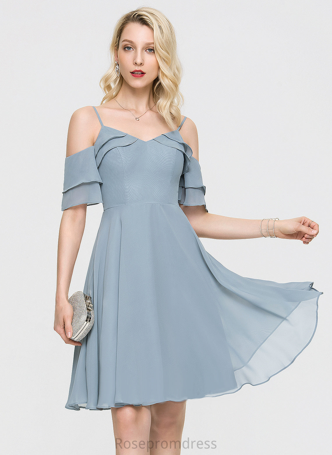 Homecoming Chiffon Knee-Length With Ruffles Cascading V-neck Dress A-Line Homecoming Dresses Hazel
