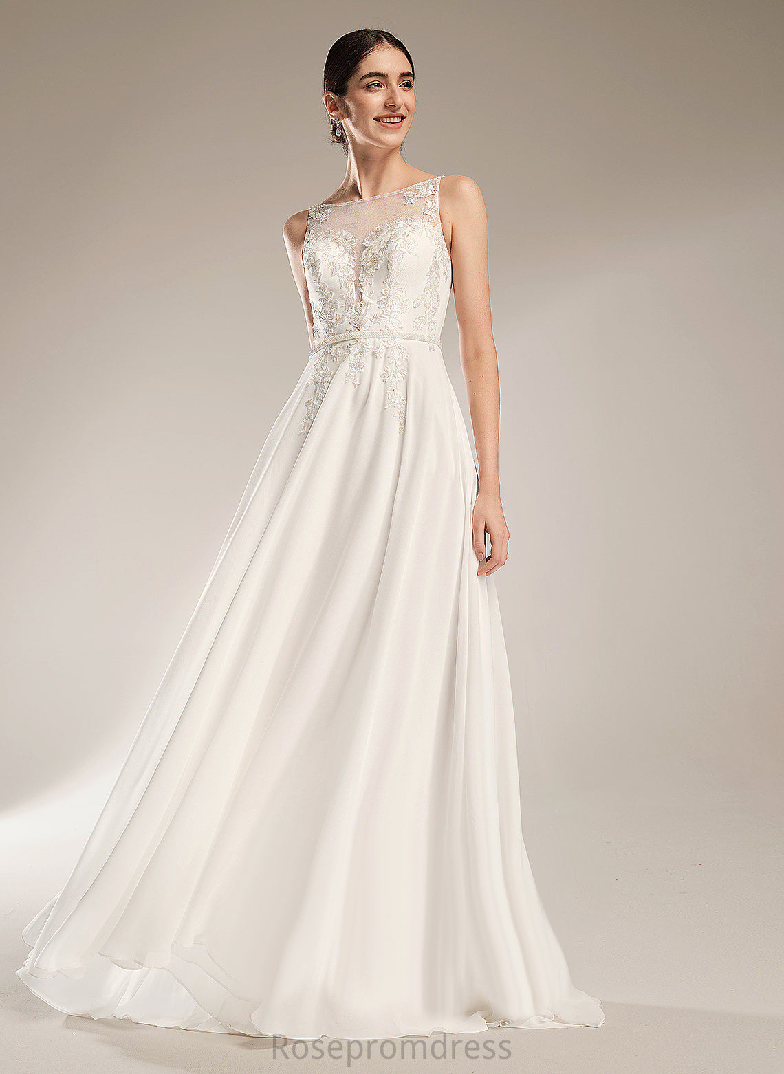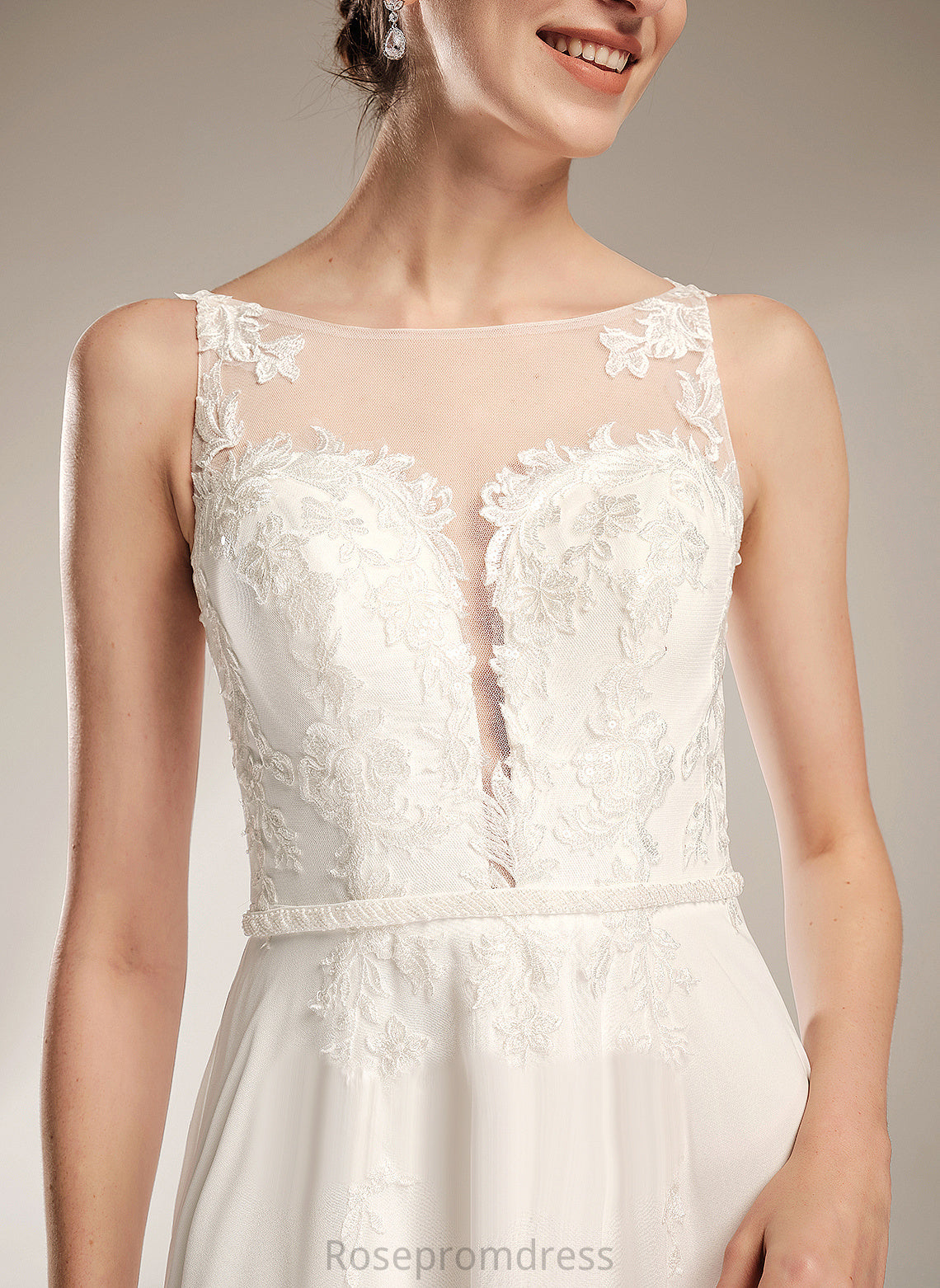 Illusion Chiffon Wedding Dress Wedding Dresses Lace Train A-Line With Tanya Sweep Sequins