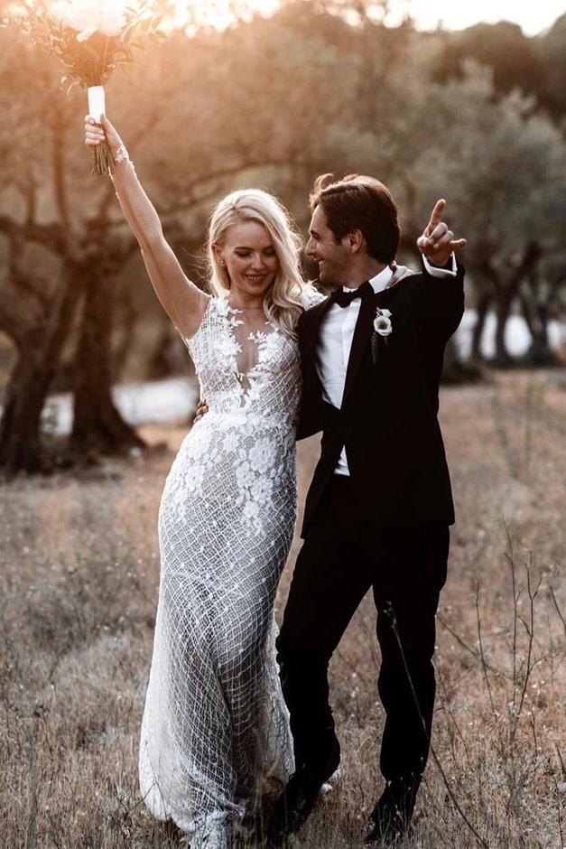 Illusion Long Sleeves Special Lace Floral Appliques Wedding Dress with Sweep SRS20421