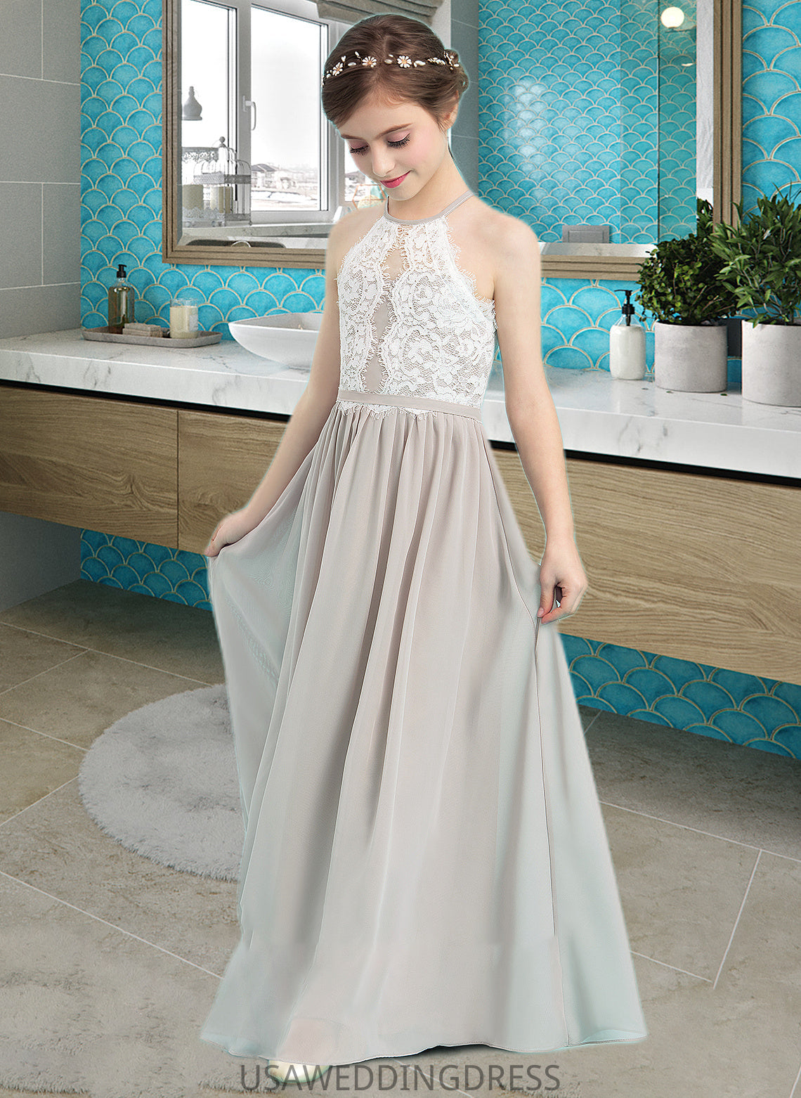 Ina A-Line Scoop Neck Floor-Length Chiffon Junior Bridesmaid Dress DSP0013463