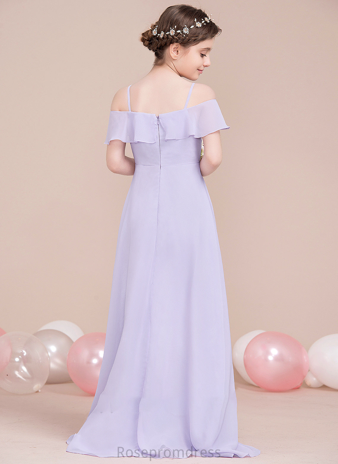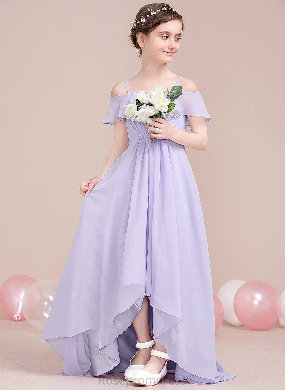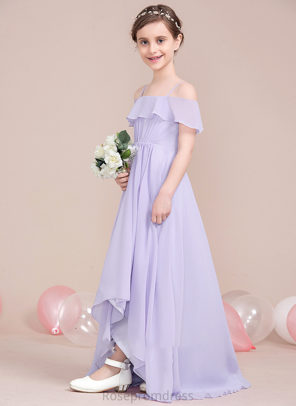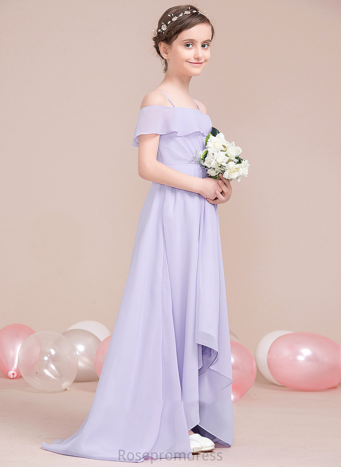 Isabel Ruffles Junior Bridesmaid Dresses Off-the-Shoulder With A-Line Chiffon Asymmetrical Cascading