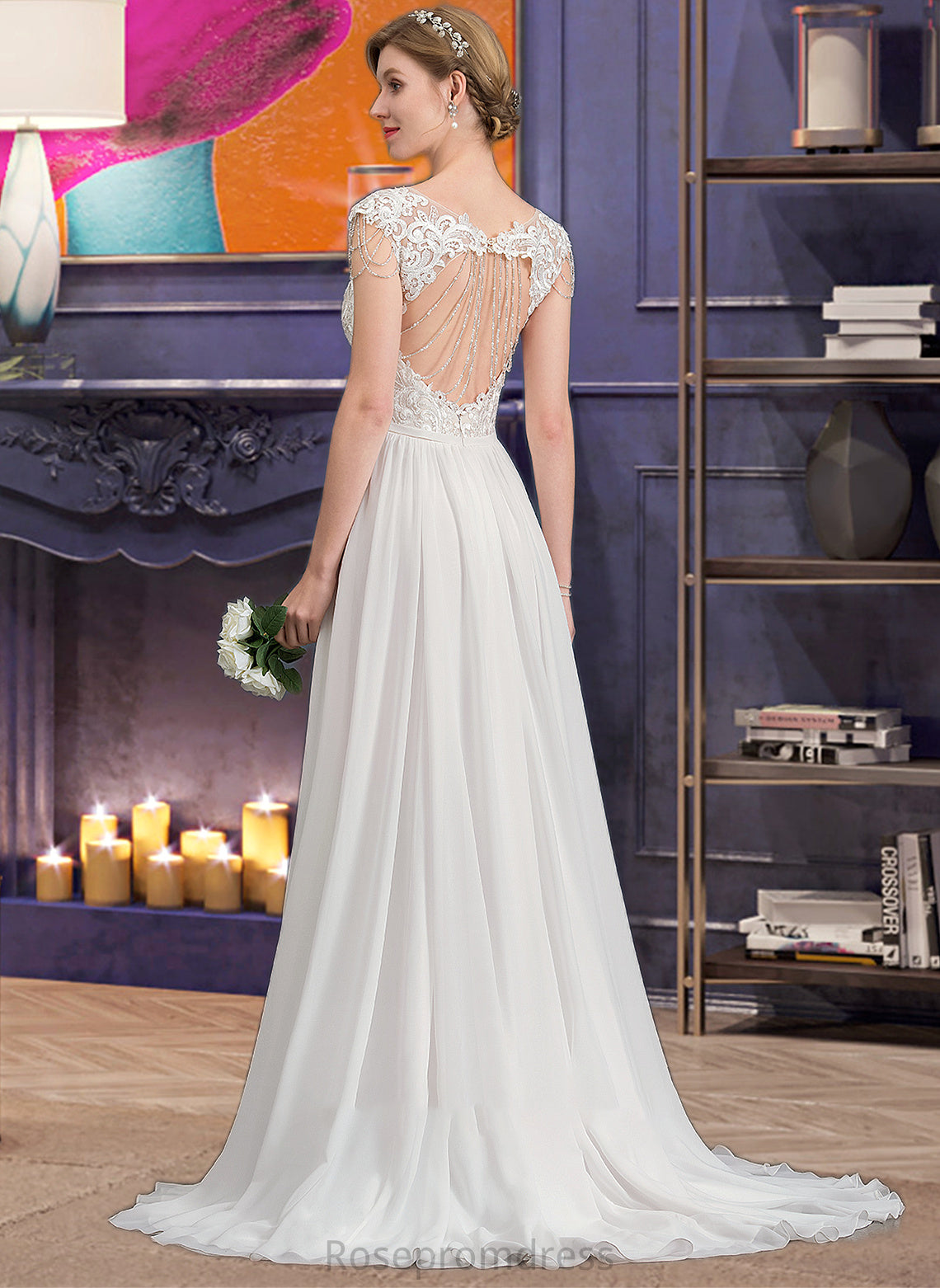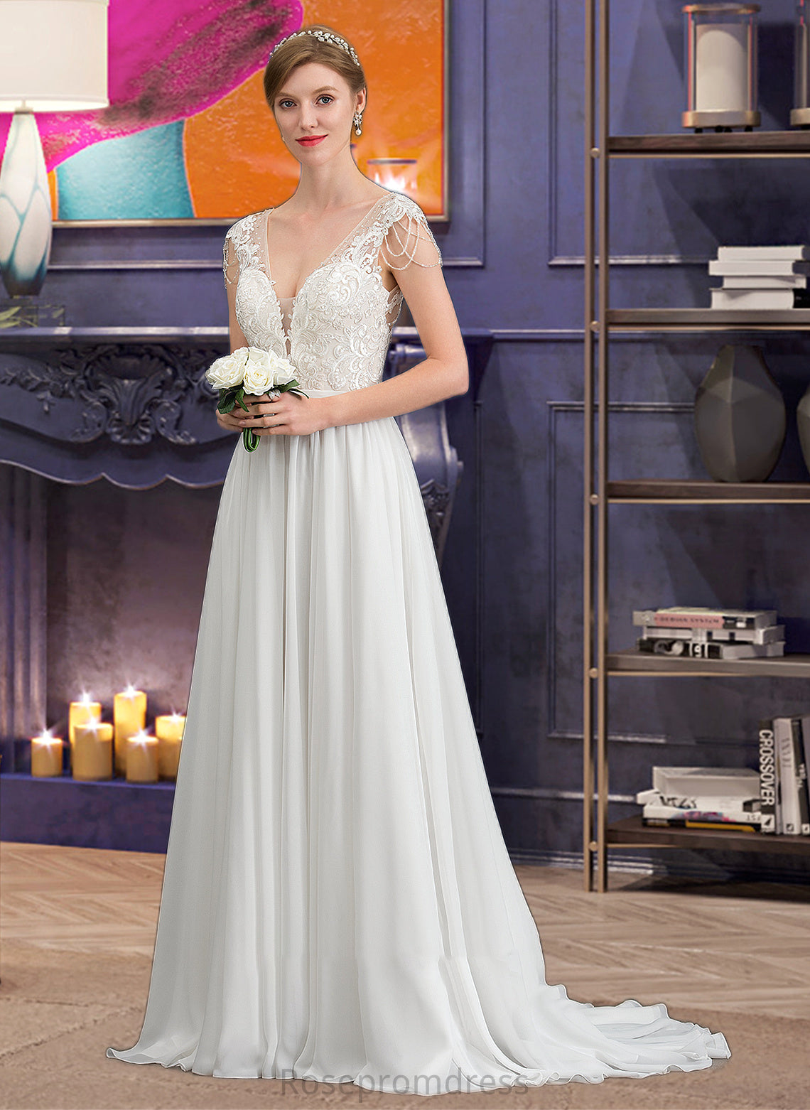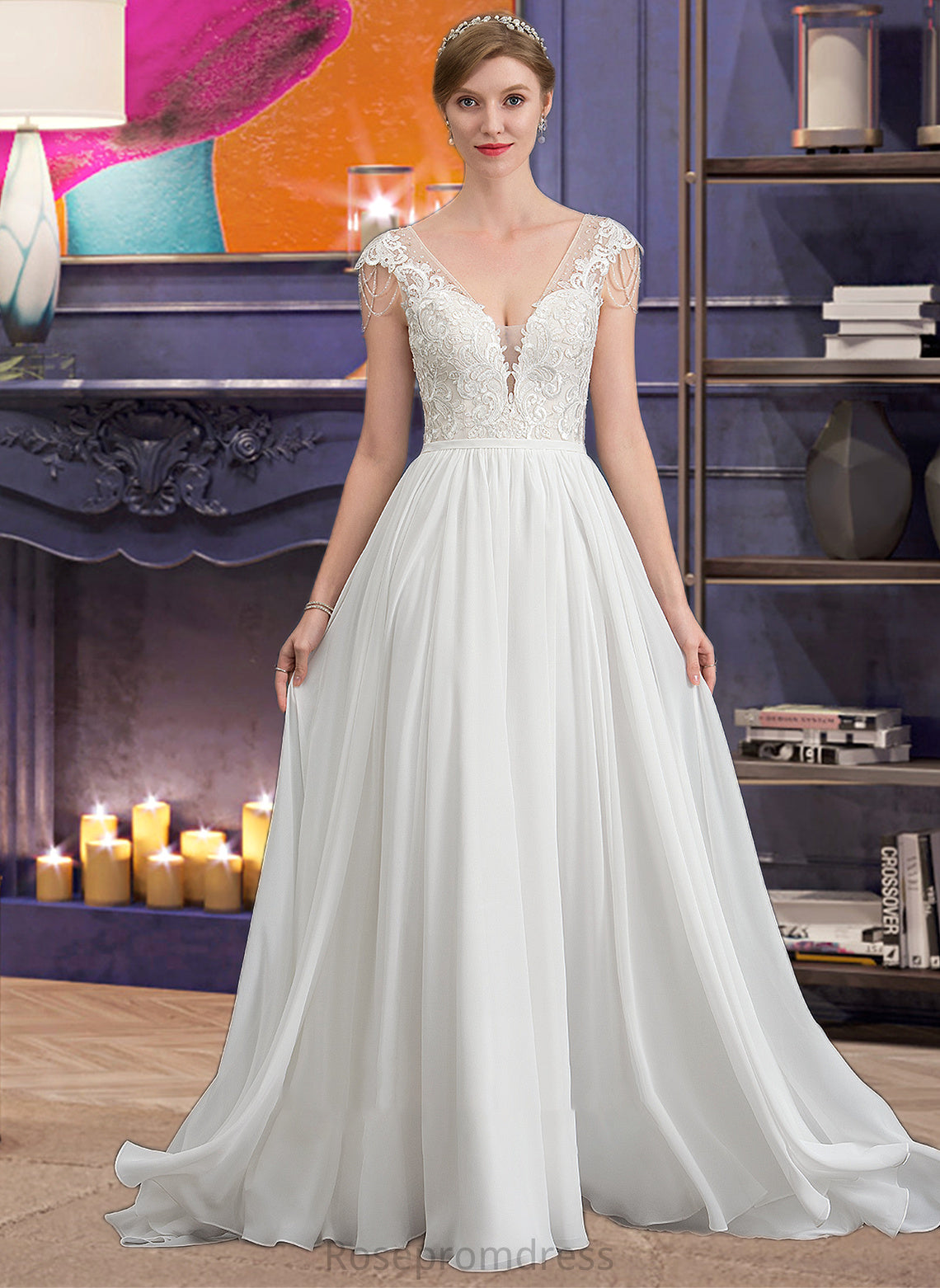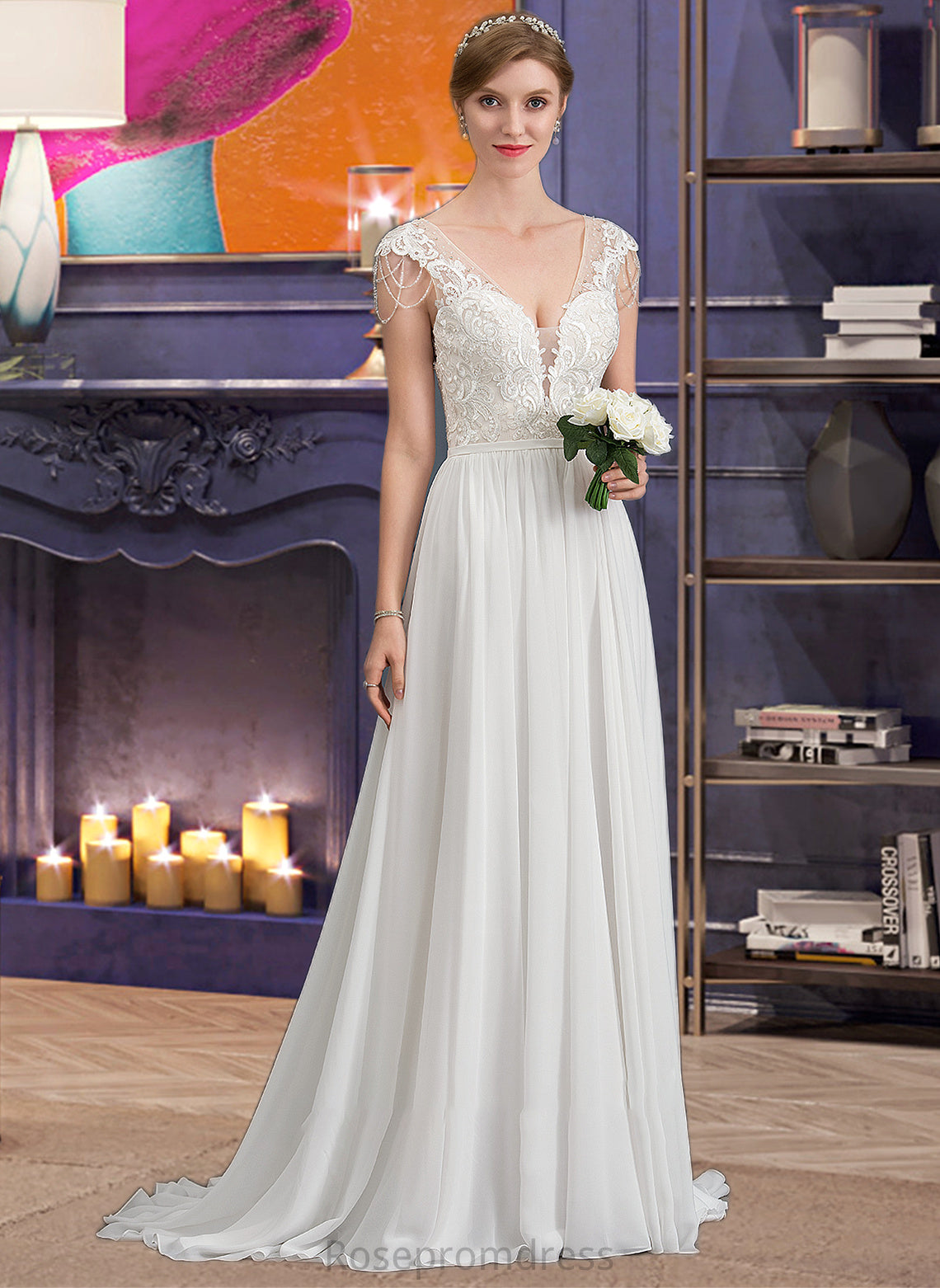 Isabelle A-Line V-neck Sweep Train Chiffon Wedding Dress With Beading Sequins SRSP0013792
