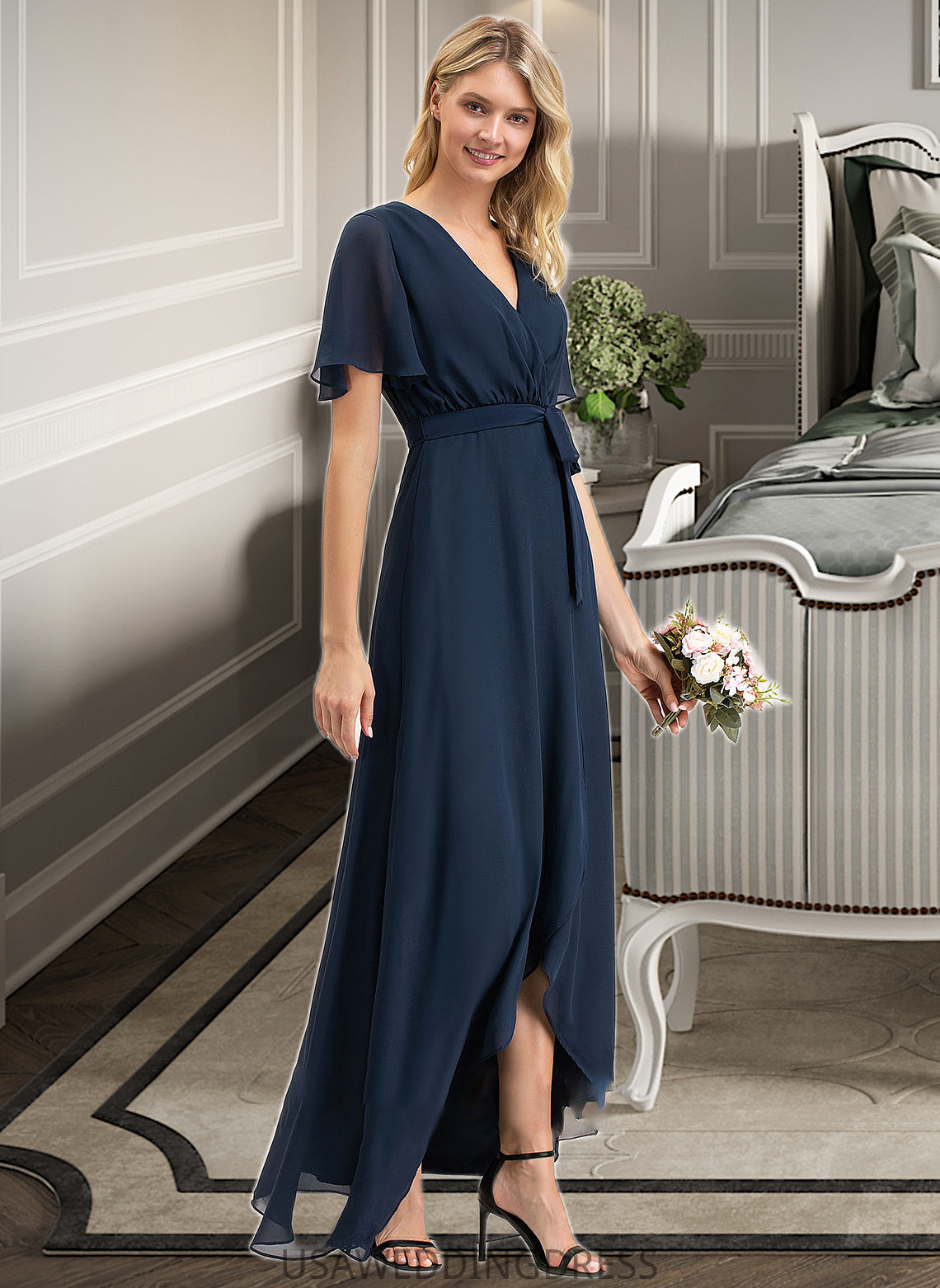 Isla A-Line V-neck Asymmetrical Chiffon Bridesmaid Dress With Bow(s) DSP0012783