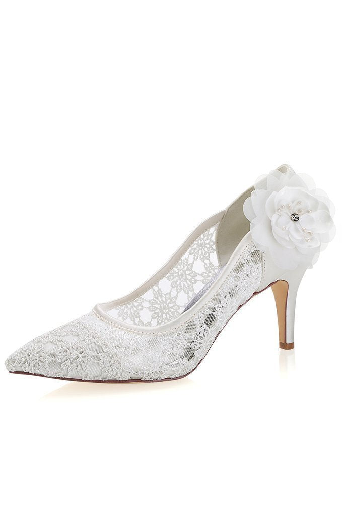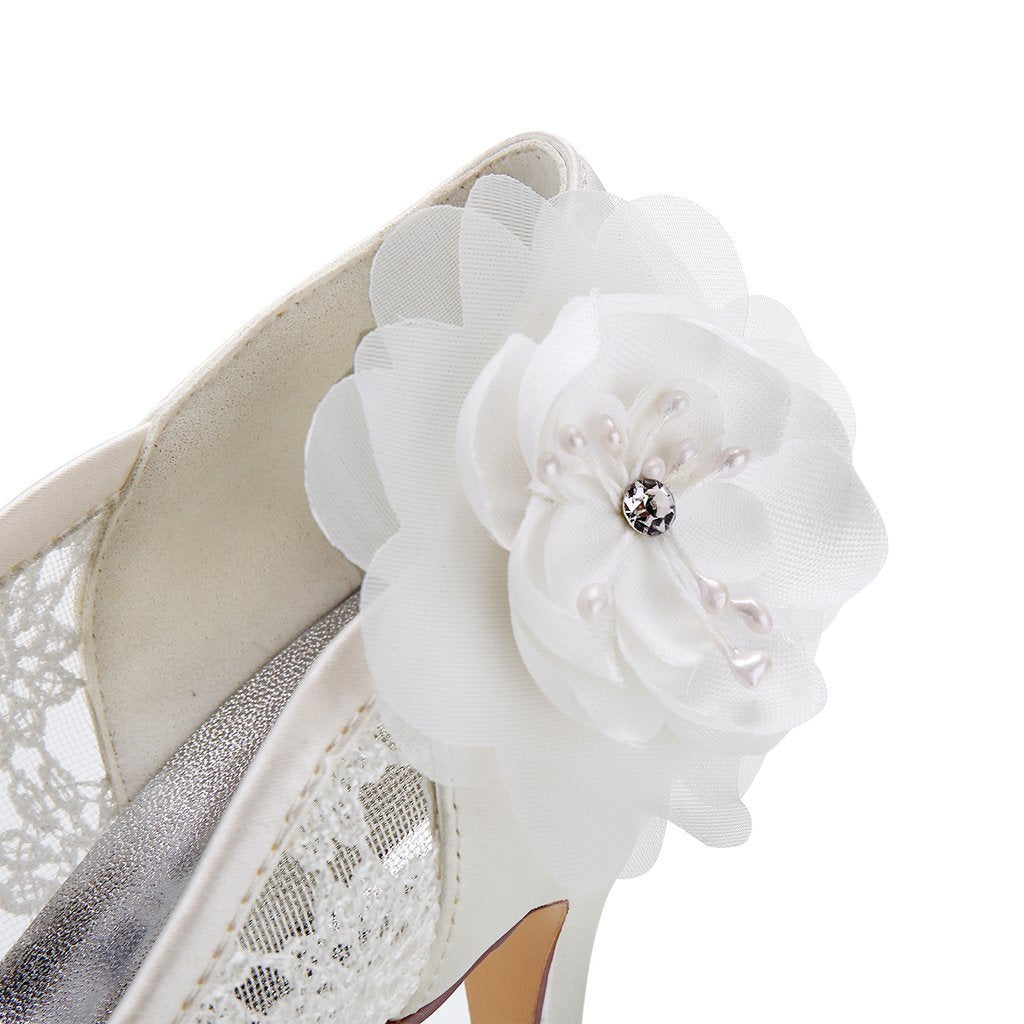 Ivory High Heels Lace Wedding Shoes with Flowers Wedding Party Shoes Wedding SRS12497