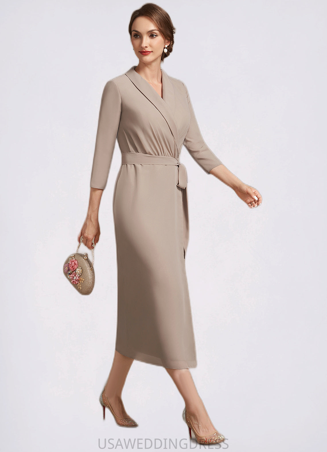 Ivy Sheath/Column V-neck Tea-Length Chiffon Mother of the Bride Dress With Bow(s) DS126P0014891