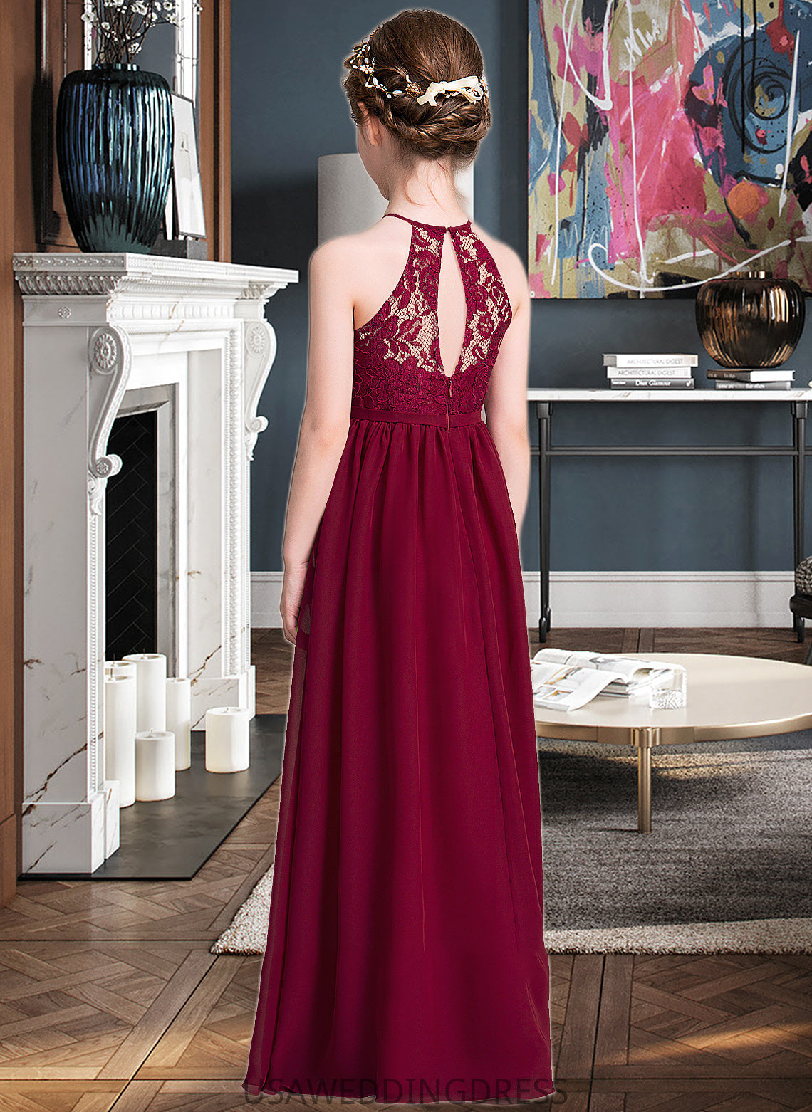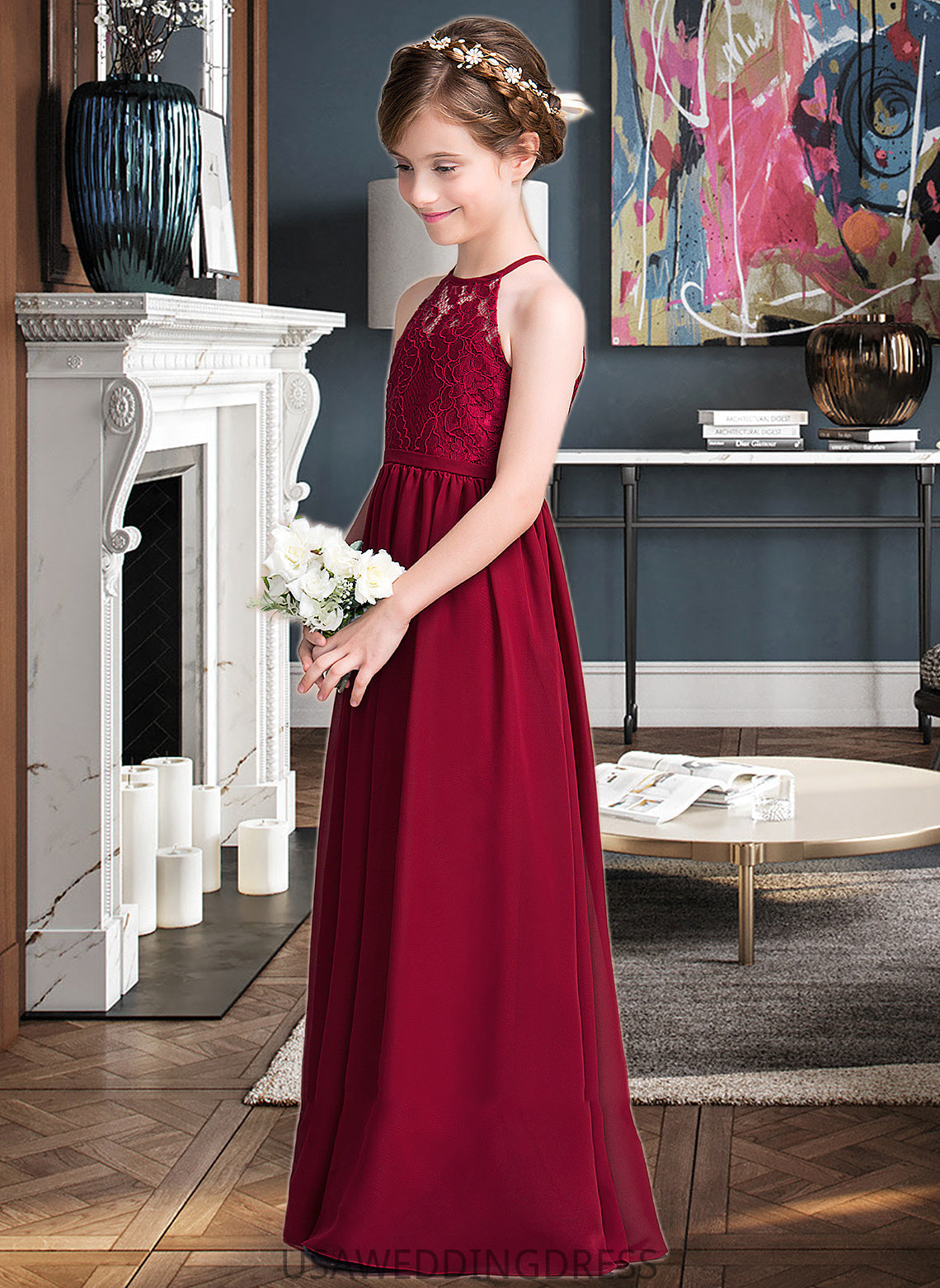 Jada A-Line Scoop Neck Floor-Length Chiffon Junior Bridesmaid Dress DSP0013412