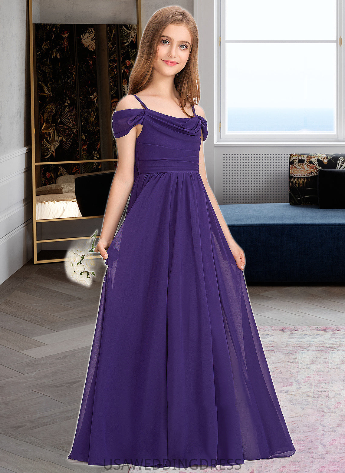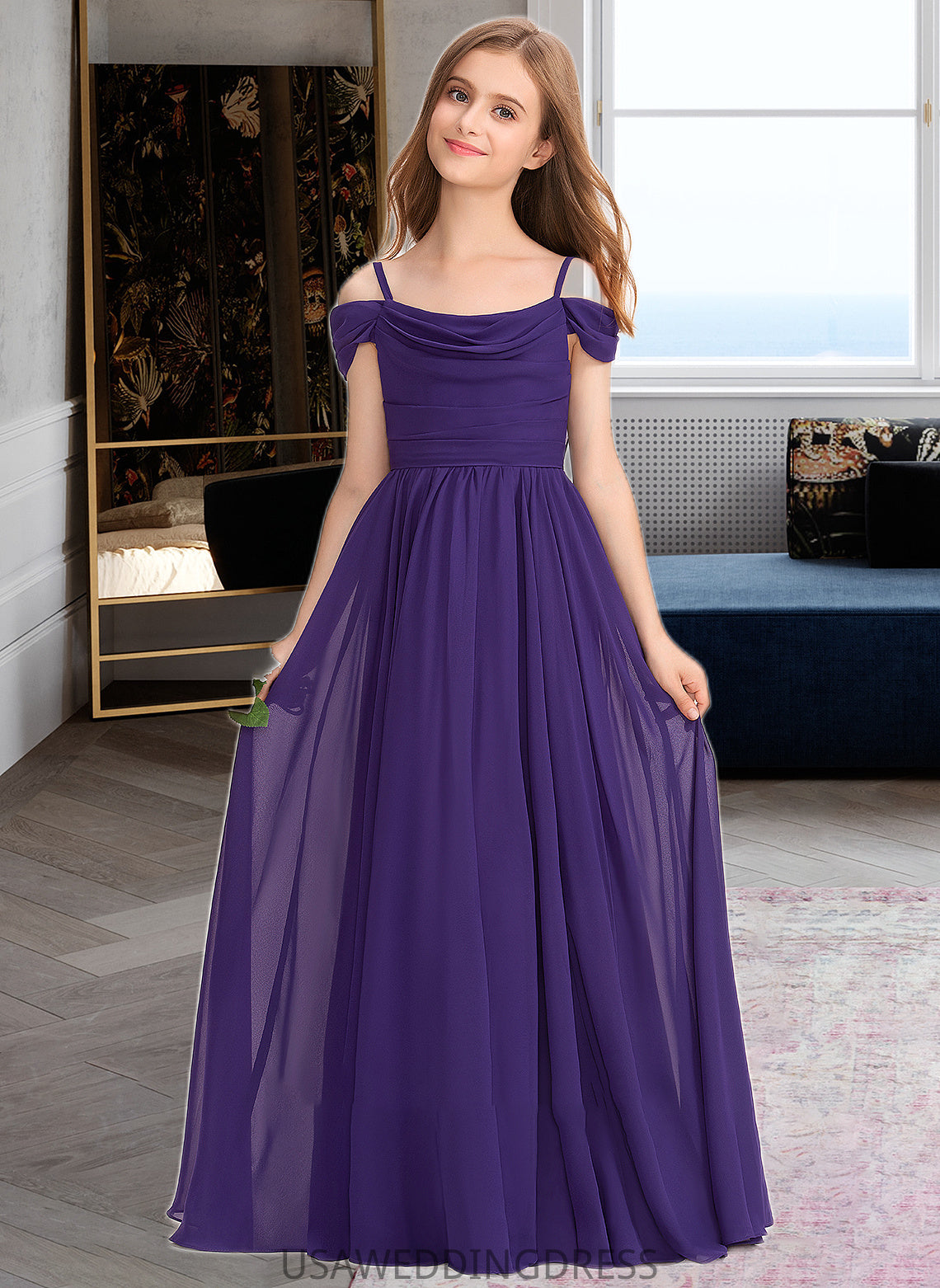 Jaden A-Line Off-the-Shoulder Floor-Length Chiffon Junior Bridesmaid Dress With Ruffle DSP0013421