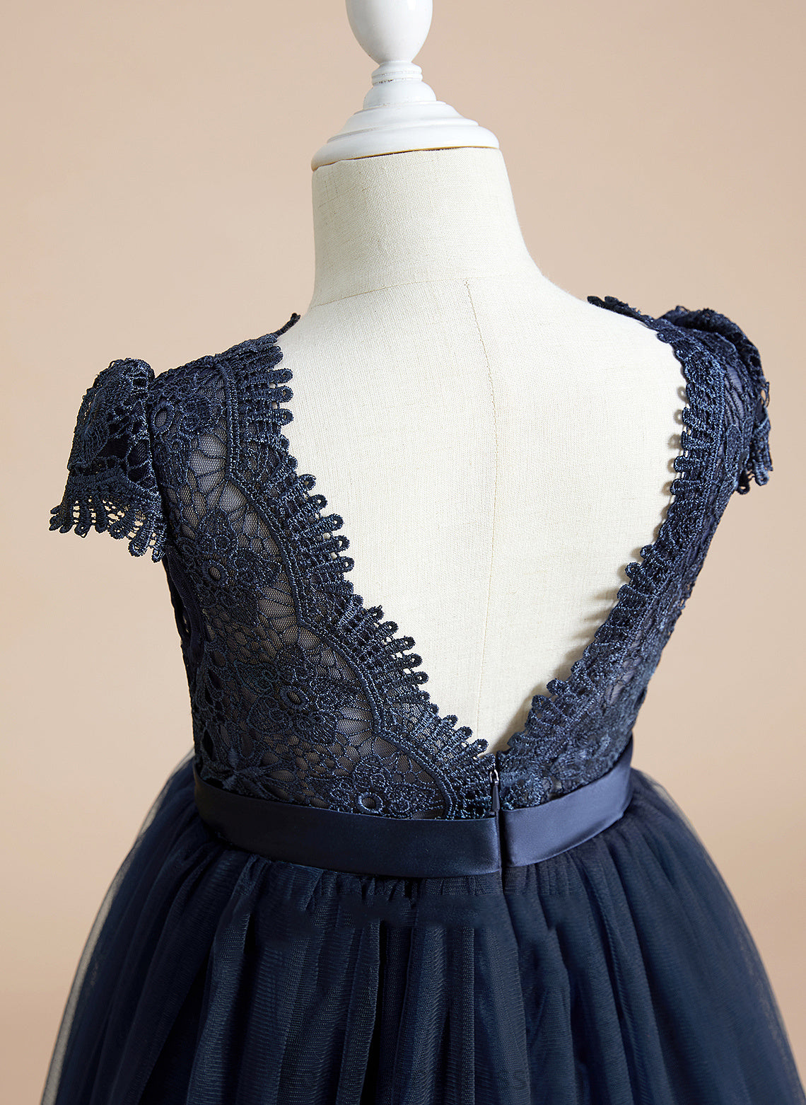 Jadyn Flower Girl Dresses Tulle/Lace Short Flower Dress Sleeves Neck Ball-Gown/Princess Scoop Girl - Floor-length
