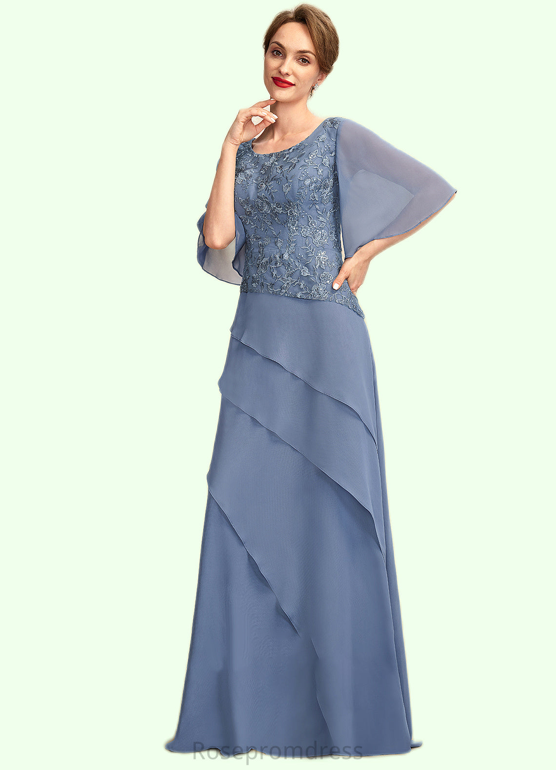 Jaidyn A-Line Scoop Neck Floor-Length Chiffon Lace Mother of the Bride Dress With Sequins Cascading Ruffles SRS126P0014997