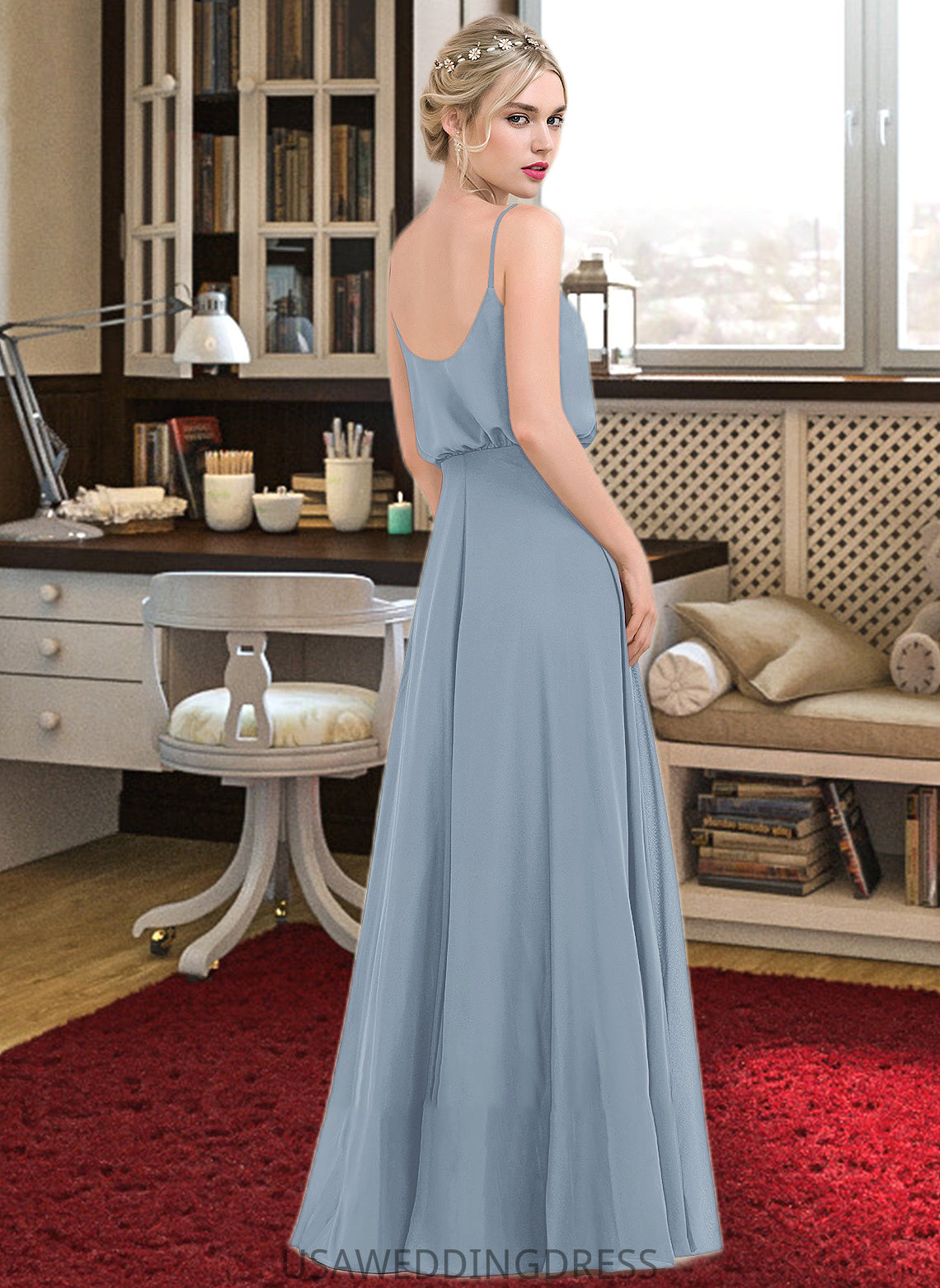 Janae A-Line Square Neckline Floor-Length Chiffon Bridesmaid Dress With Split Front DSP0012992