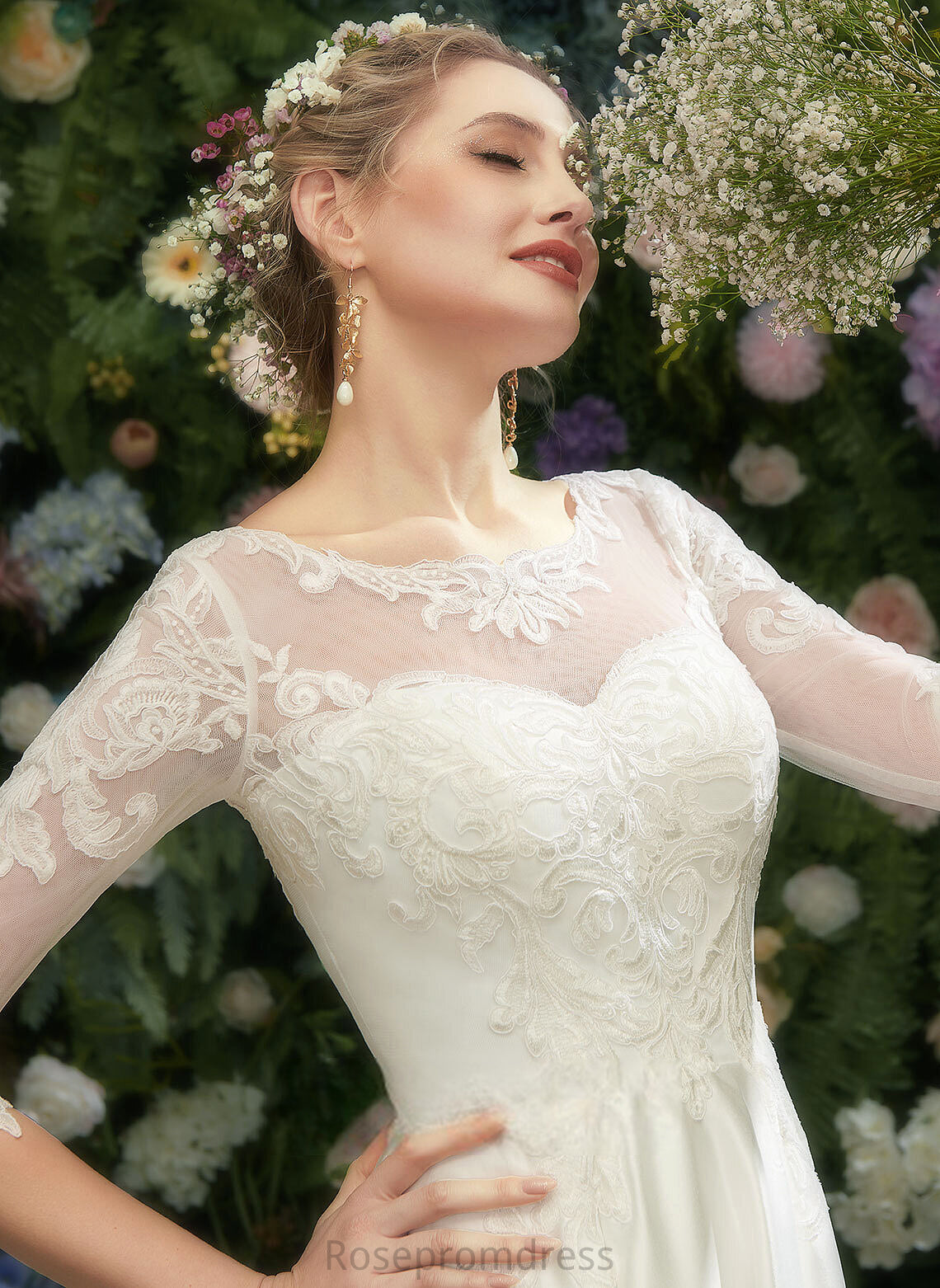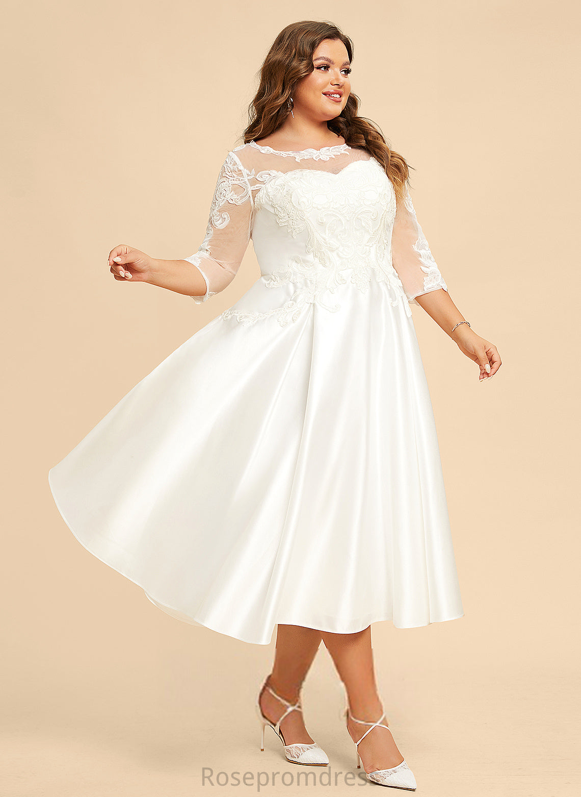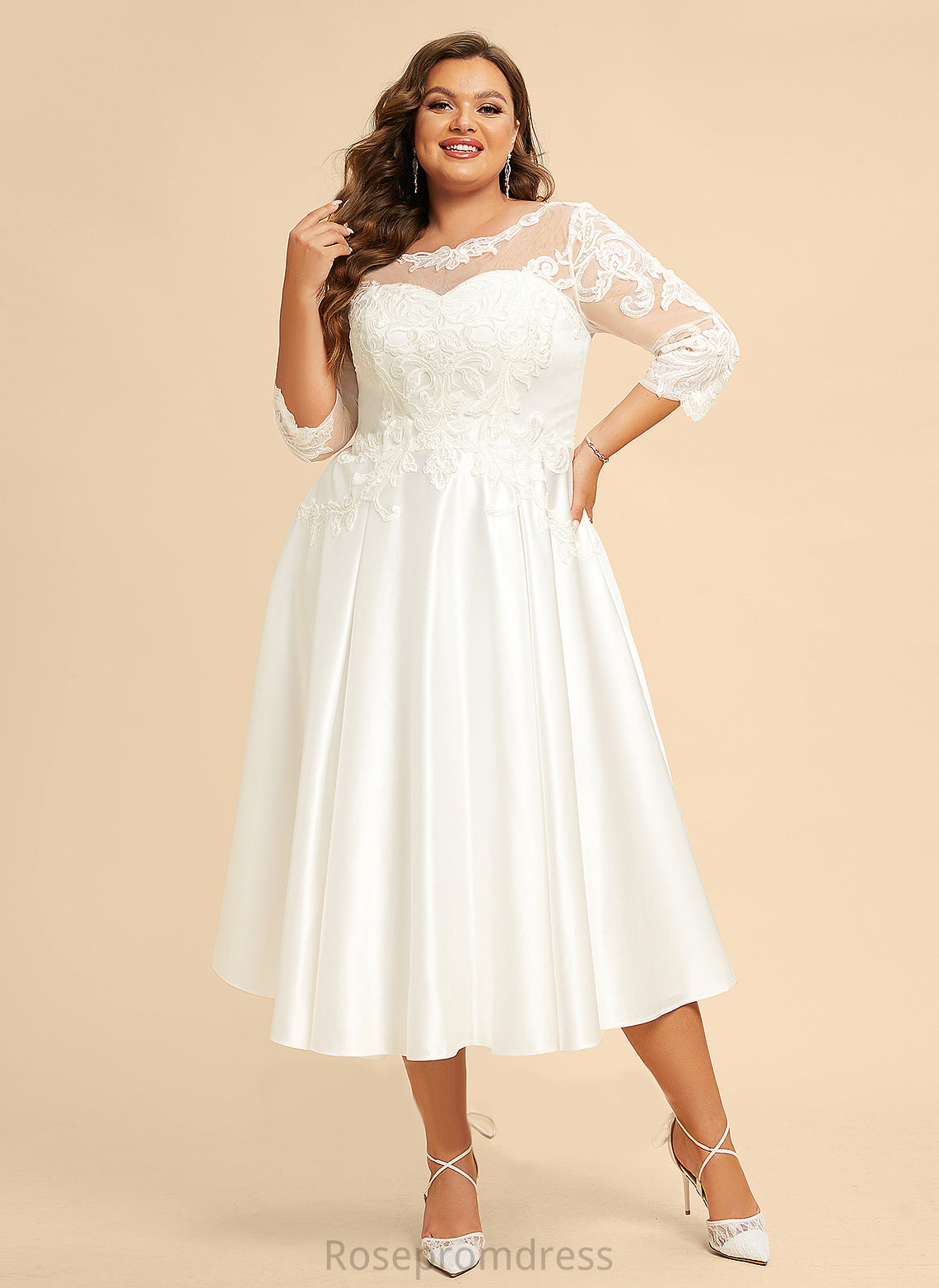 Jaqueline Lace Satin A-Line Wedding Illusion With Wedding Dresses Dress Tea-Length