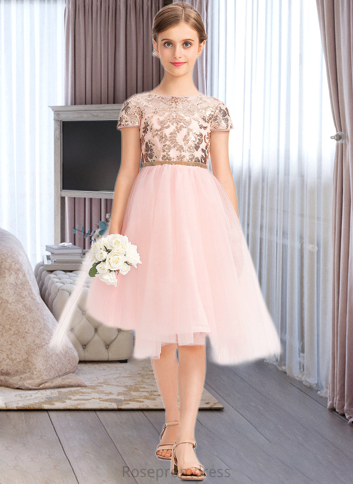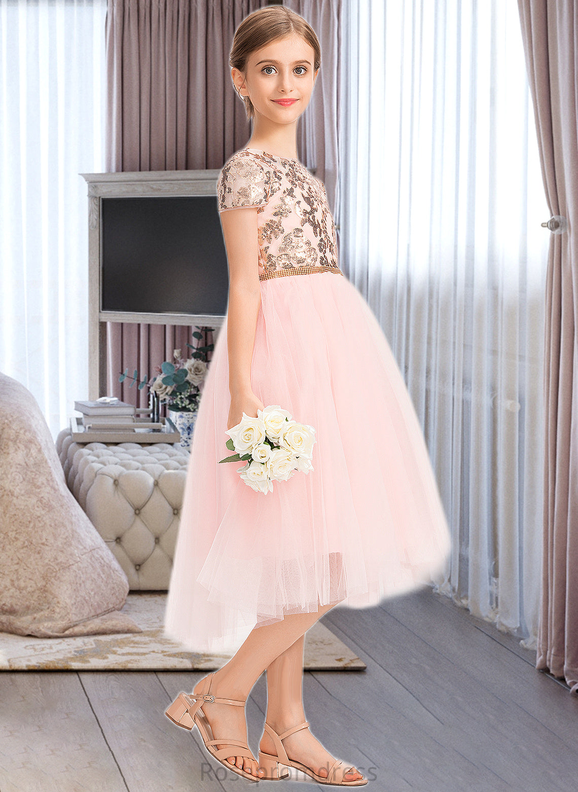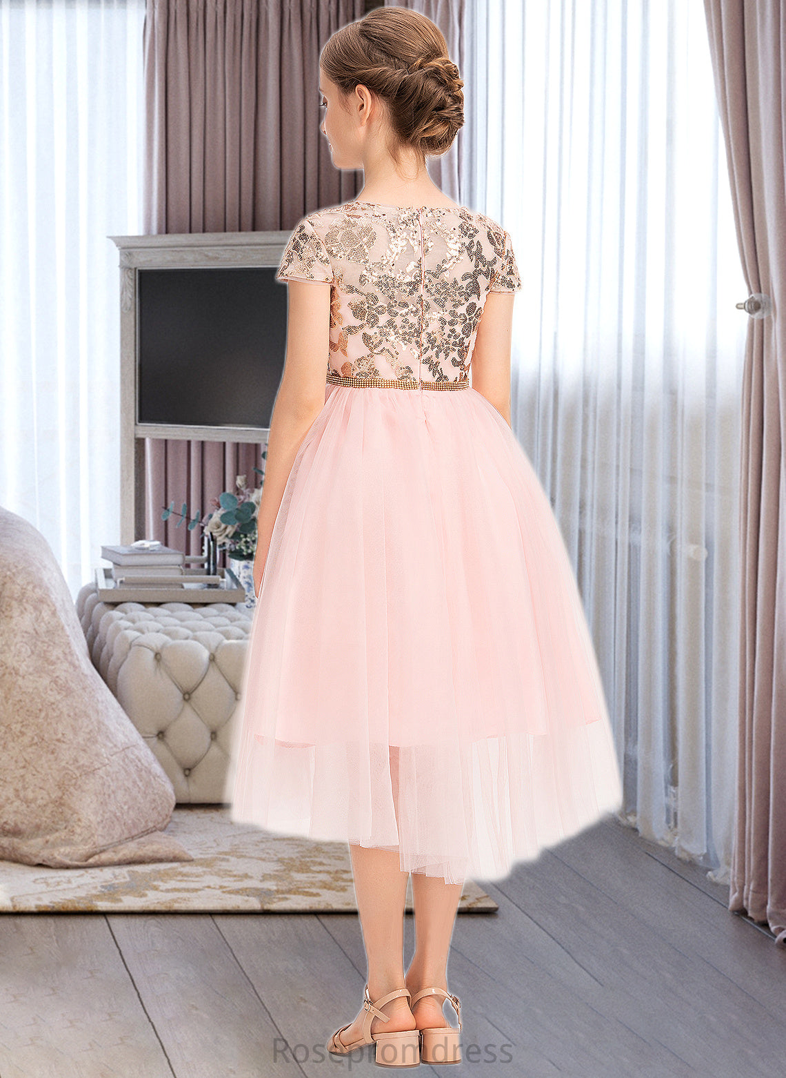 Jasmin A-Line Scoop Neck Asymmetrical Tulle Junior Bridesmaid Dress With Sequins SRSP0013531