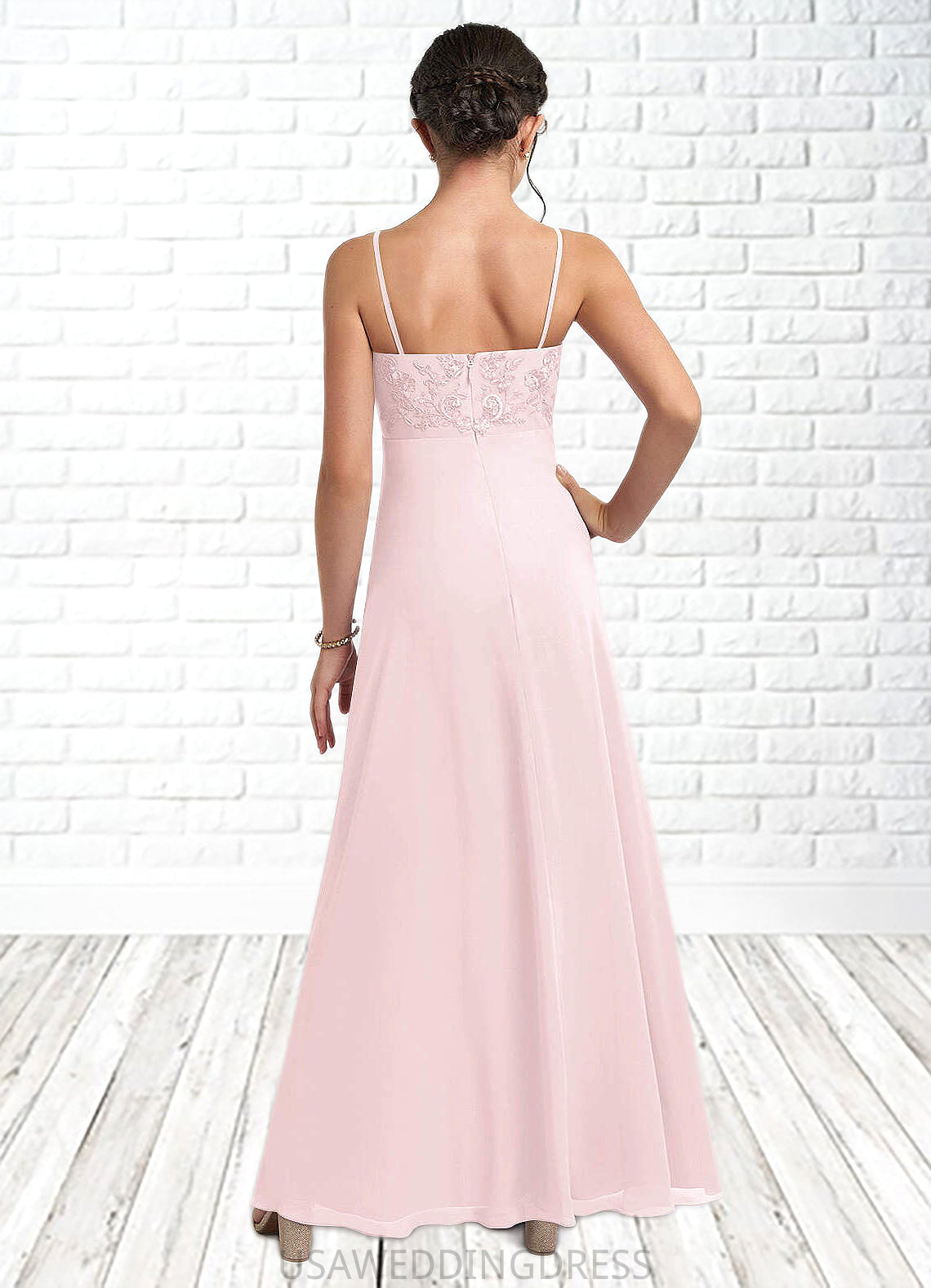 Jaylee A-Line Lace Chiffon Floor-Length Junior Bridesmaid Dress Blushing Pink DSP0022853