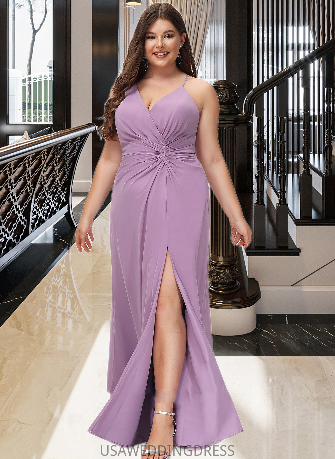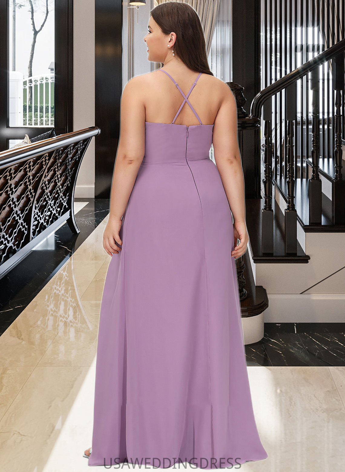 Jaylen A-Line V-neck Floor-Length Chiffon Bridesmaid Dress With Ruffle Split Front DSP0012784