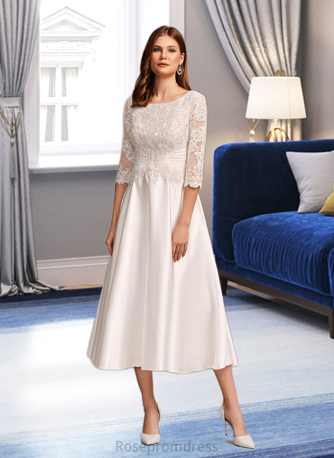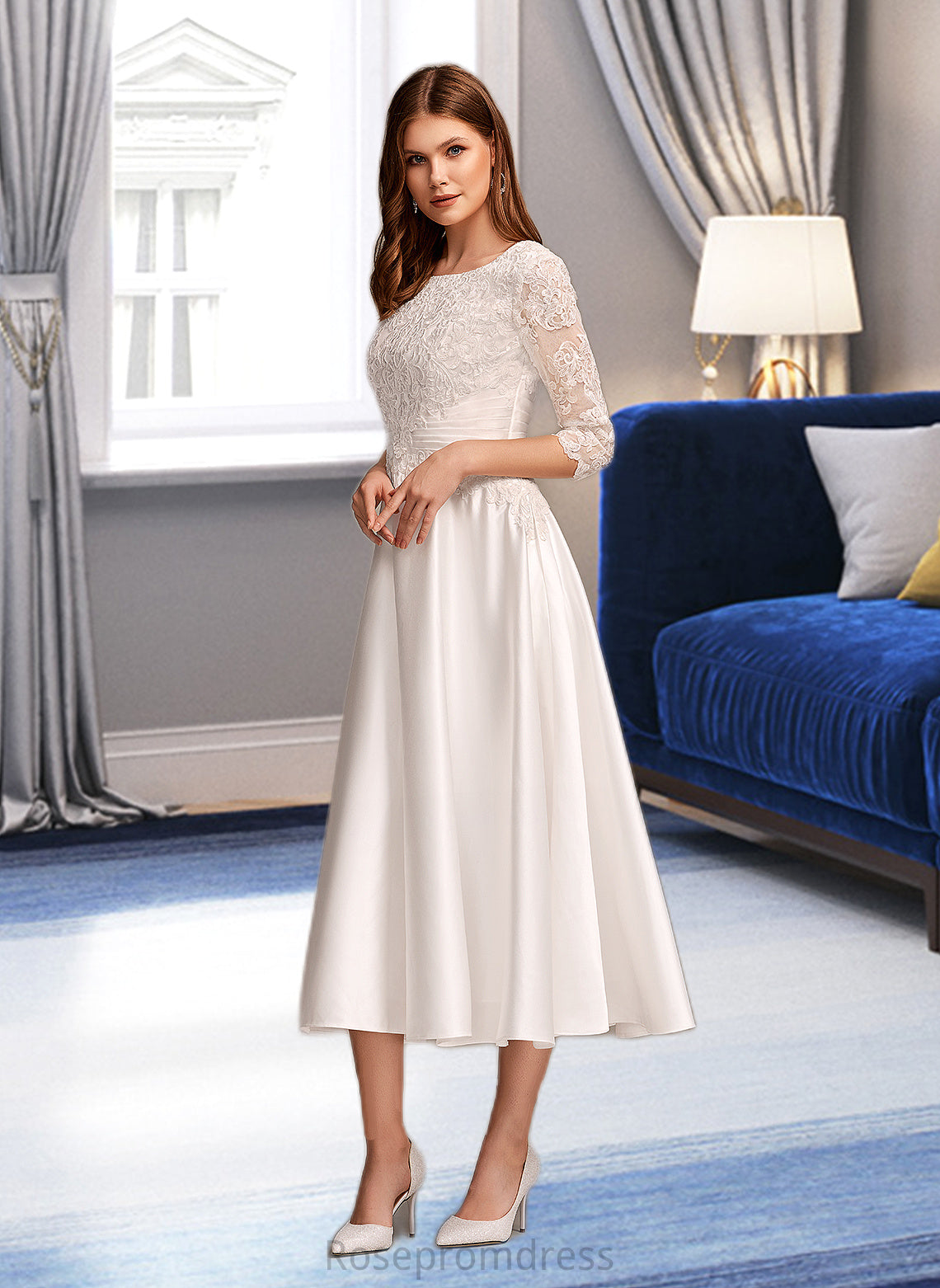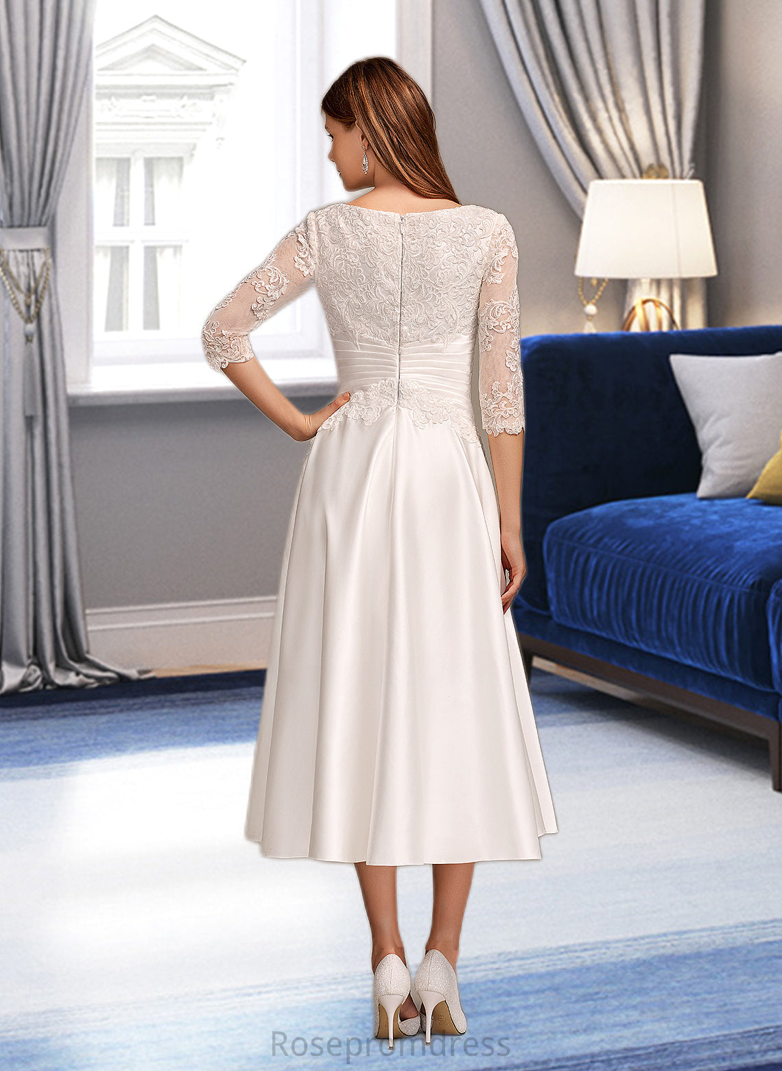 Jazlynn A-Line Scoop Neck Tea-Length Wedding Dress With Pockets SRSP0013723