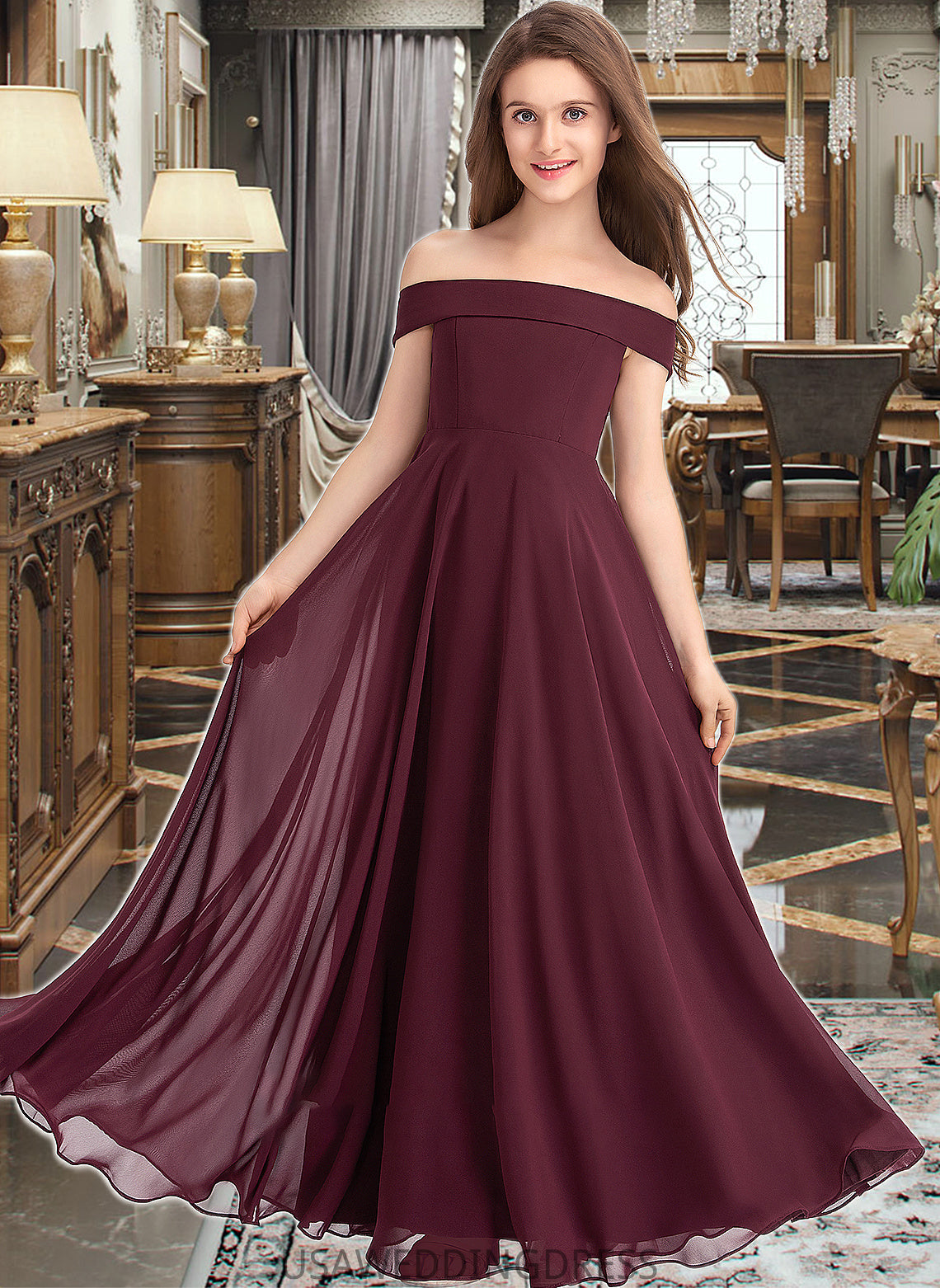 Jennifer A-Line Off-the-Shoulder Floor-Length Chiffon Junior Bridesmaid Dress DSP0013323