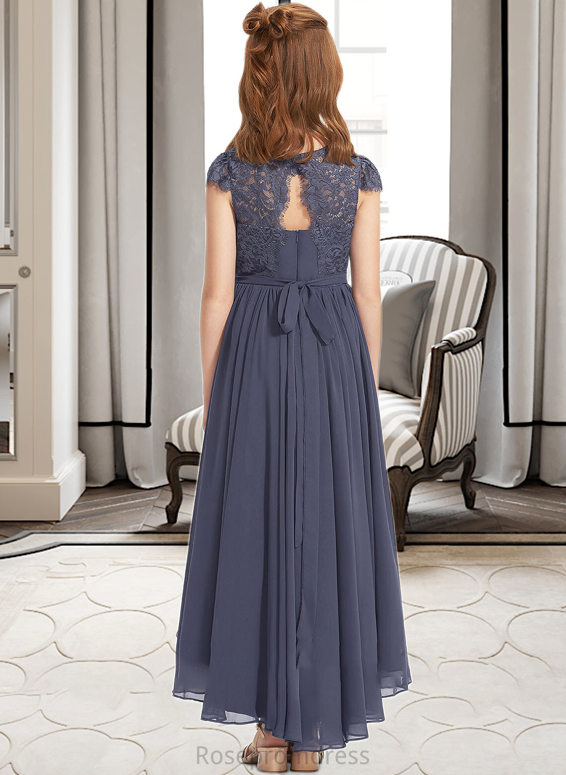 Jessica A-Line Scoop Neck Asymmetrical Chiffon Lace Junior Bridesmaid Dress SRSP0013341