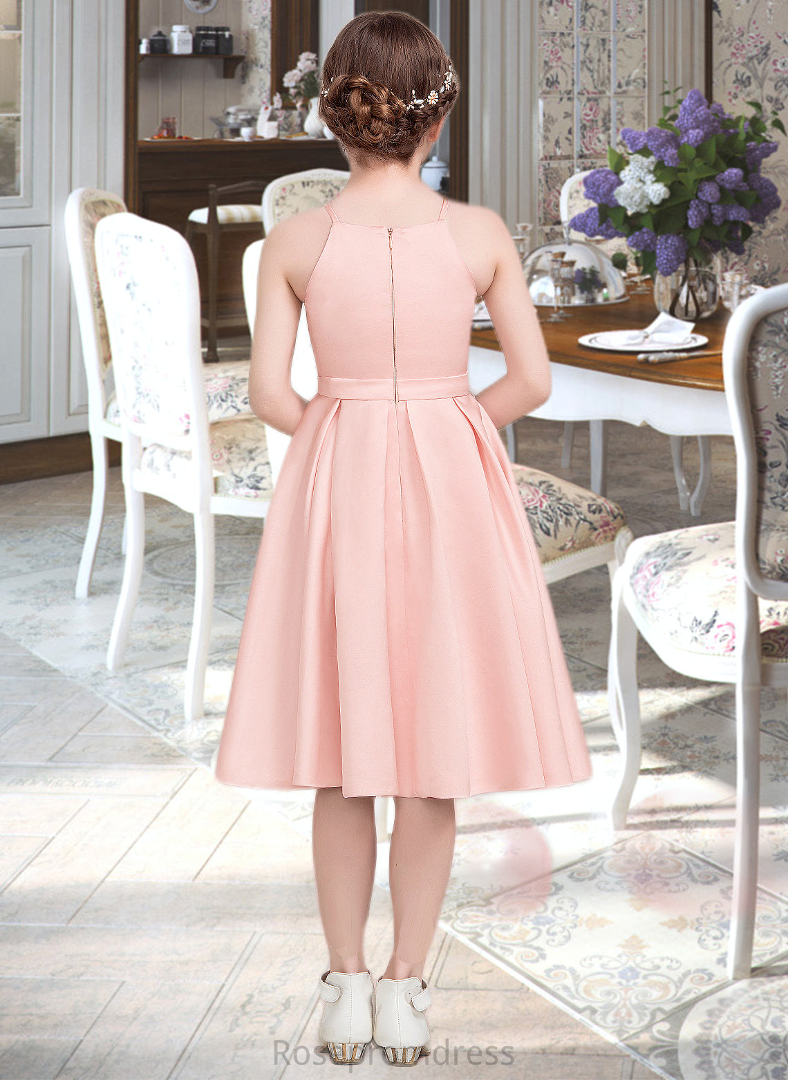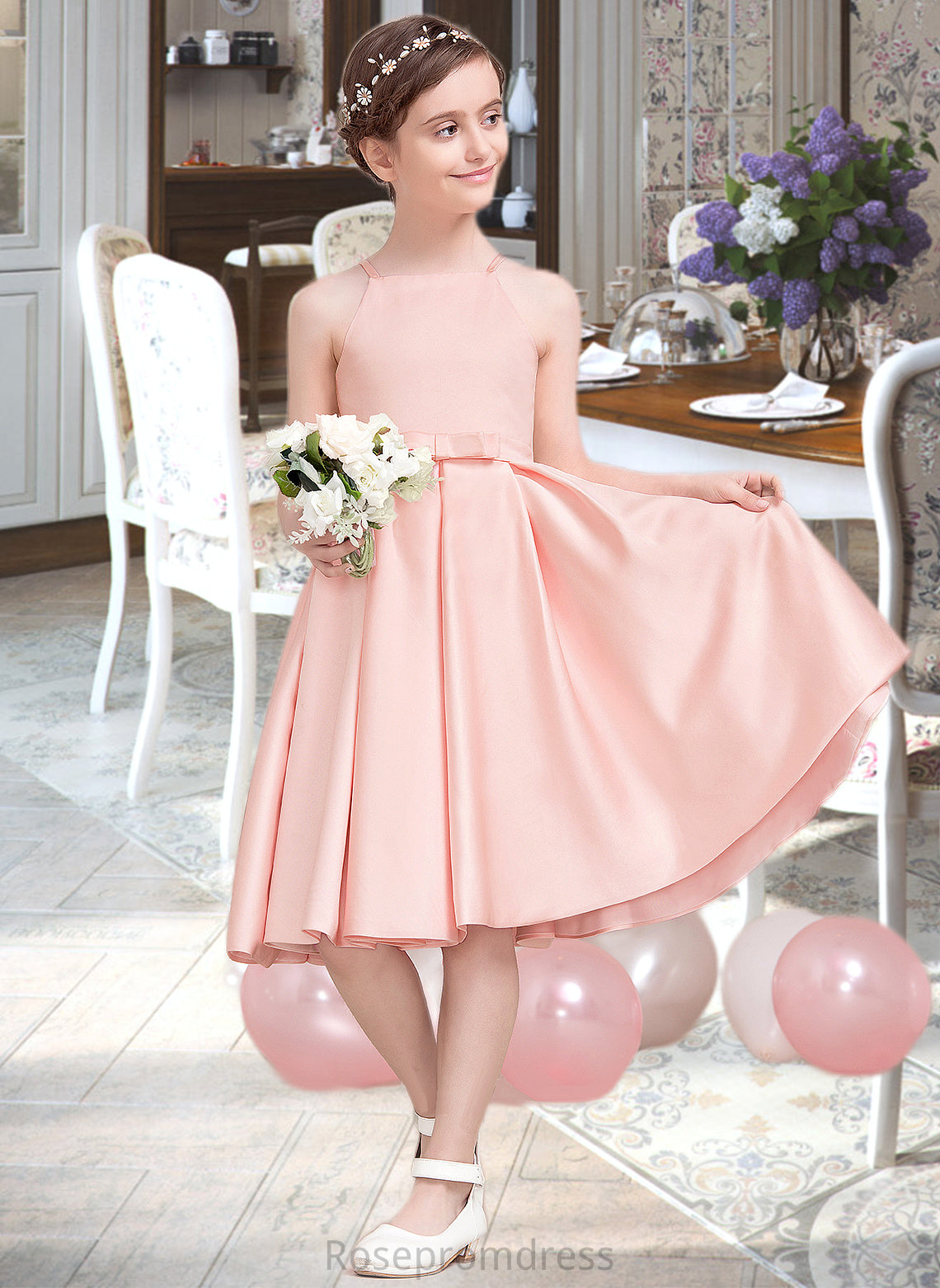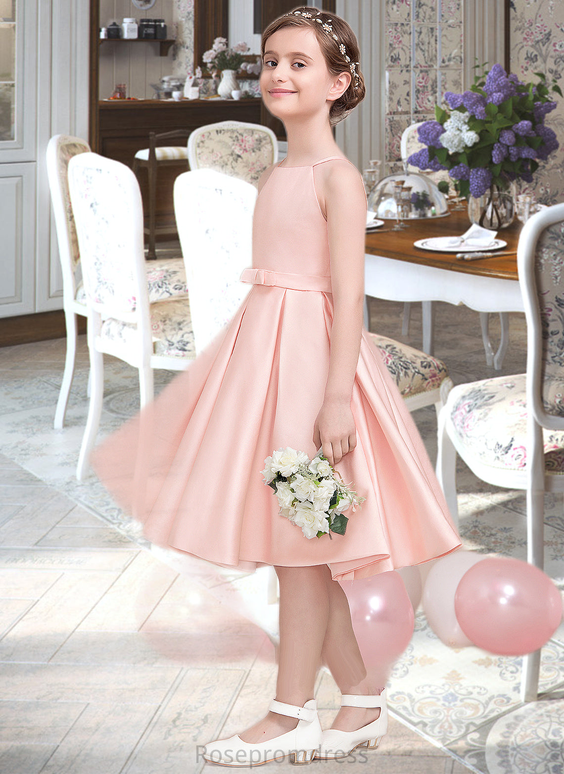 Jessica A-Line Square Neckline Knee-Length Satin Junior Bridesmaid Dress With Bow(s) SRSP0013593