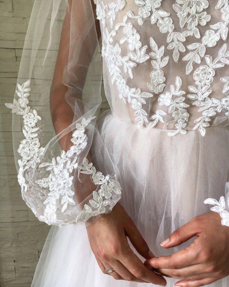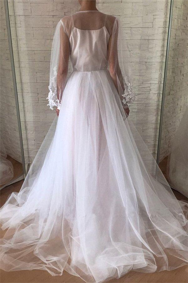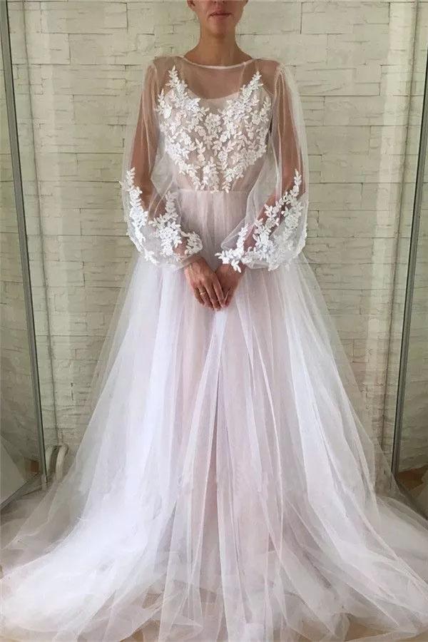 Jewel See Through Long Sleeve Ivory Lace Appliques Prom Dresses, Wedding Dresses SRS15520