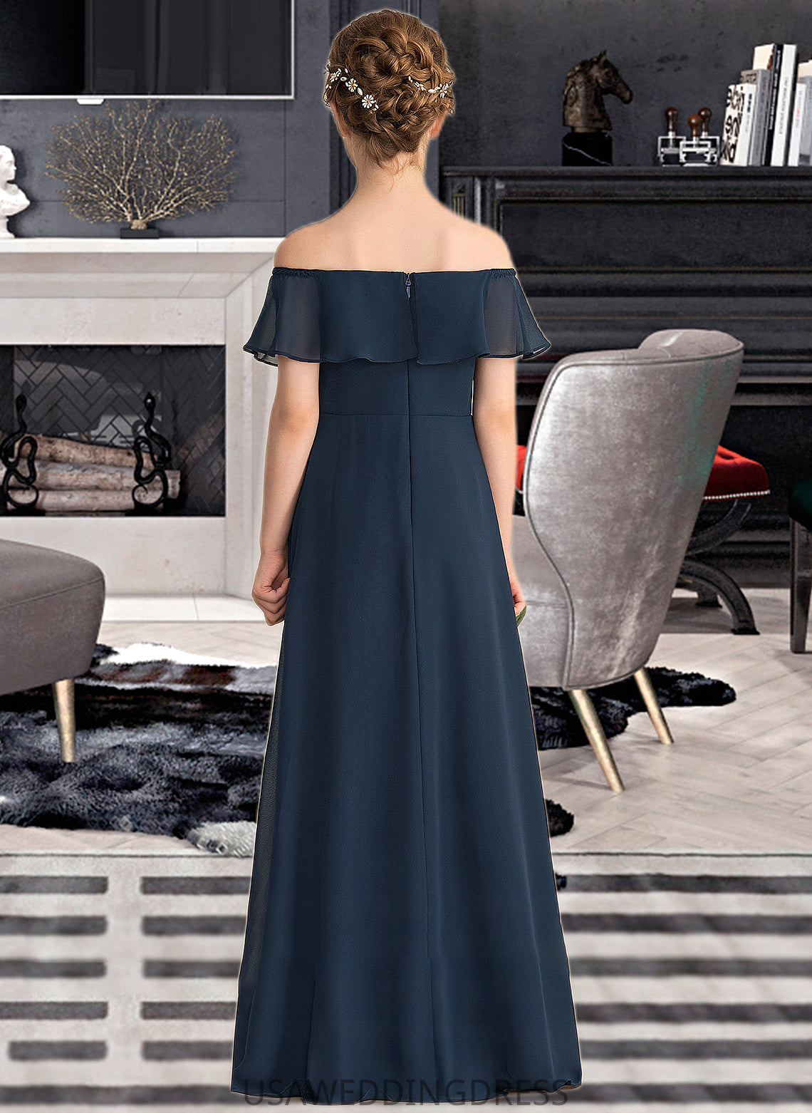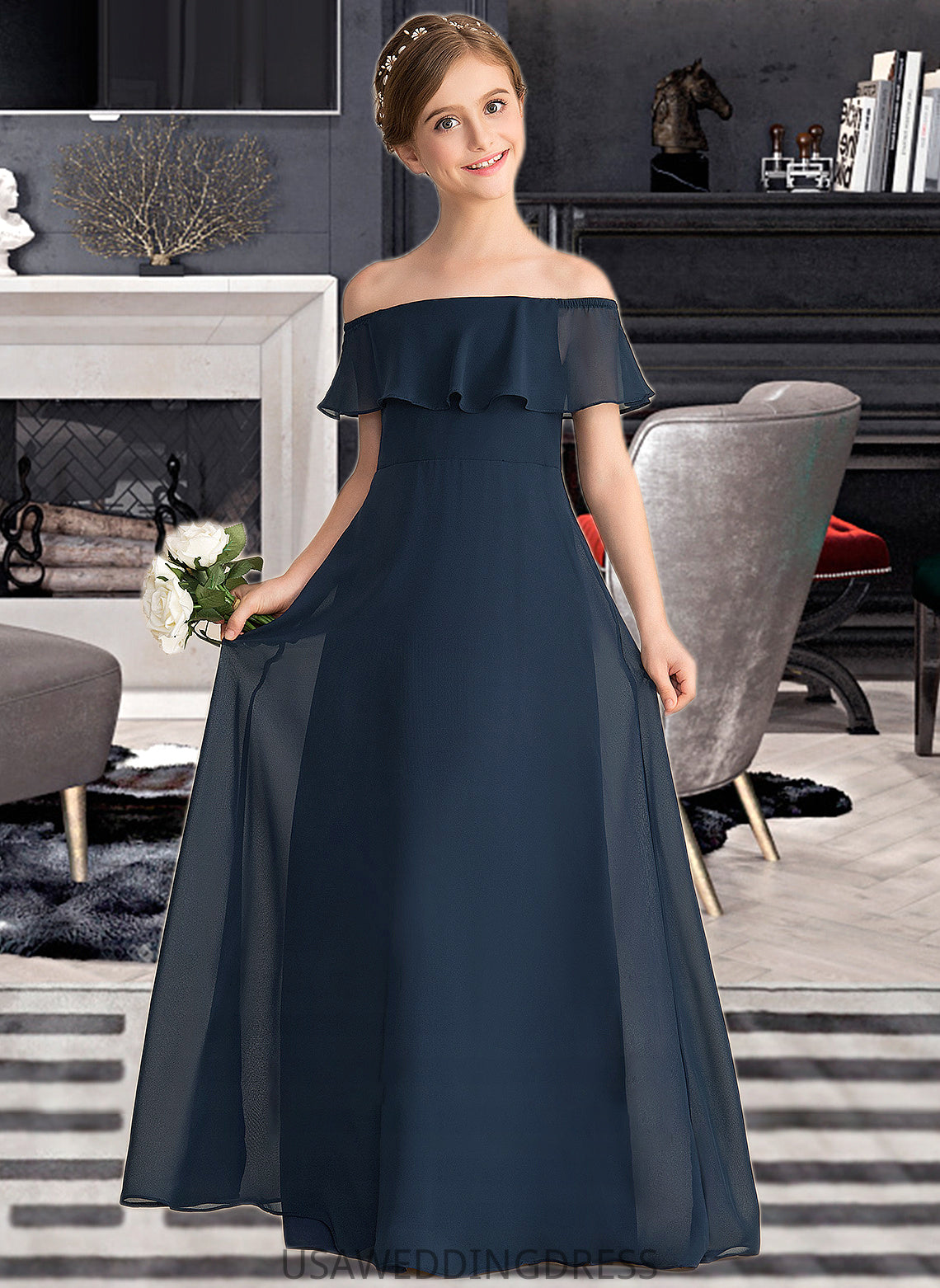 Jo A-Line Off-the-Shoulder Floor-Length Chiffon Junior Bridesmaid Dress With Cascading Ruffles DSP0013431