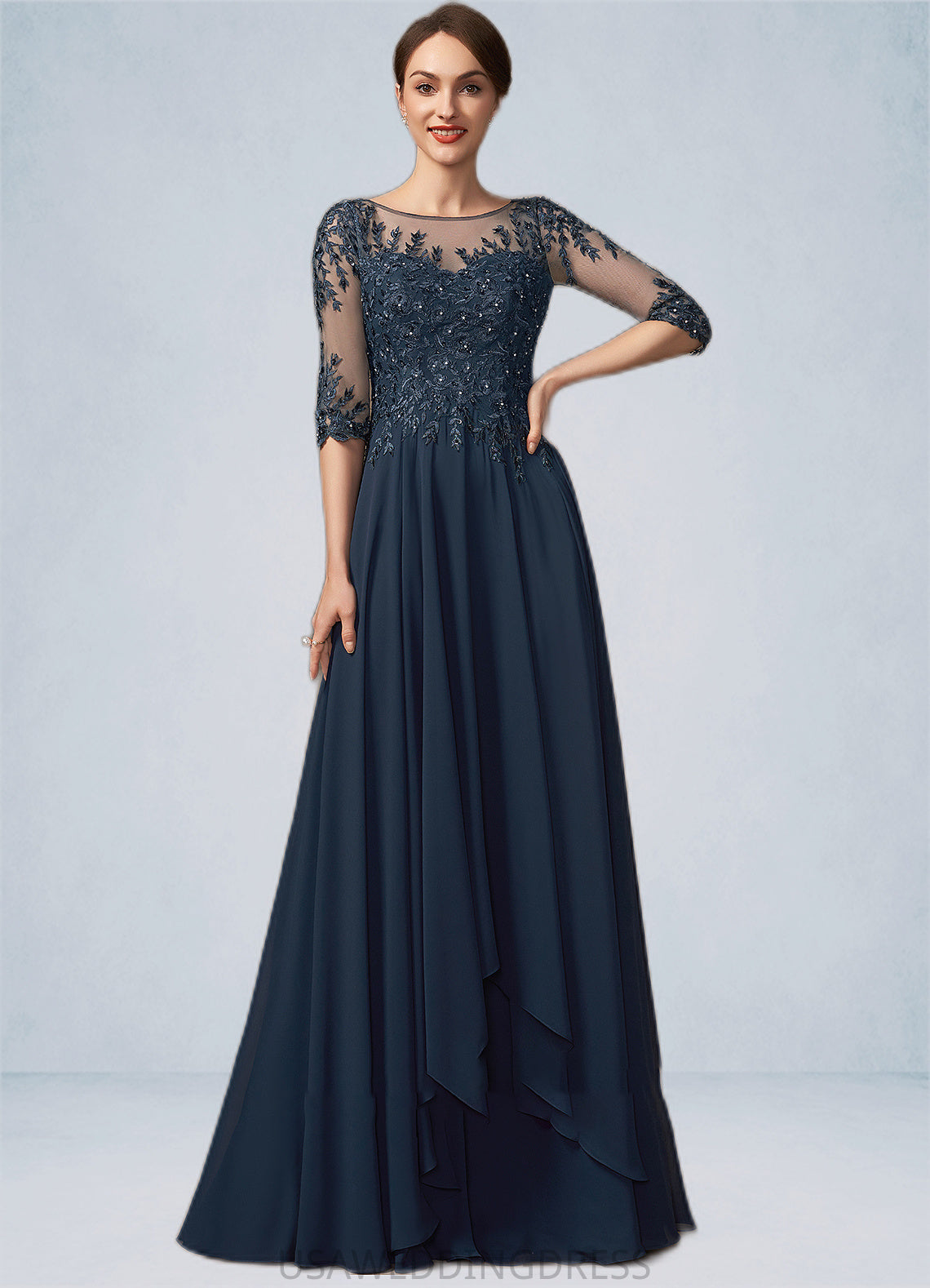 Jode A-Line Scoop Neck Floor-Length Chiffon Lace Mother of the Bride Dress With Beading Sequins DS126P0014795