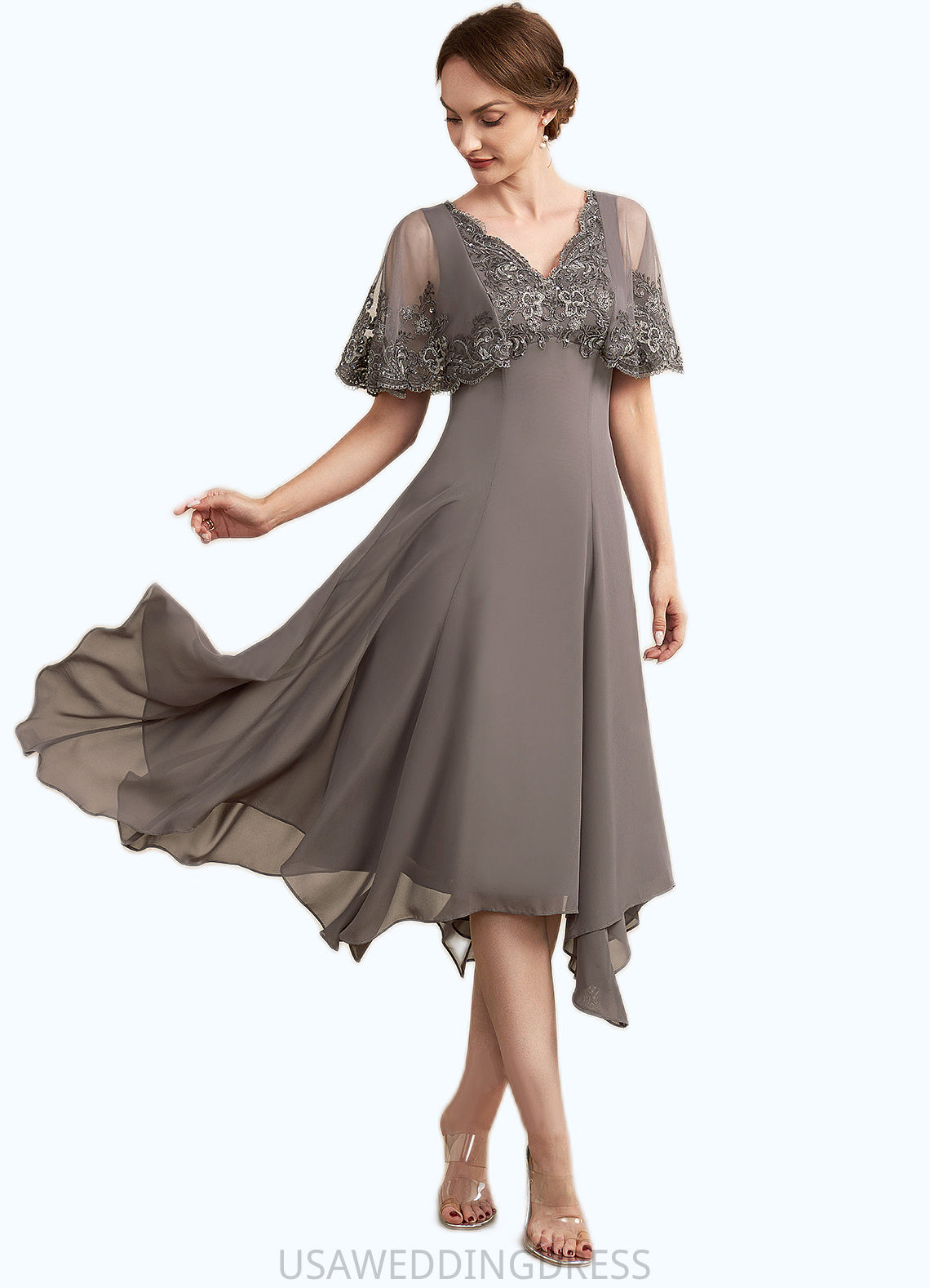 Jordin A-Line V-neck Tea-Length Chiffon Lace Mother of the Bride Dress With Beading Sequins DS126P0014852