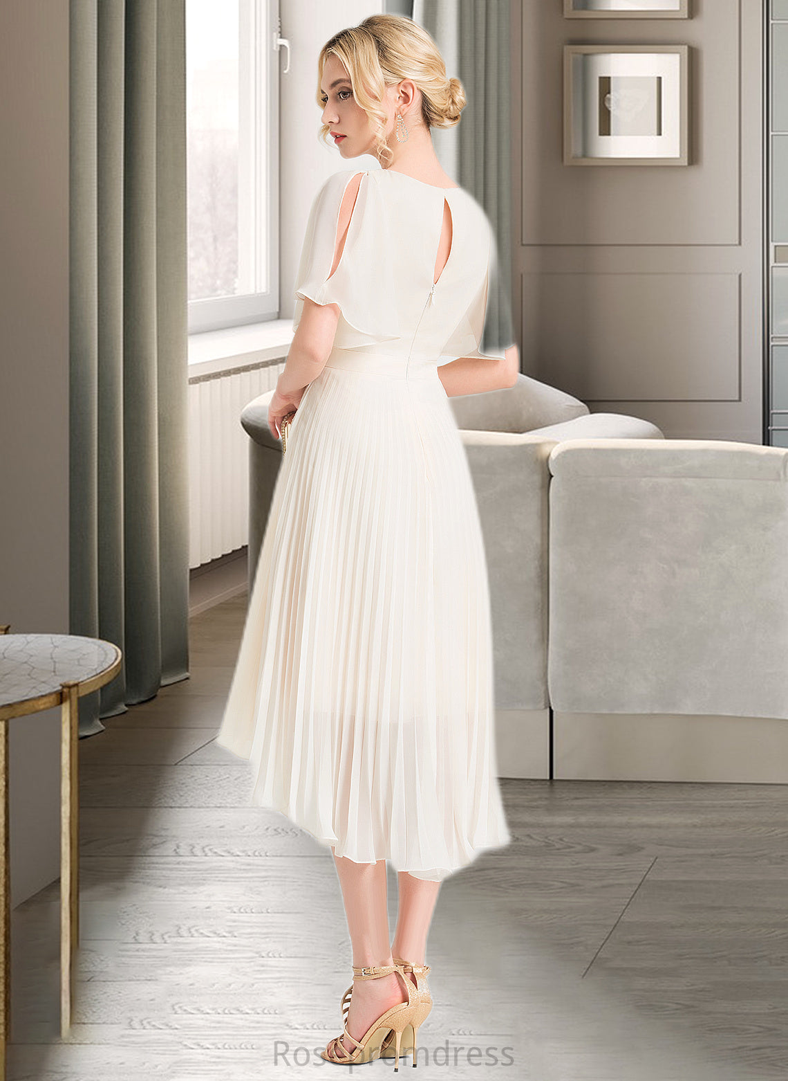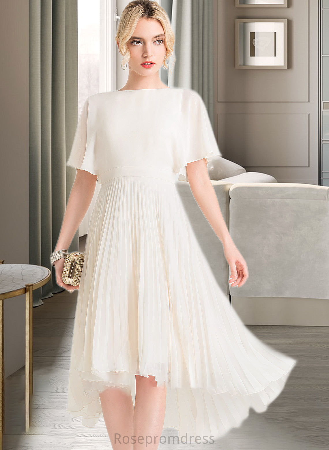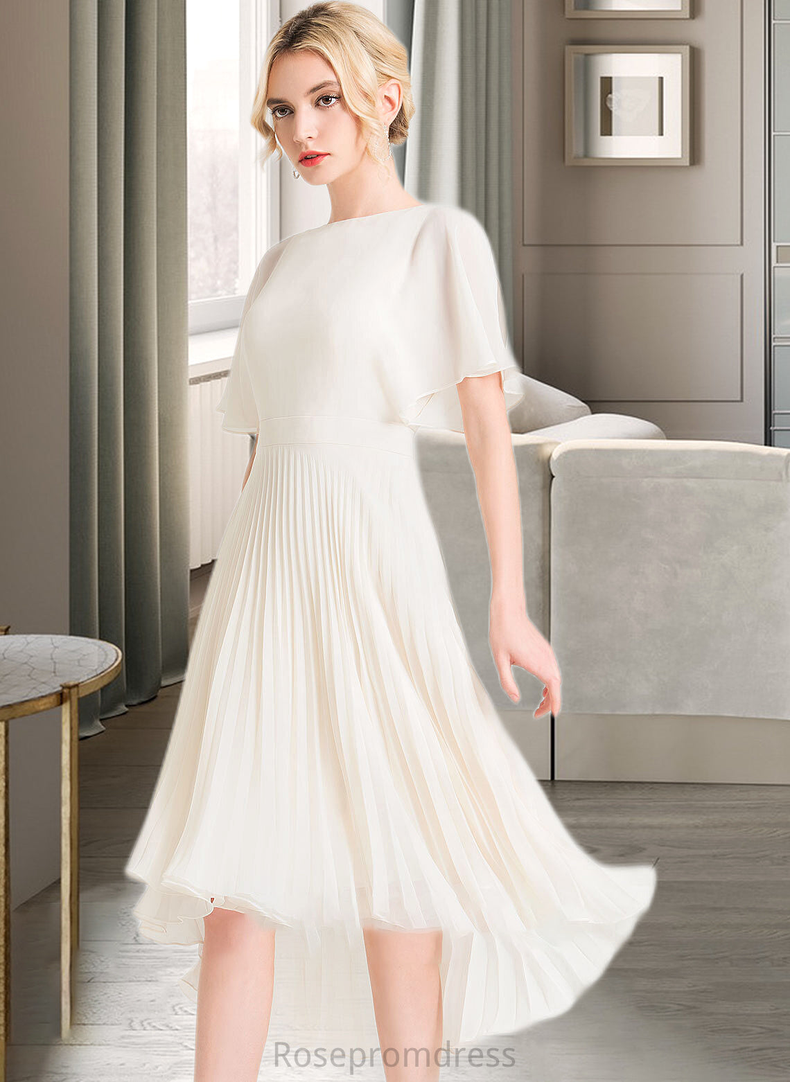 Joselyn A-Line Scoop Neck Asymmetrical Chiffon Wedding Dress With Pleated SRSP0013790