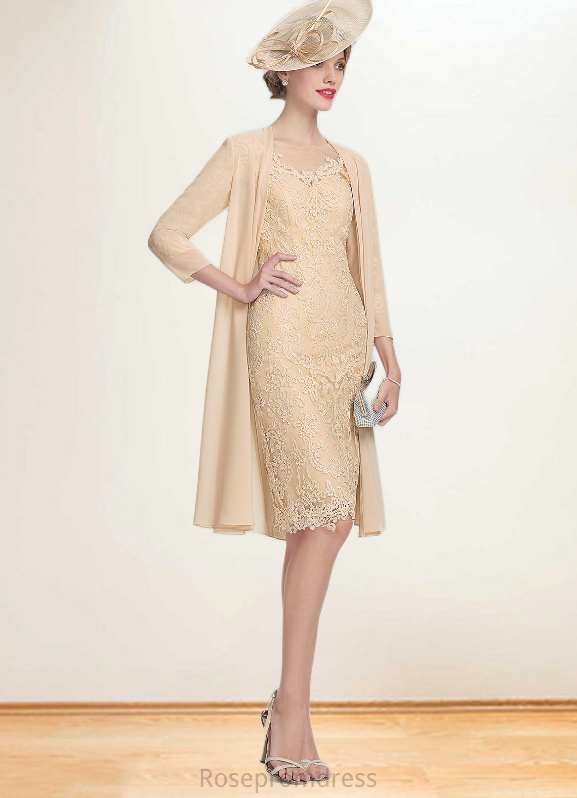 Josephine Sheath/Column Scoop Neck Knee-Length Lace Mother of the Bride Dress With Beading Sequins SRS126P0014874