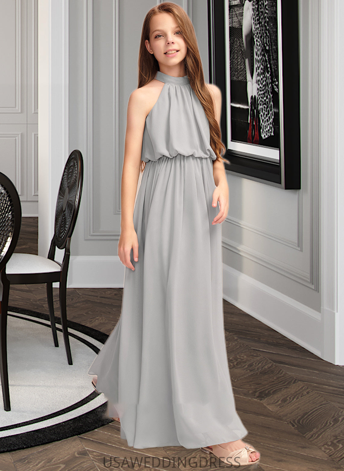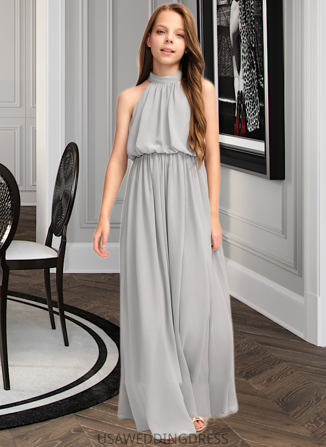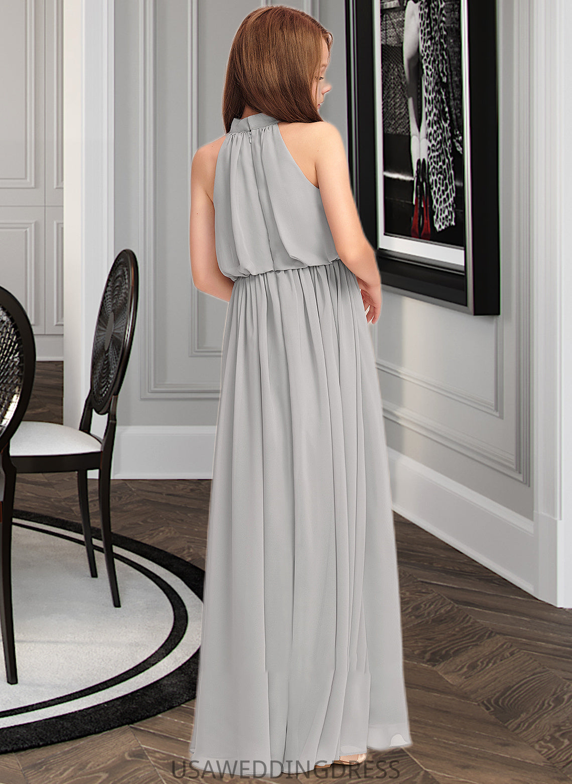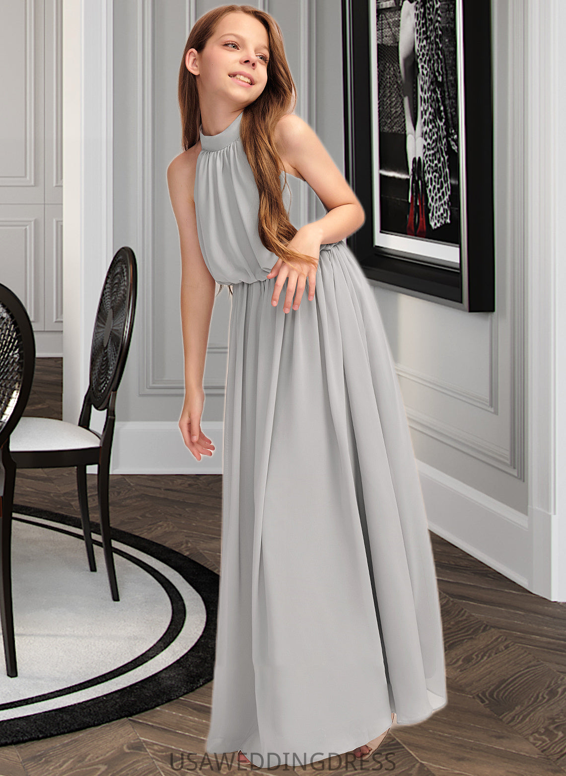 Josie A-Line High Neck Floor-Length Chiffon Junior Bridesmaid Dress With Ruffle DSP0013452
