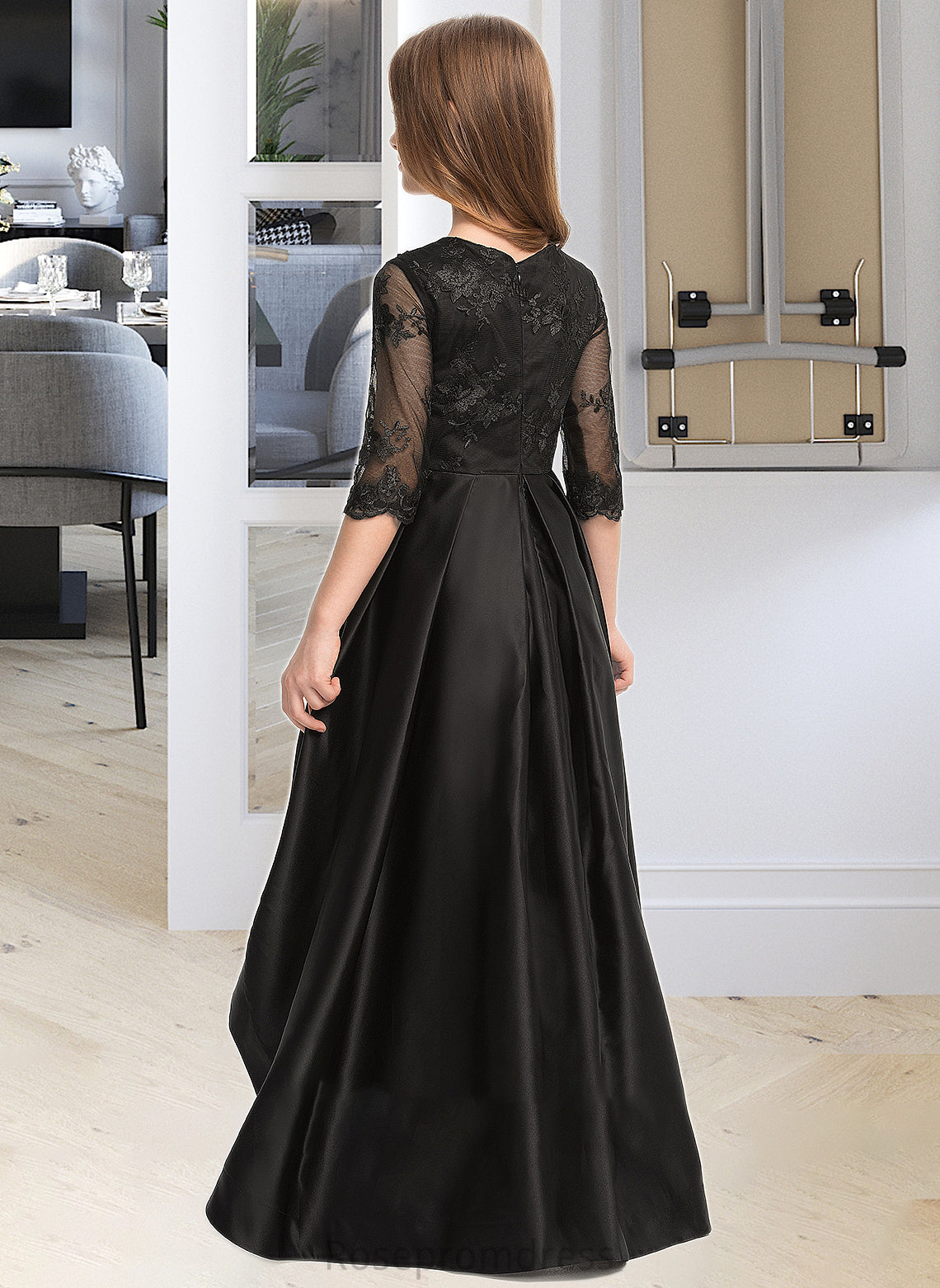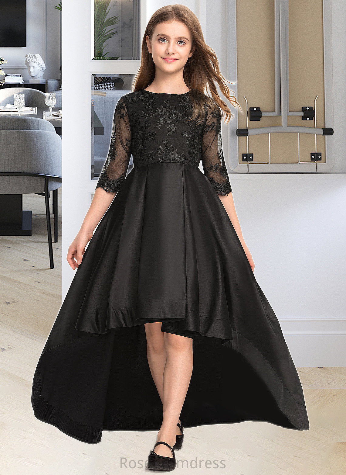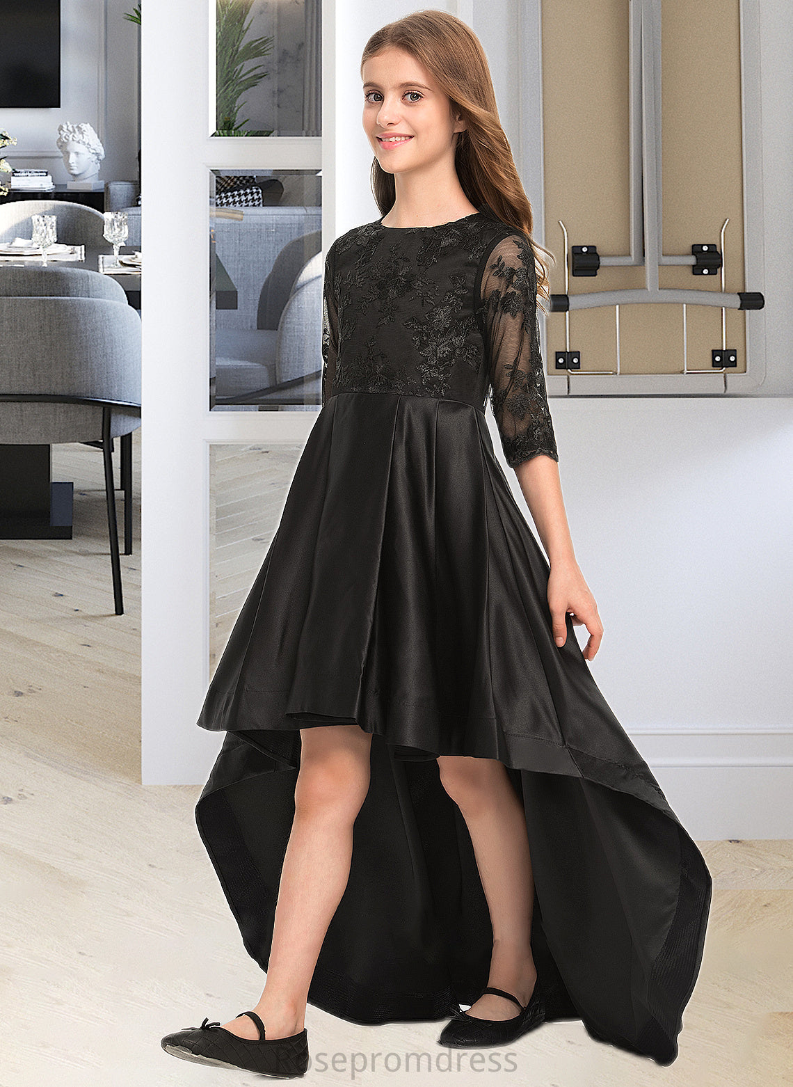 Joslyn A-Line Scoop Neck Asymmetrical Satin Lace Junior Bridesmaid Dress With Ruffle SRSP0013511