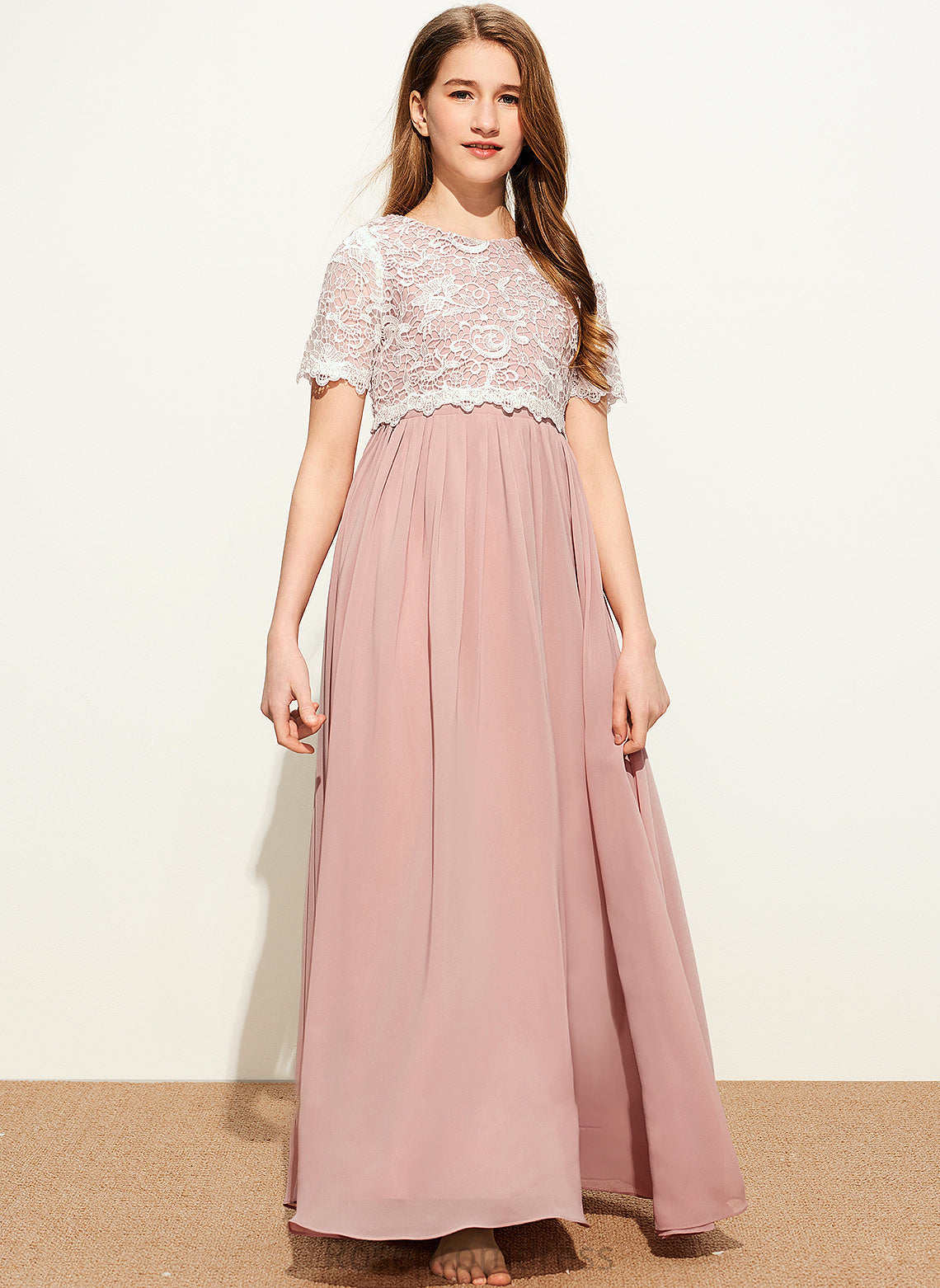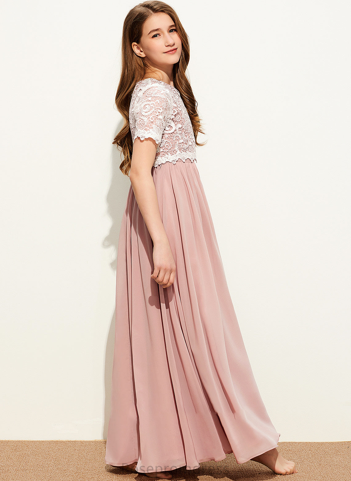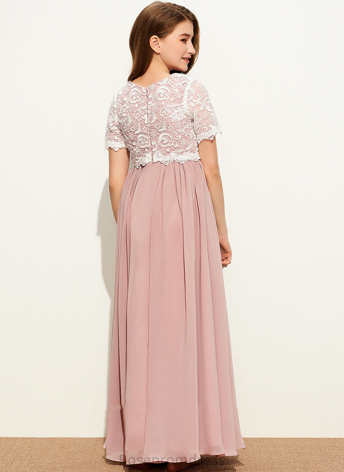Julianna Lace Junior Bridesmaid Dresses Scoop Chiffon A-Line Floor-Length Neck