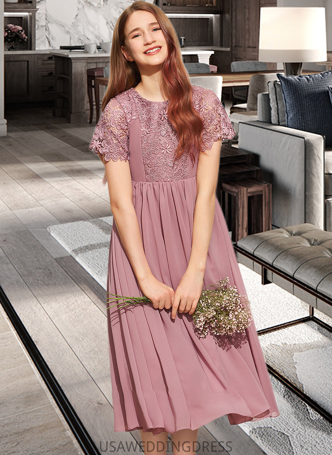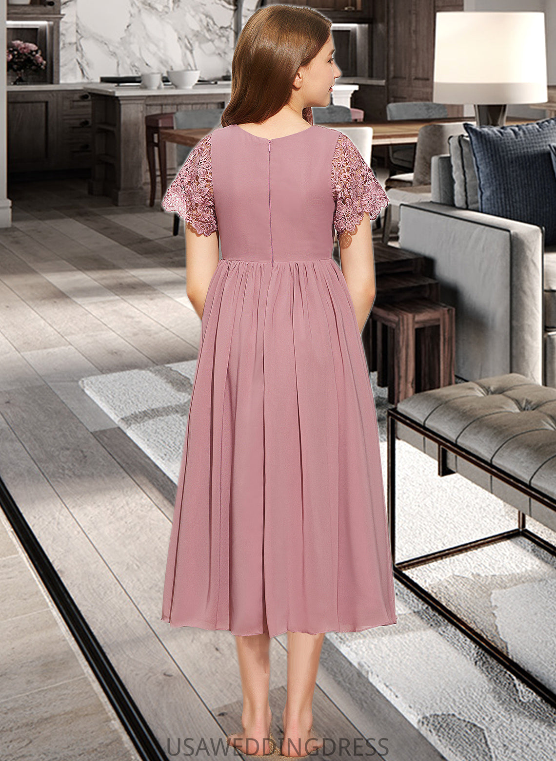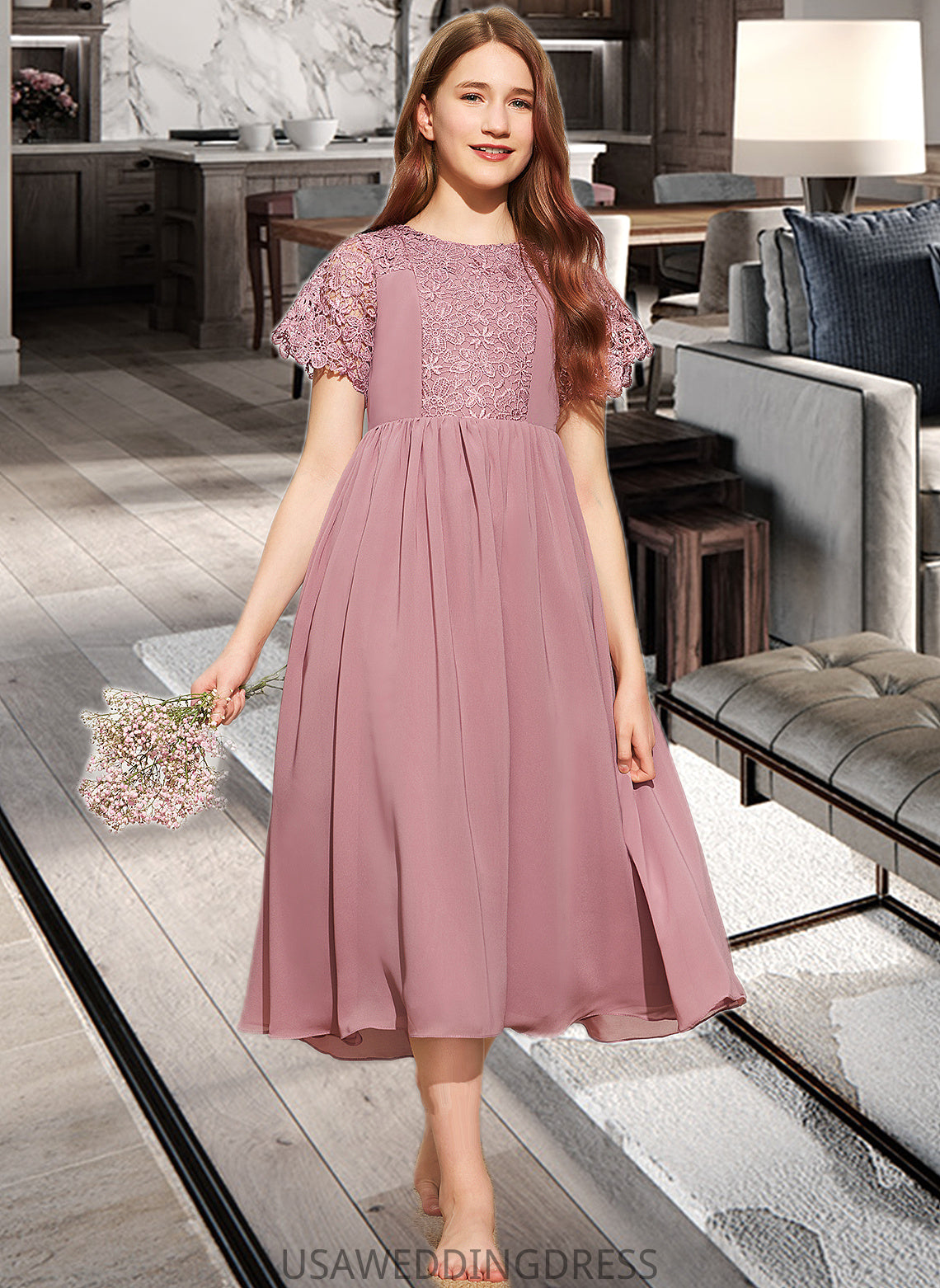 Julie A-Line Scoop Neck Tea-Length Chiffon Lace Junior Bridesmaid Dress DSP0013648