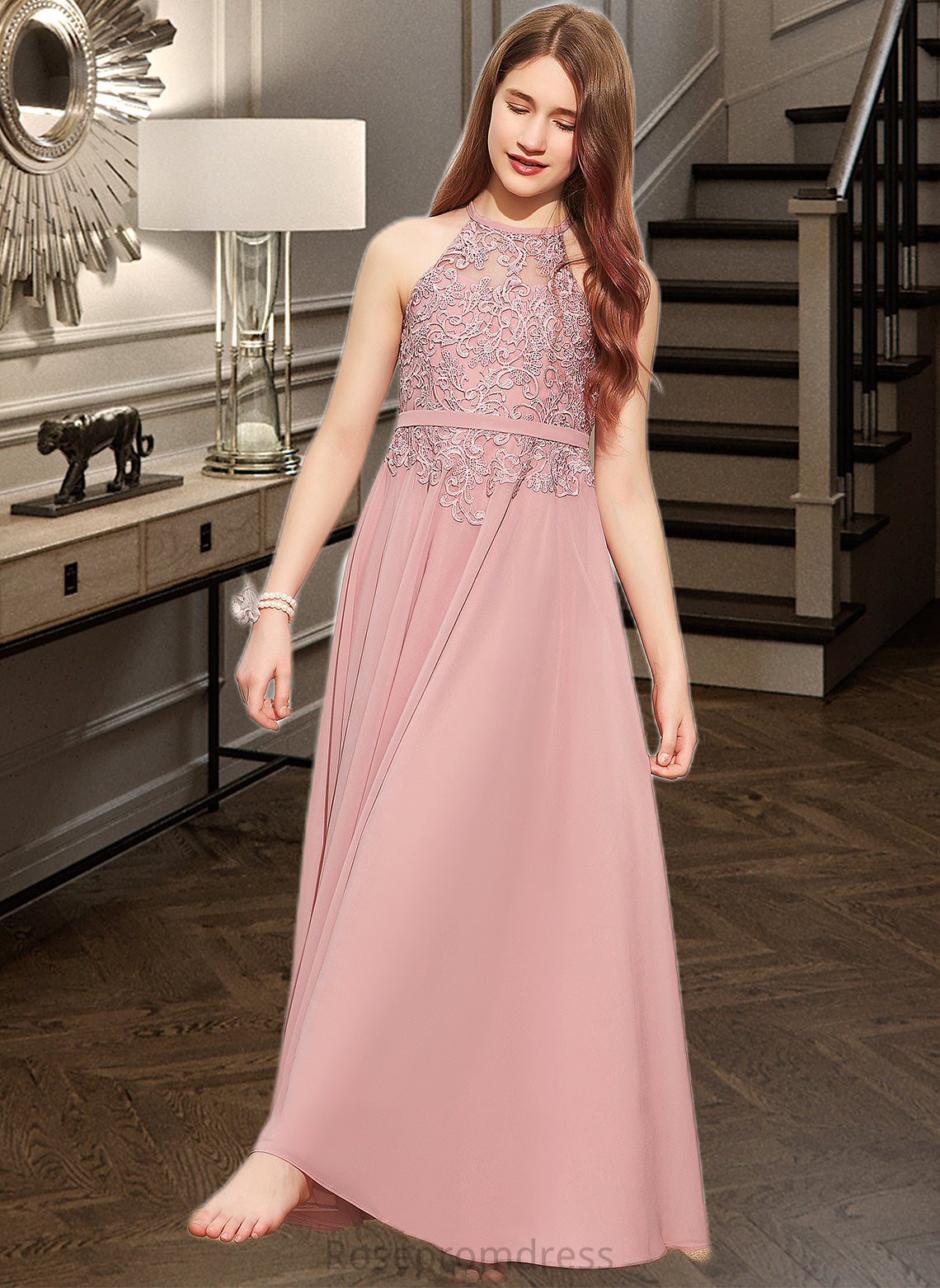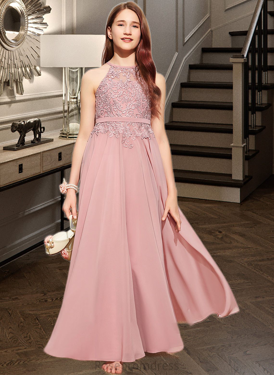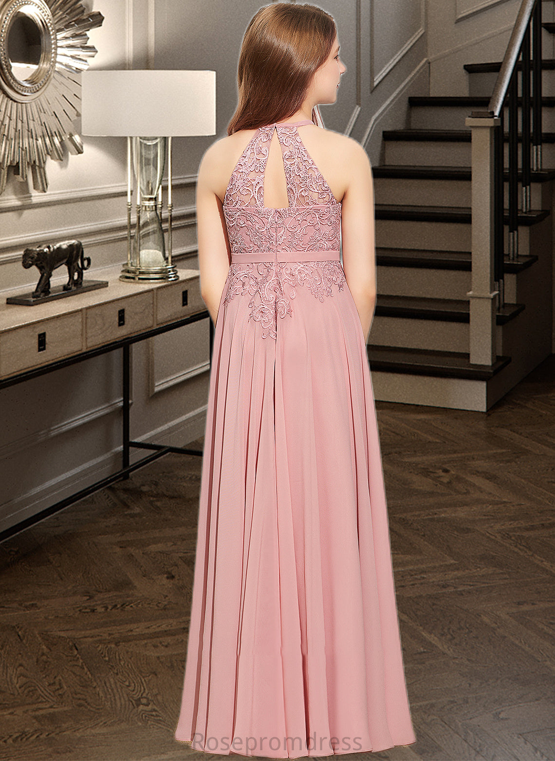 June A-Line Scoop Neck Floor-Length Chiffon Lace Junior Bridesmaid Dress SRSP0013549
