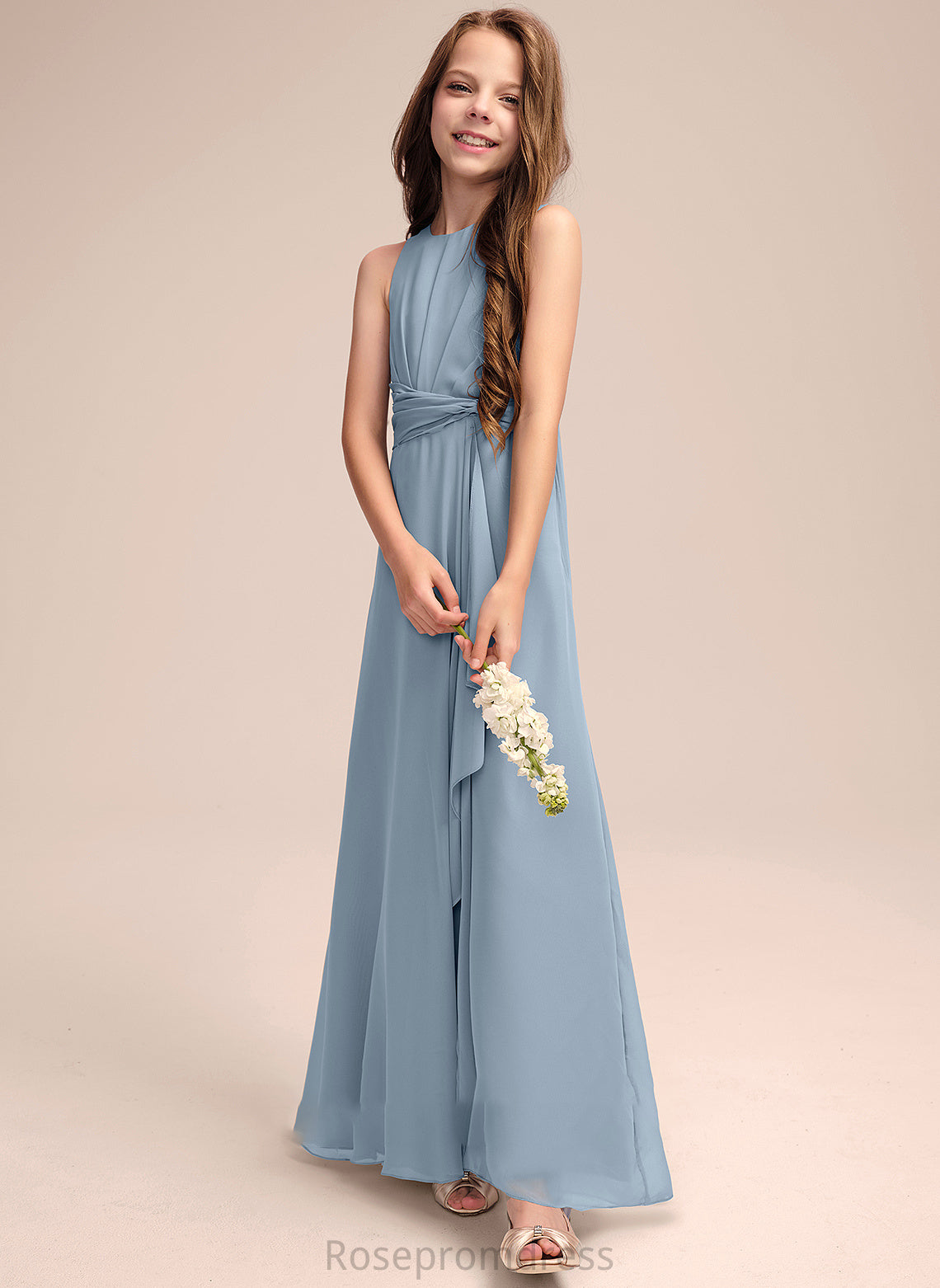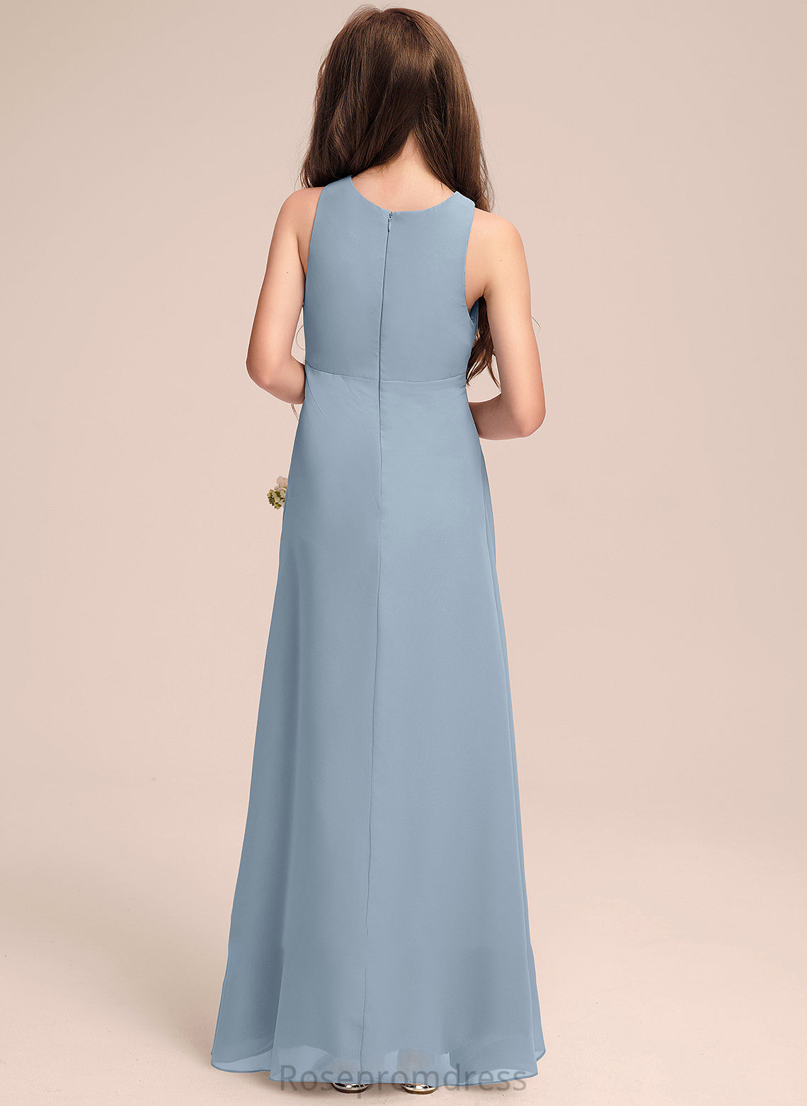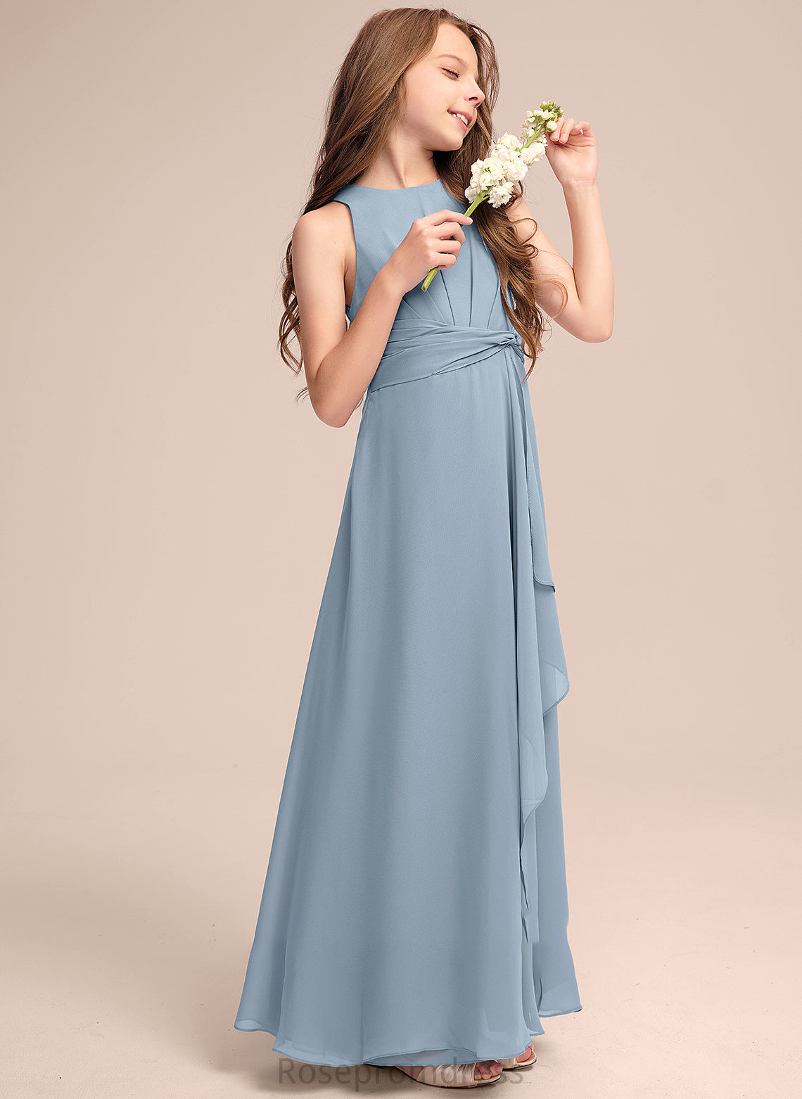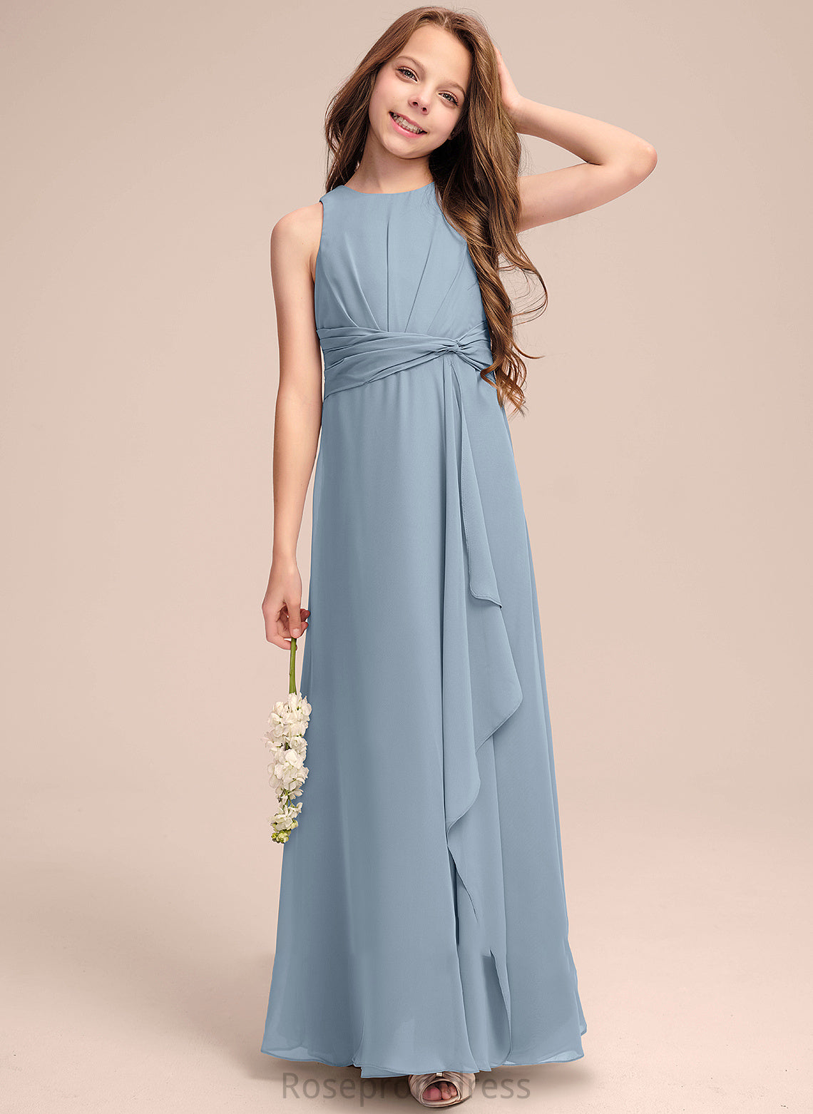 Junior Bridesmaid Dresses A-Line Kiara Neck Floor-Length Scoop Ruffles Cascading With Chiffon