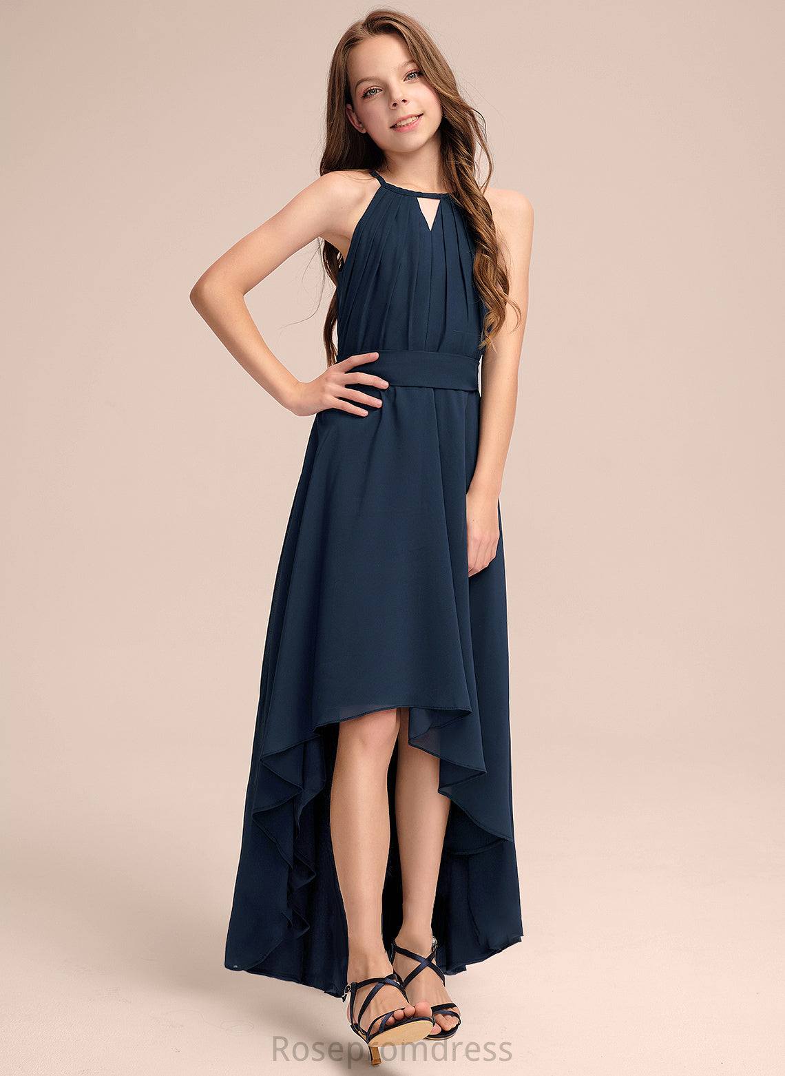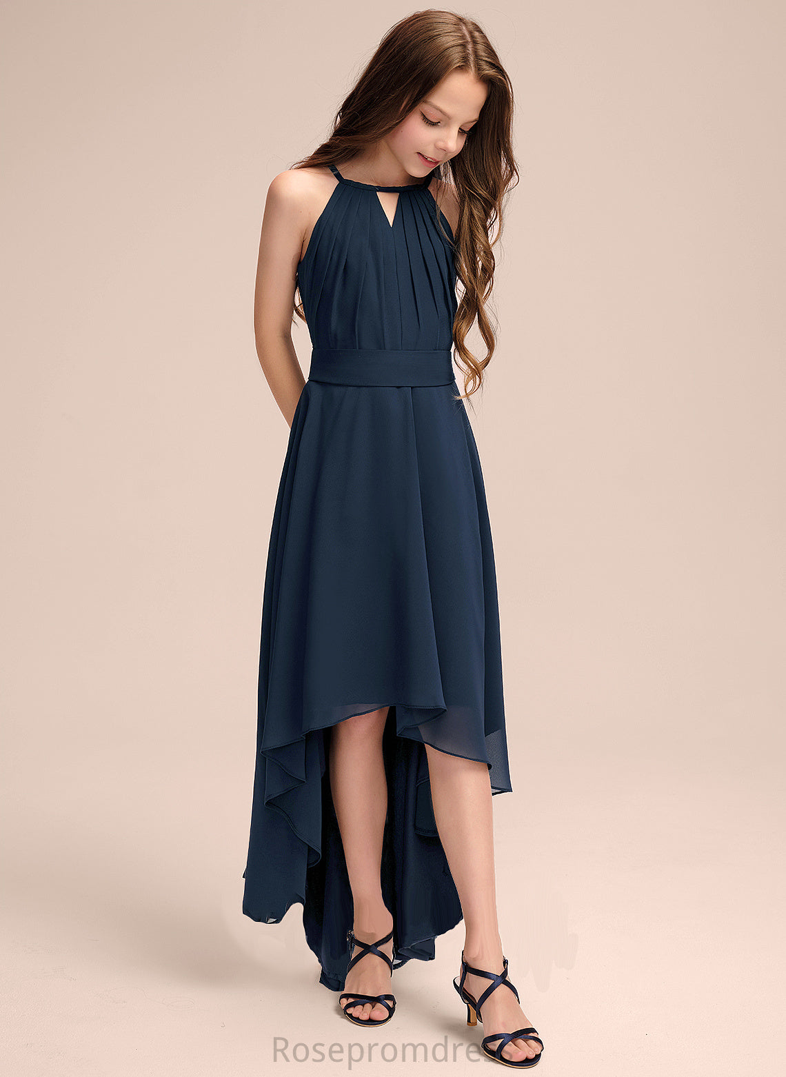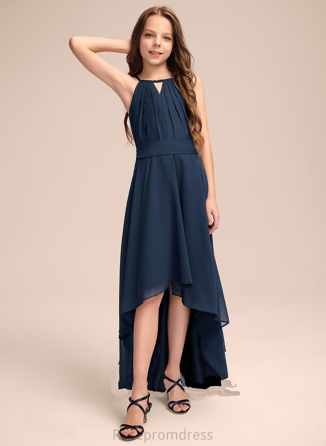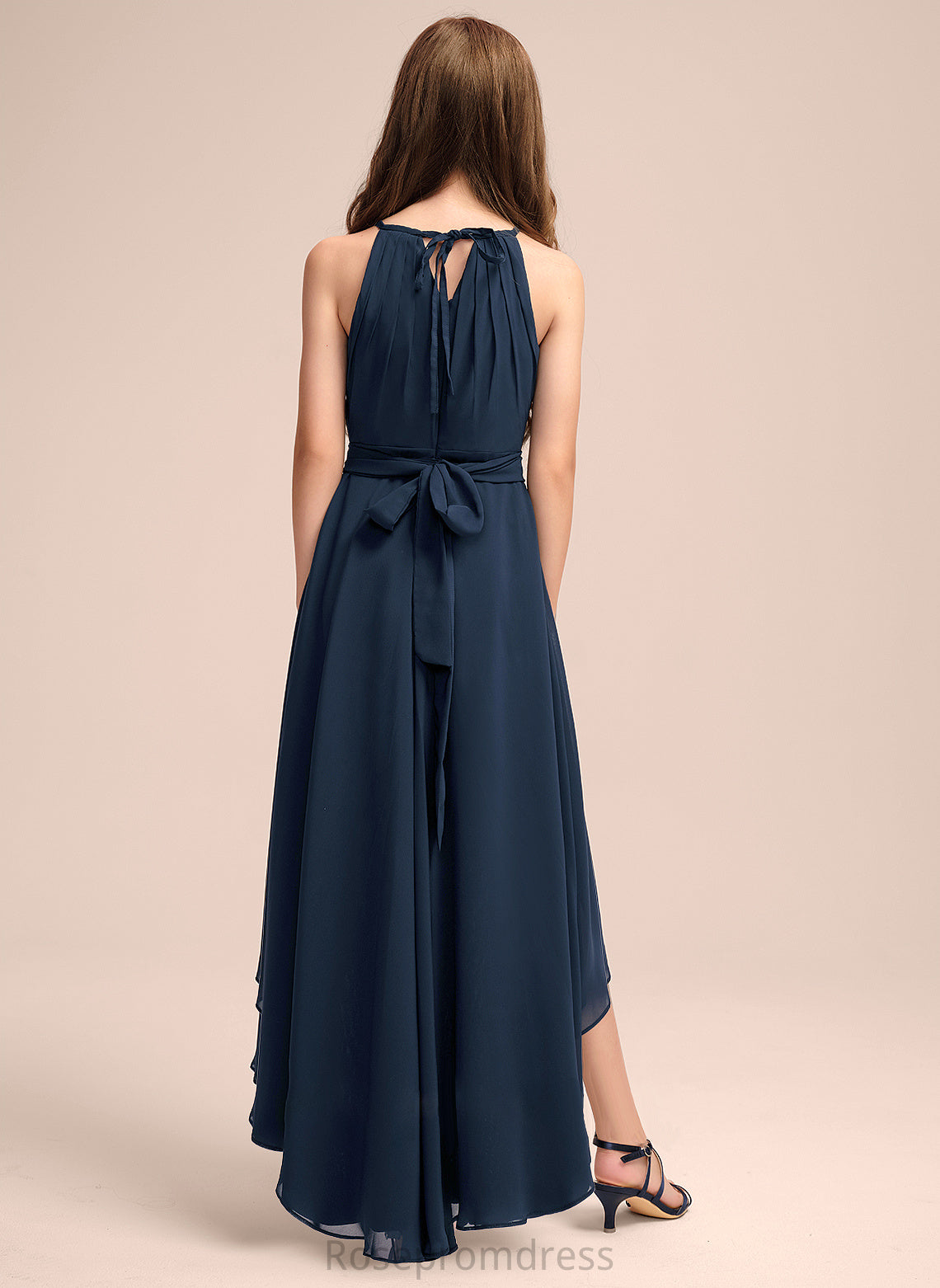 Junior Bridesmaid Dresses Adelaide Scoop Ruffles A-Line Chiffon Bow(s) Neck Asymmetrical With