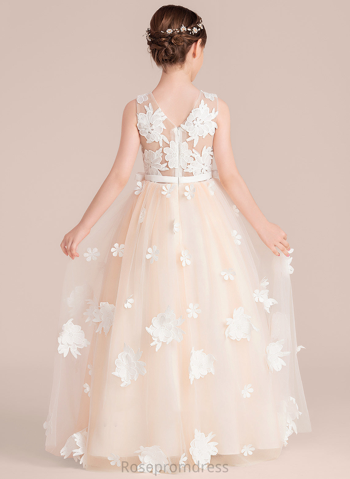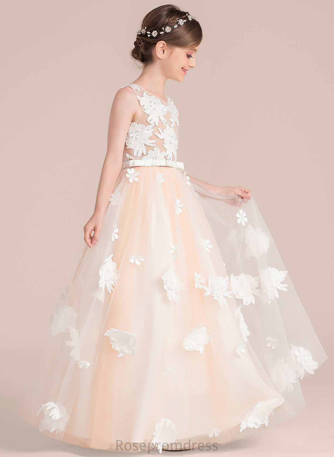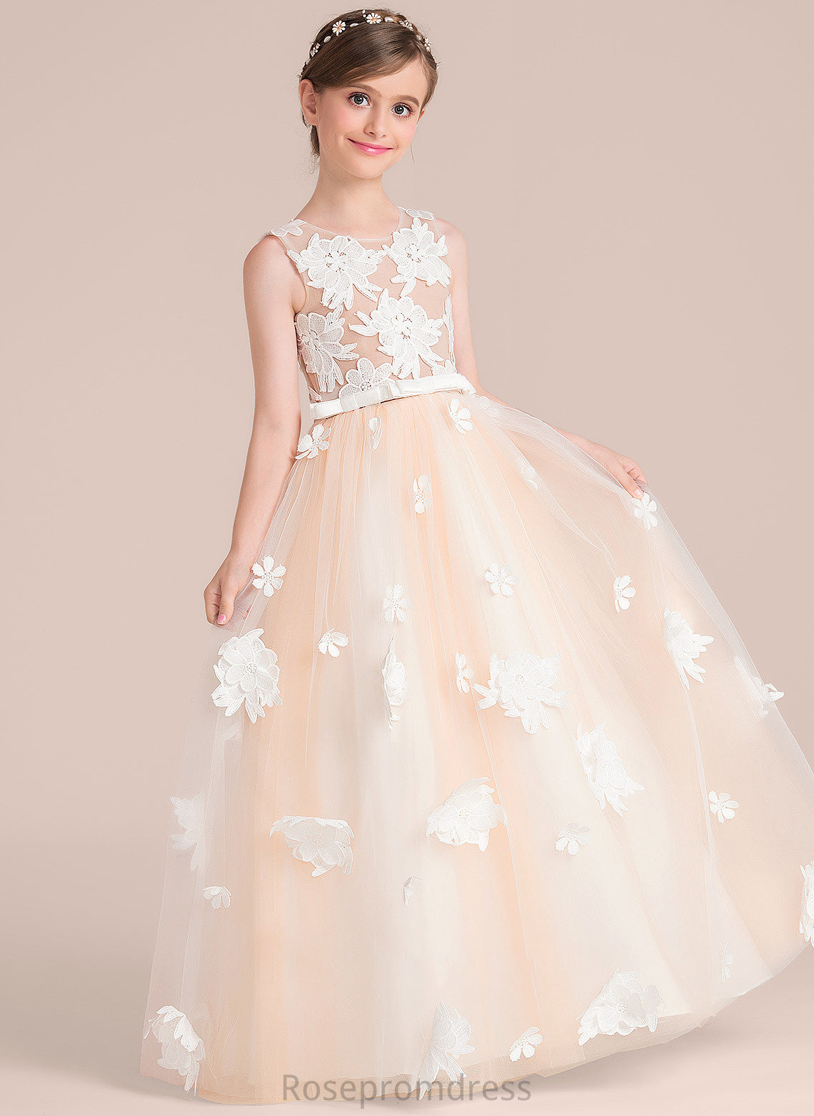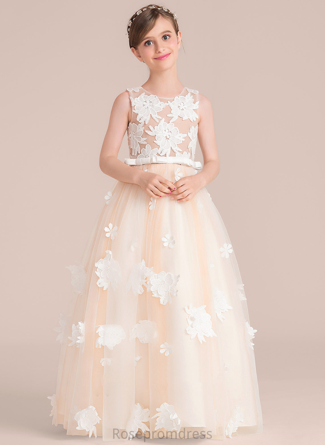 Junior Bridesmaid Dresses Ball-Gown/Princess Neck Bow(s) With Tess Tulle Flower(s) Scoop Floor-Length