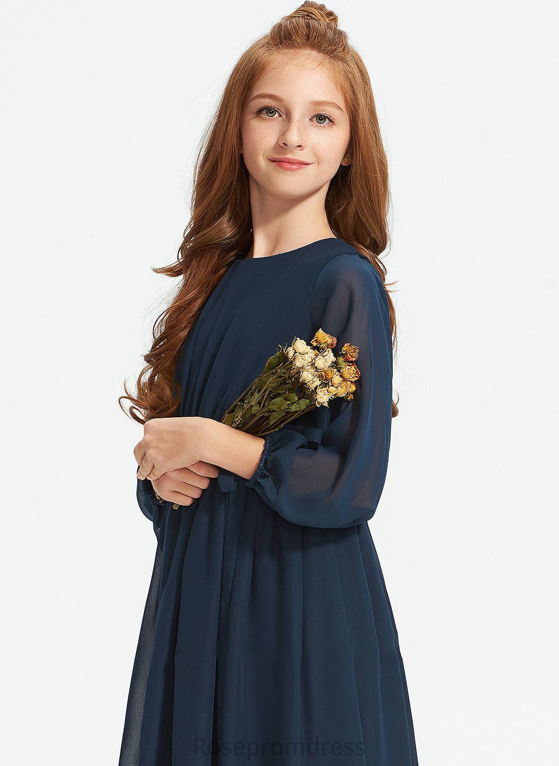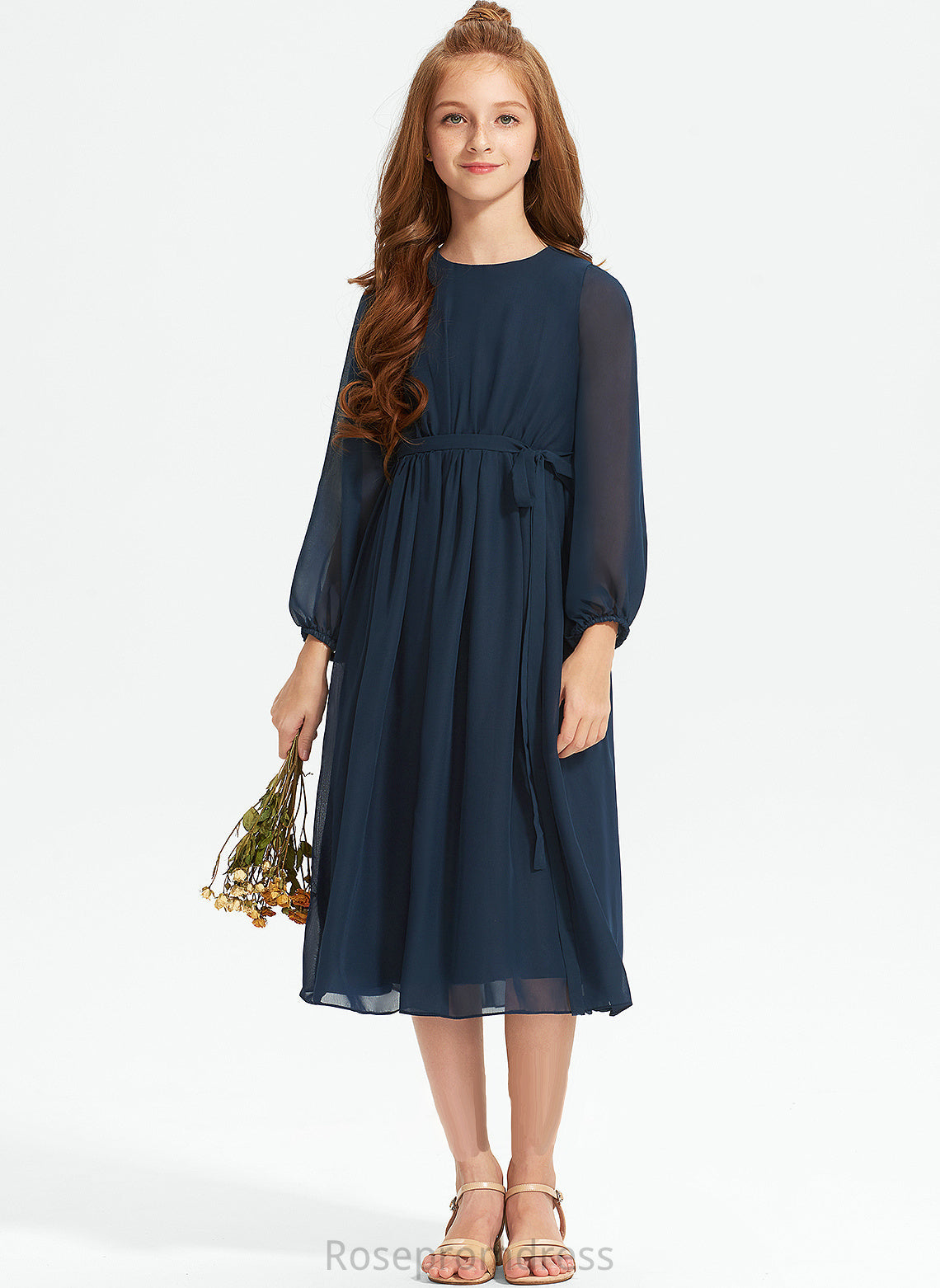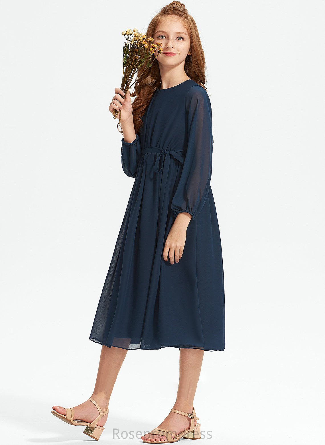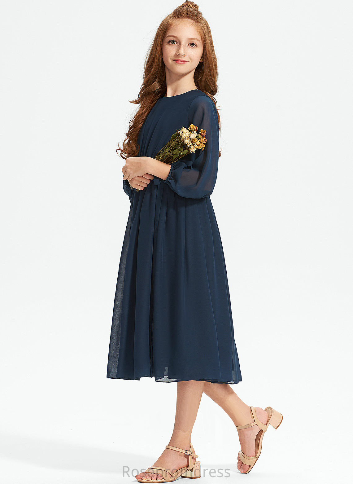 Junior Bridesmaid Dresses Bianca Ruffle Bow(s) Neck Chiffon With Tea-Length Scoop A-Line