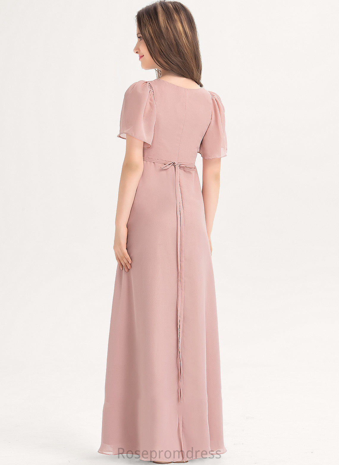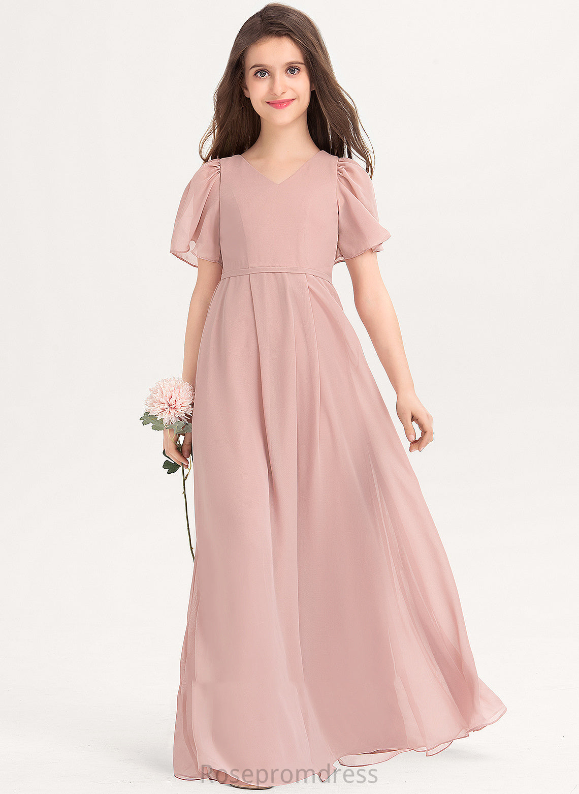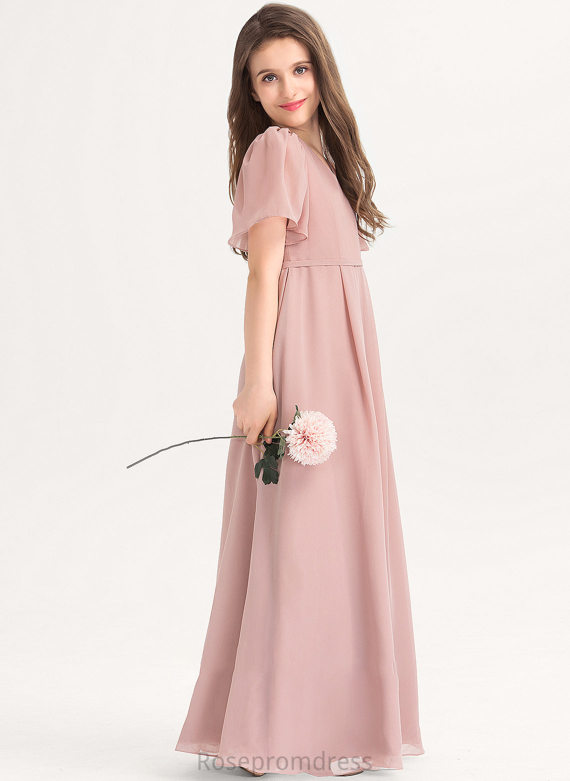 Junior Bridesmaid Dresses Bow(s) A-Line V-neck With Floor-Length Chiffon Mallory