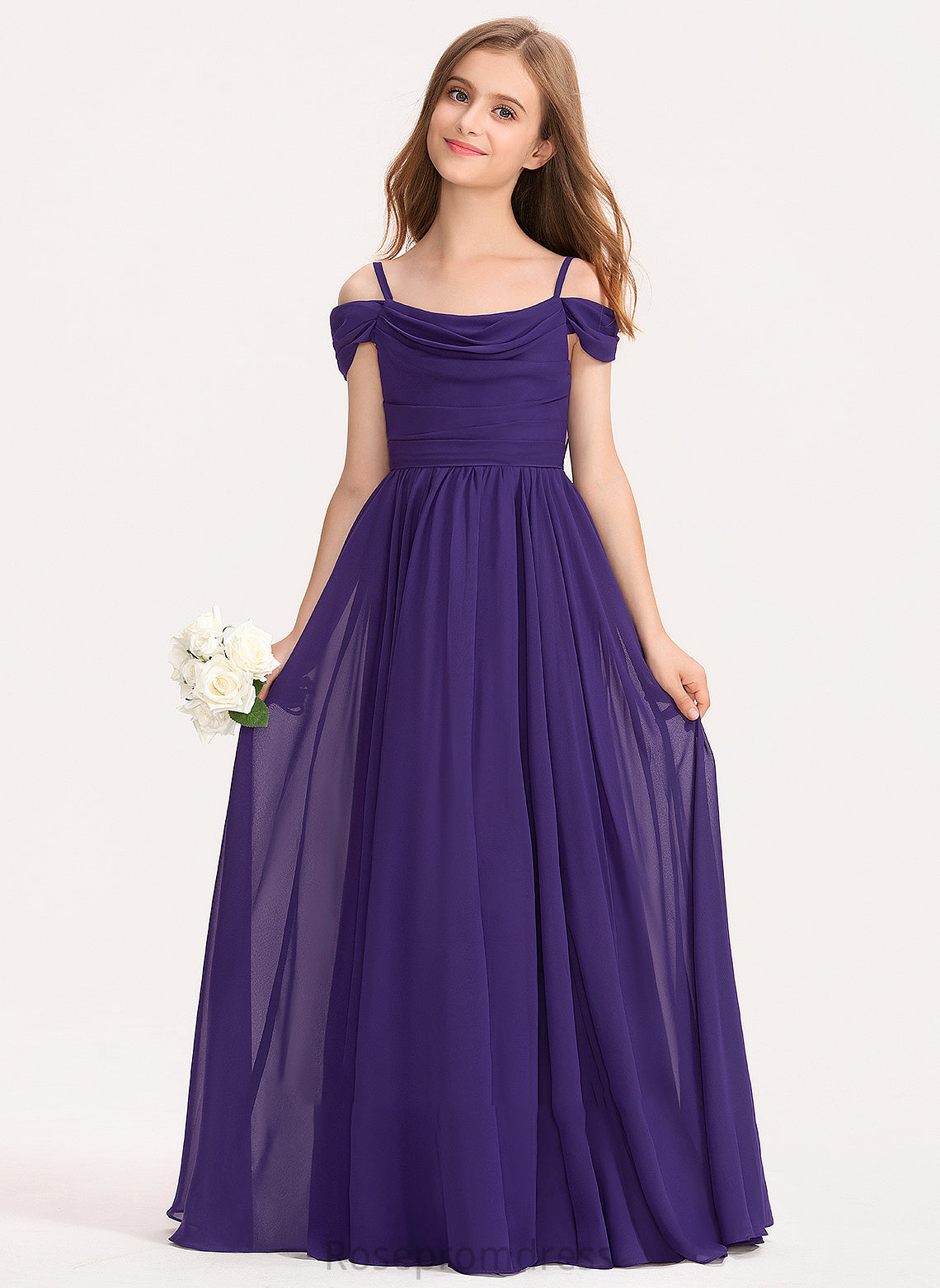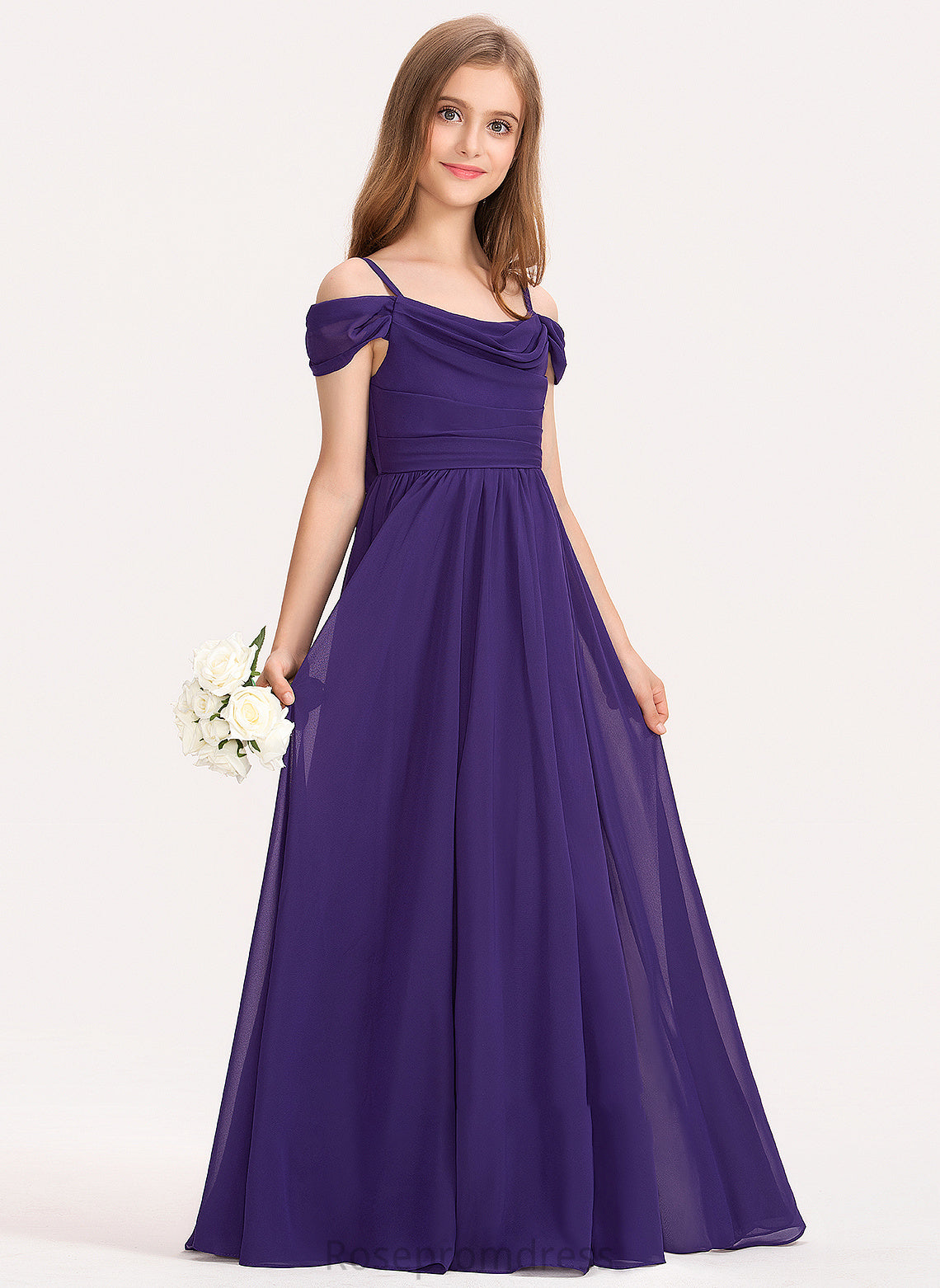 Junior Bridesmaid Dresses Floor-Length With Ruffle A-Line Off-the-Shoulder Chiffon Gianna