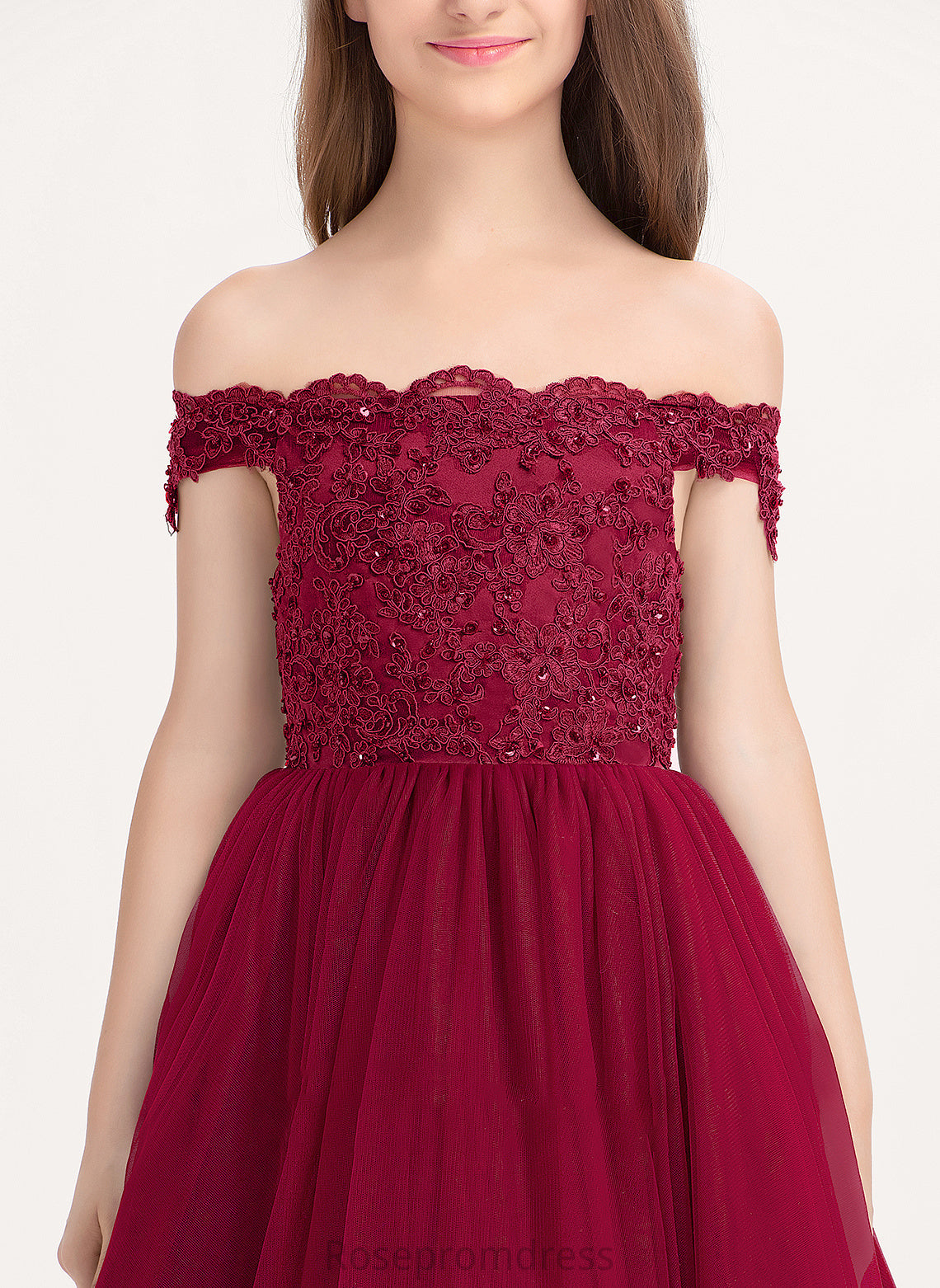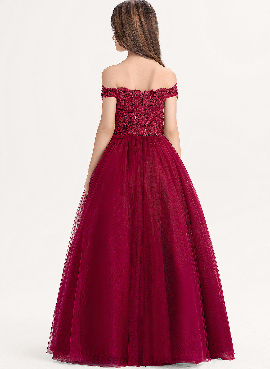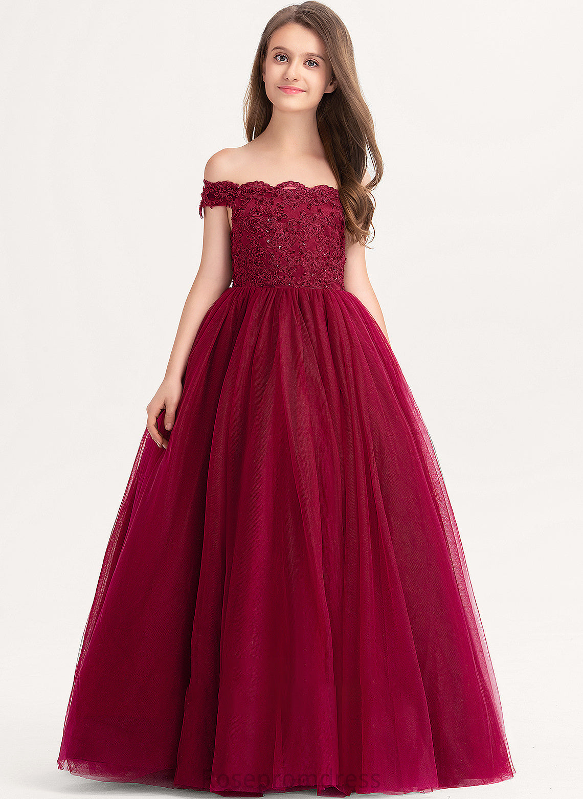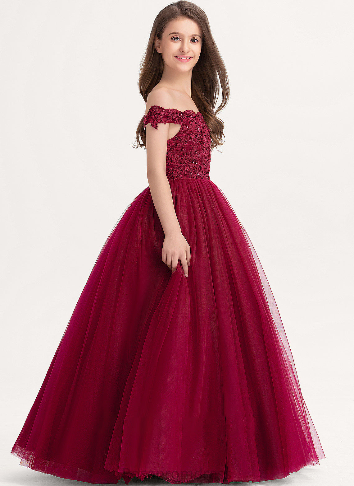 Junior Bridesmaid Dresses Greta Beading Tulle Floor-Length Off-the-Shoulder Lace Sequins Ball-Gown/Princess With
