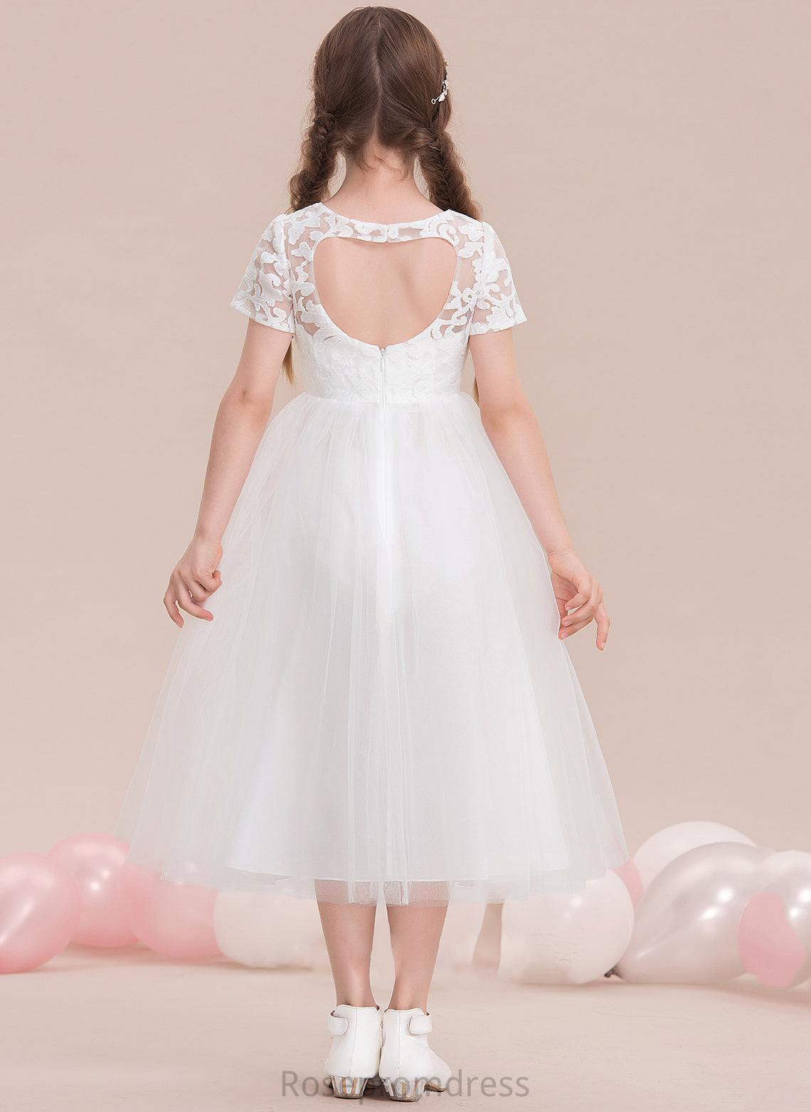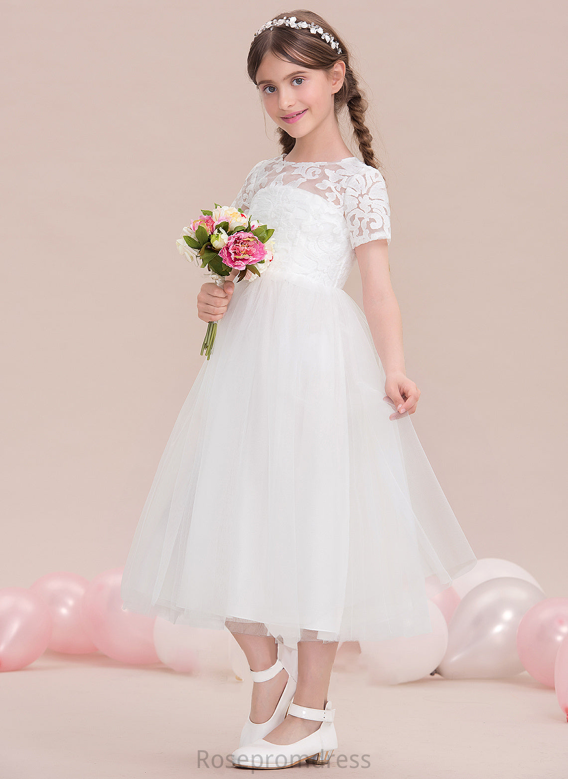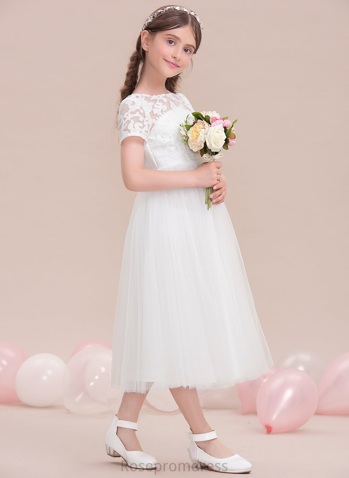 Junior Bridesmaid Dresses Neck Tea-Length Scoop Nan A-Line Tulle