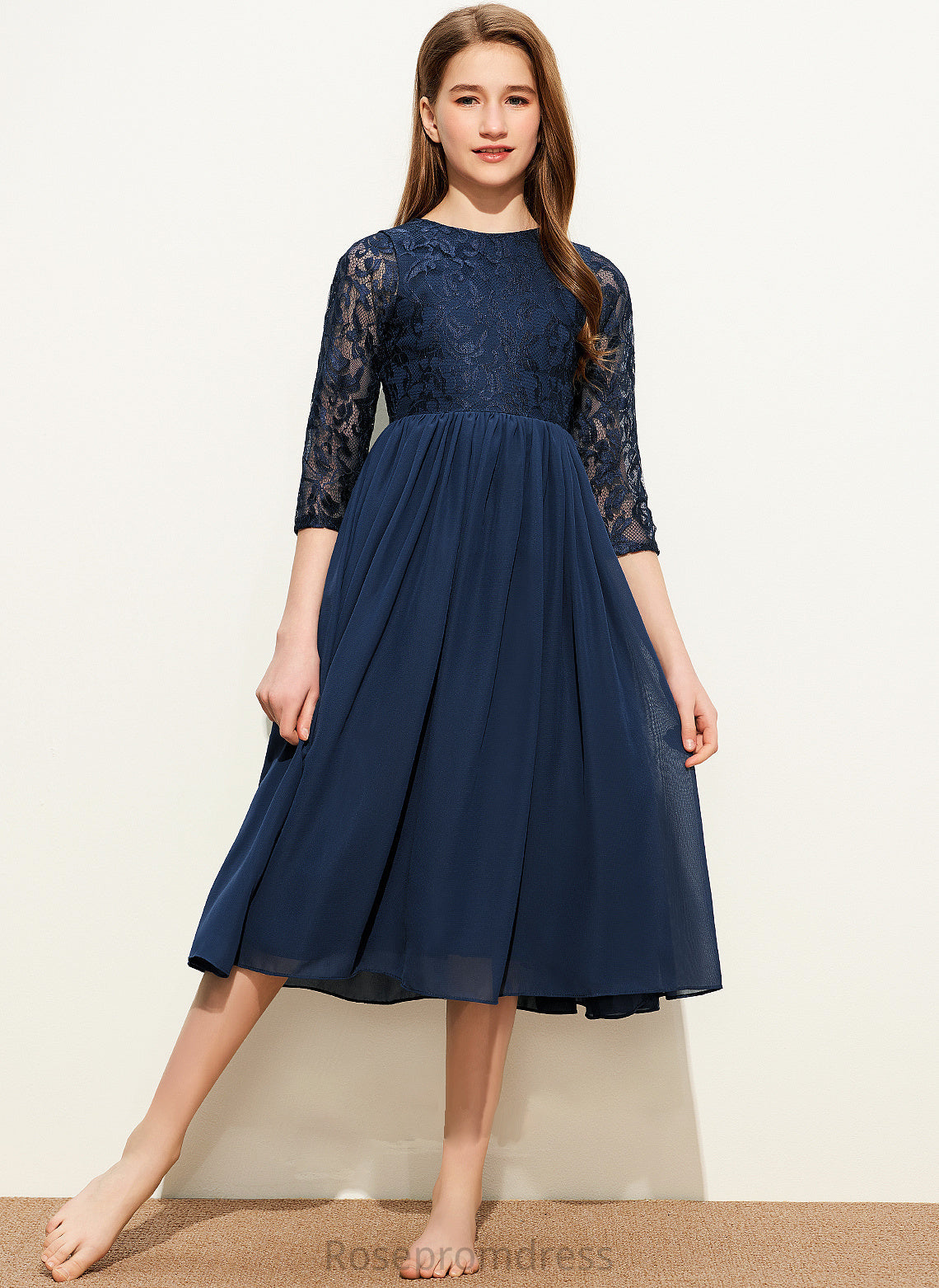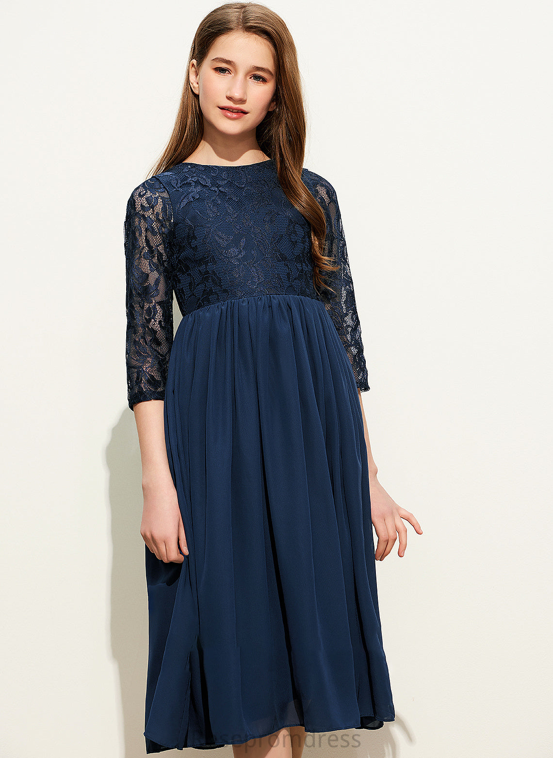 Junior Bridesmaid Dresses Nicky Tea-Length Scoop Neck Lace A-Line Chiffon
