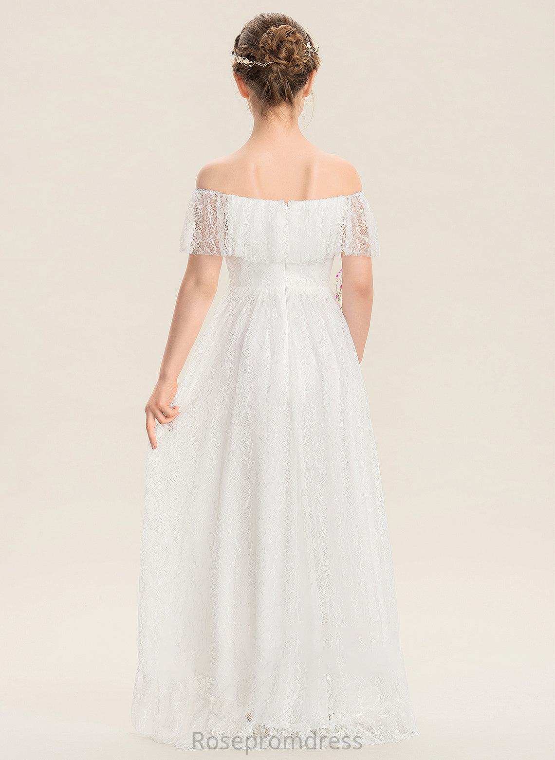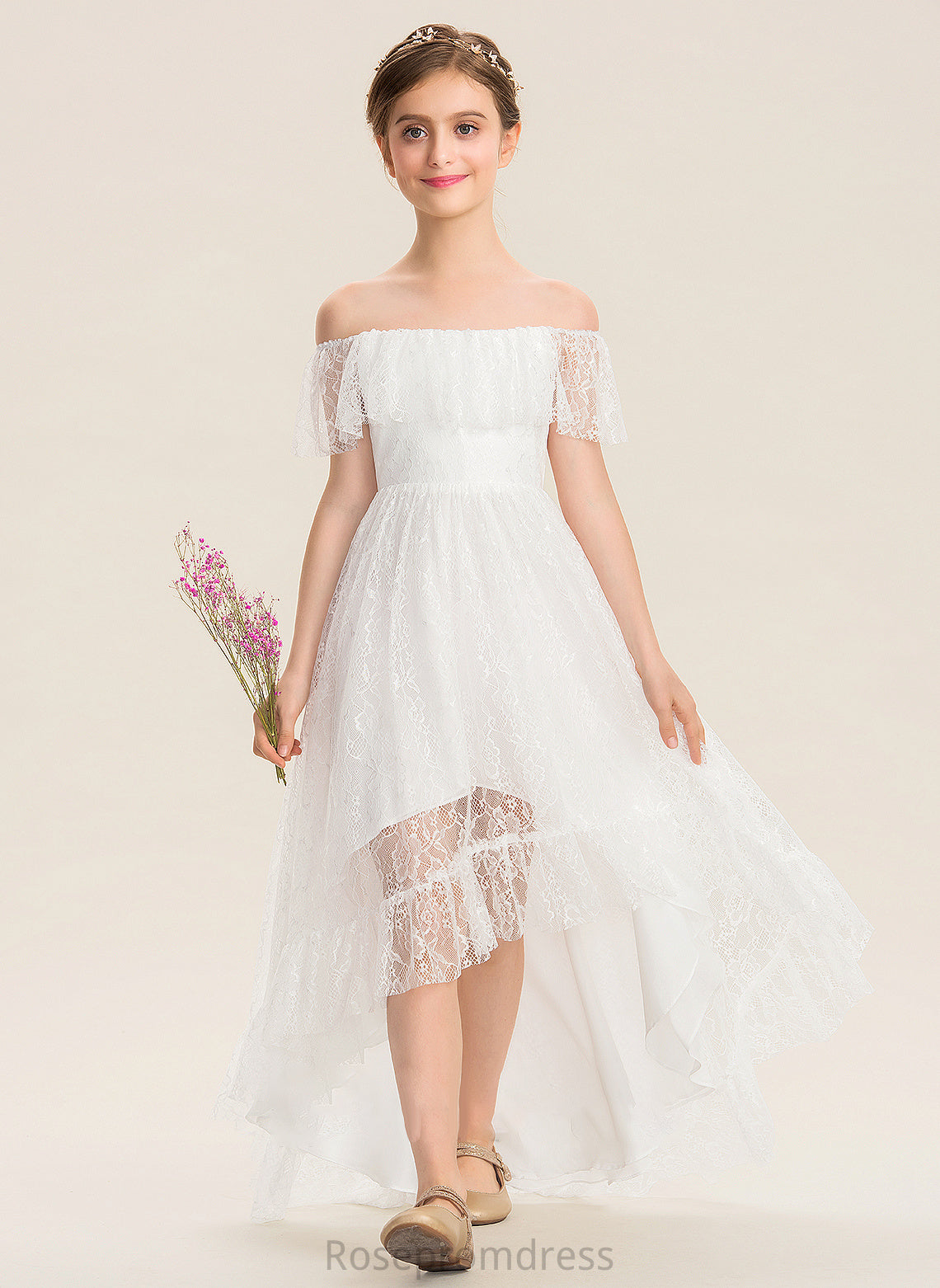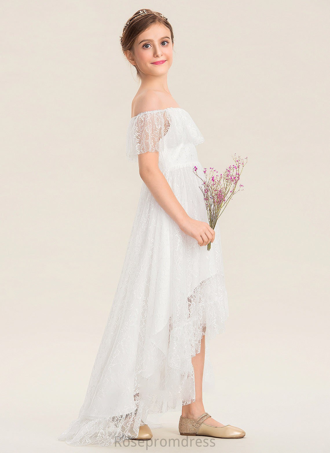 Junior Bridesmaid Dresses Off-the-Shoulder Lace Elizabeth Asymmetrical A-Line